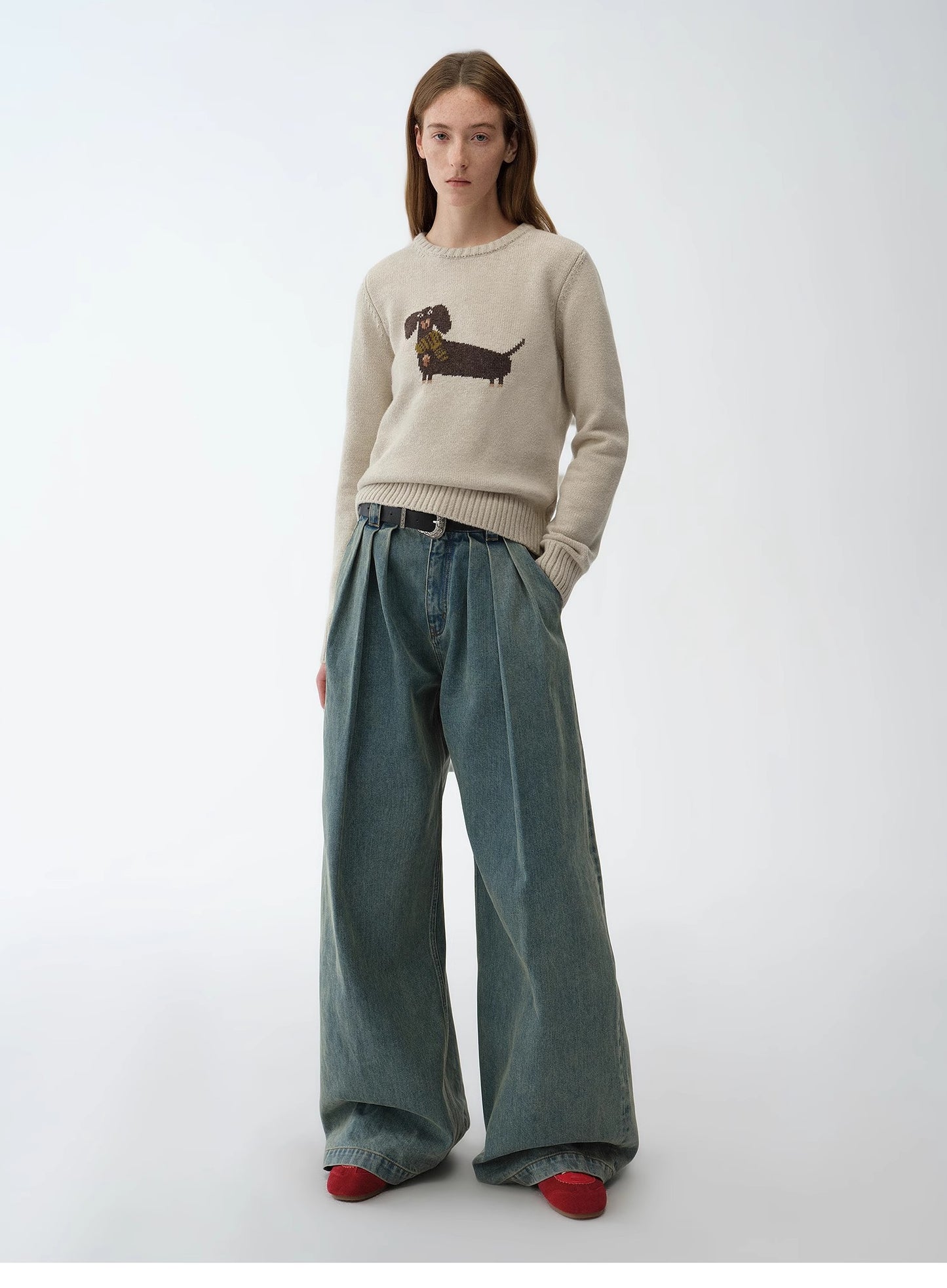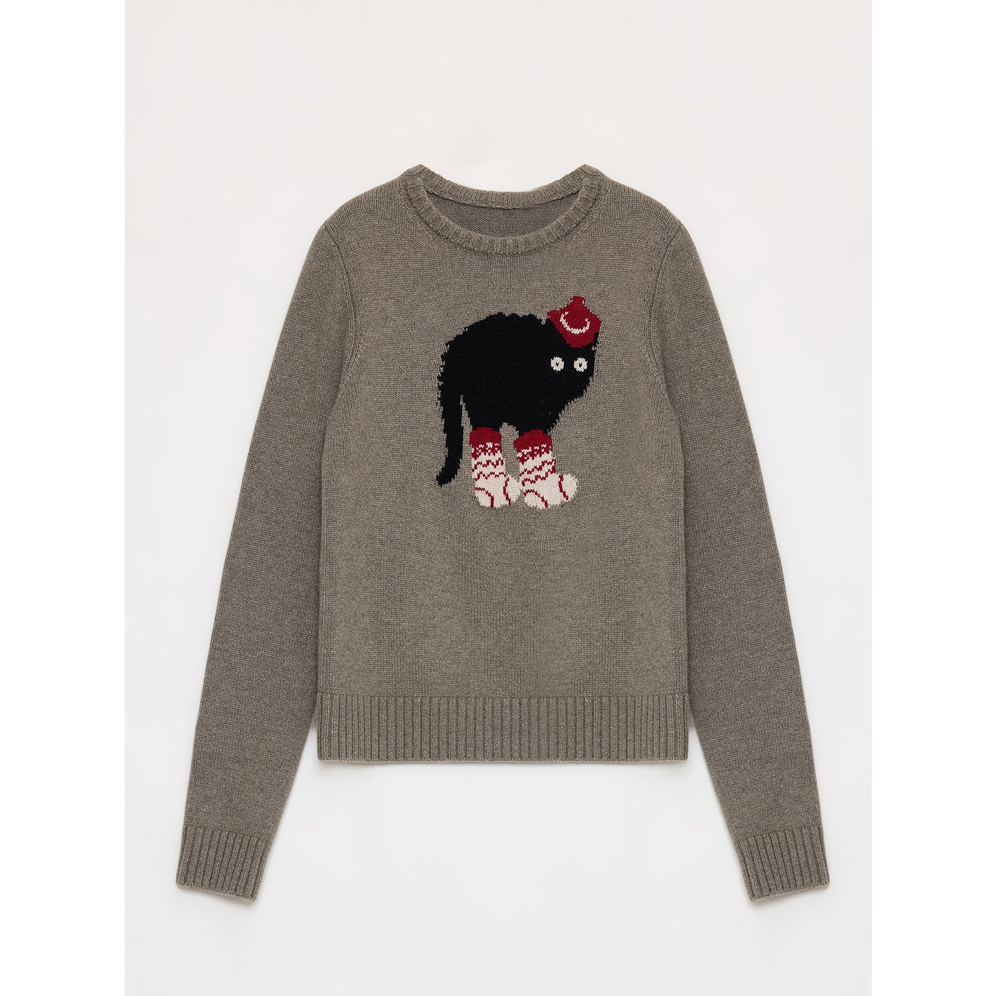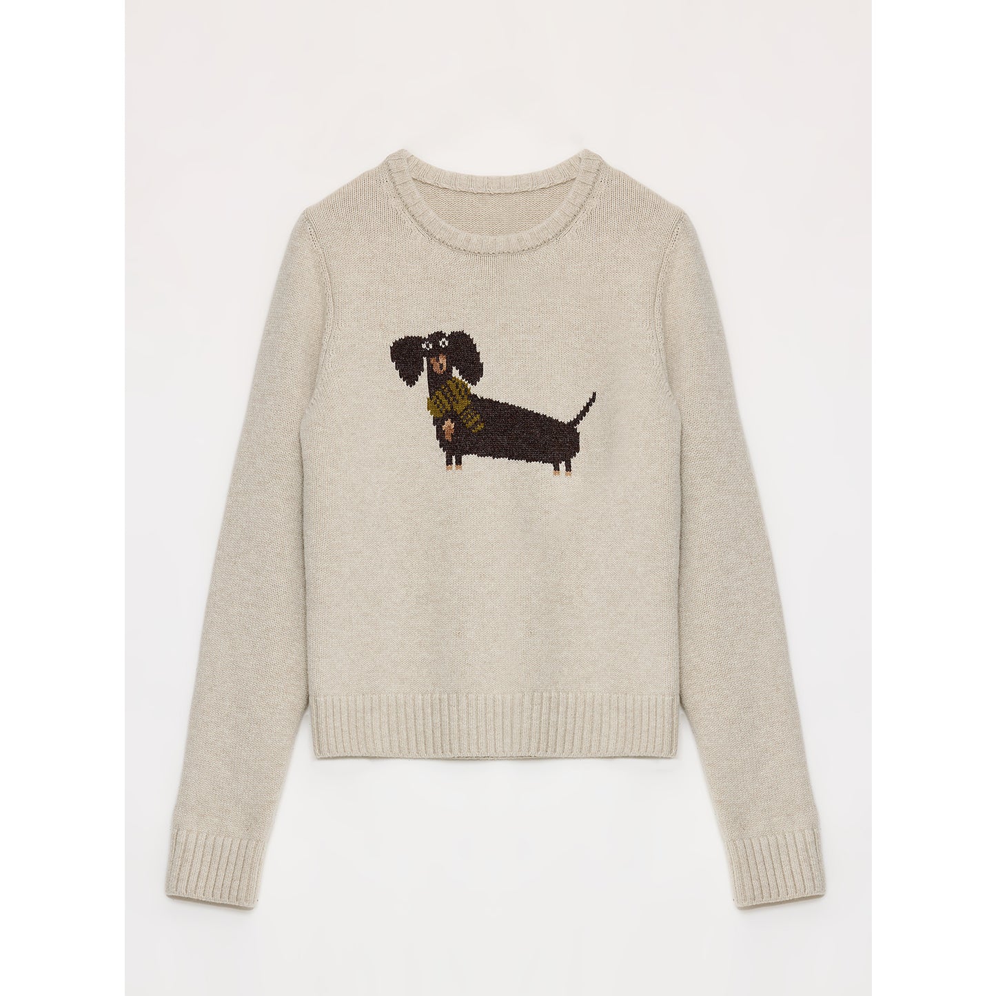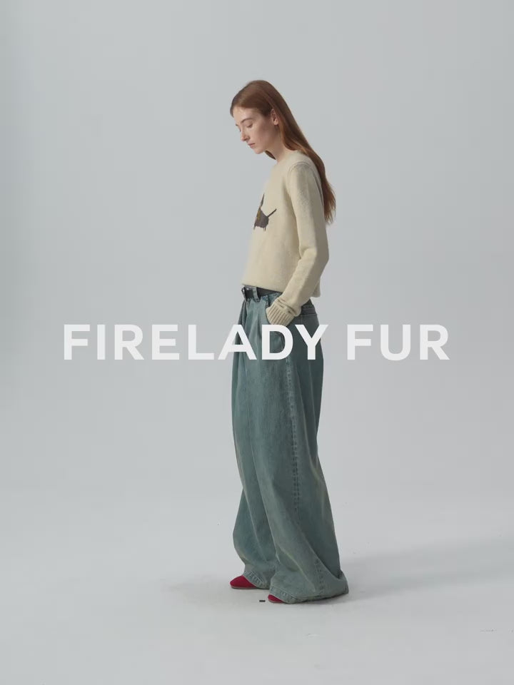 "Brani" Superfine Merino Wool Cotton Blend Animal Jacquard Round Neck Sweater for Women