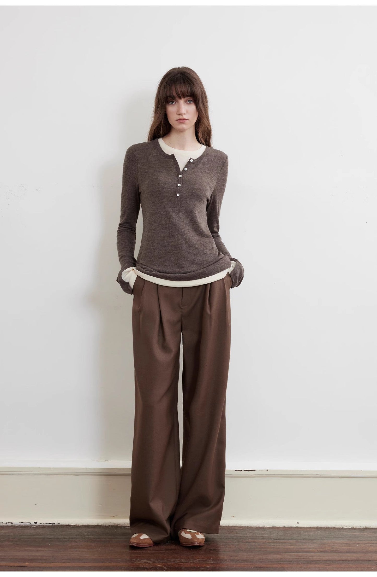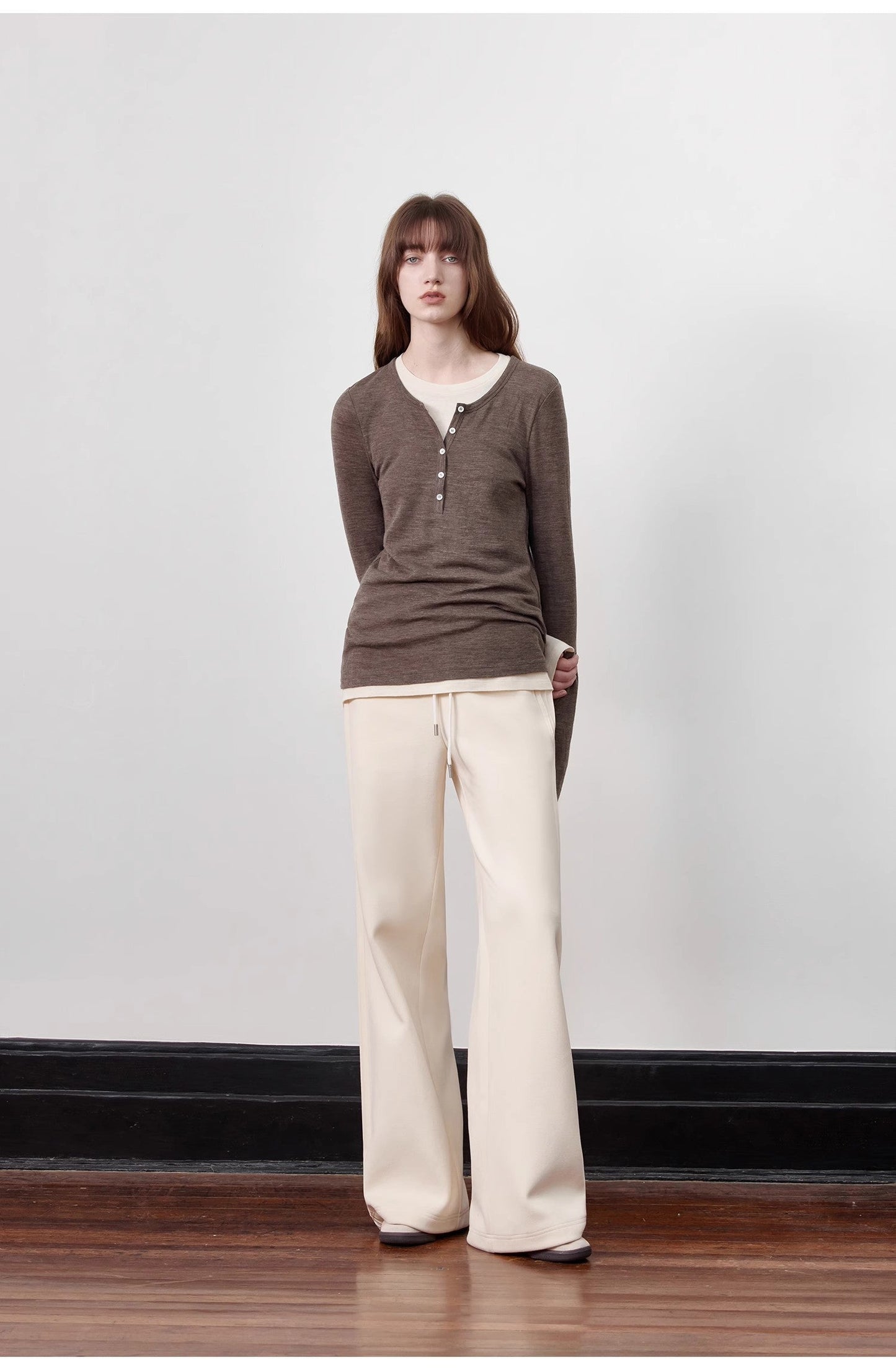"Letter from Munich" elastic skin-friendly all-wool sweater women's long-sleeved slimming fake two-piece crop top