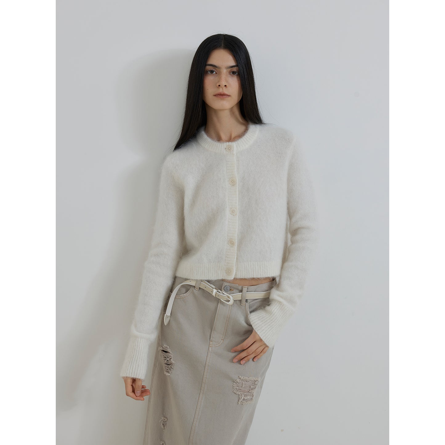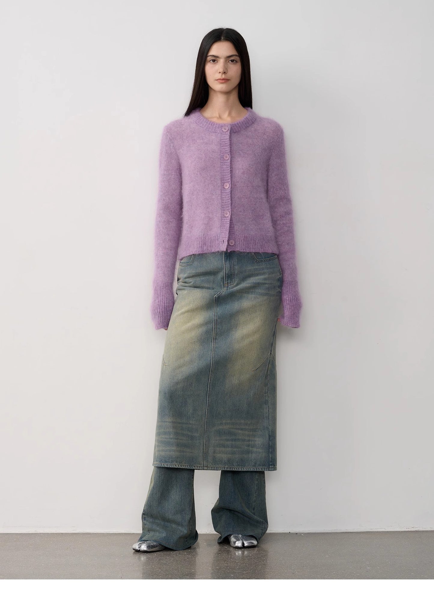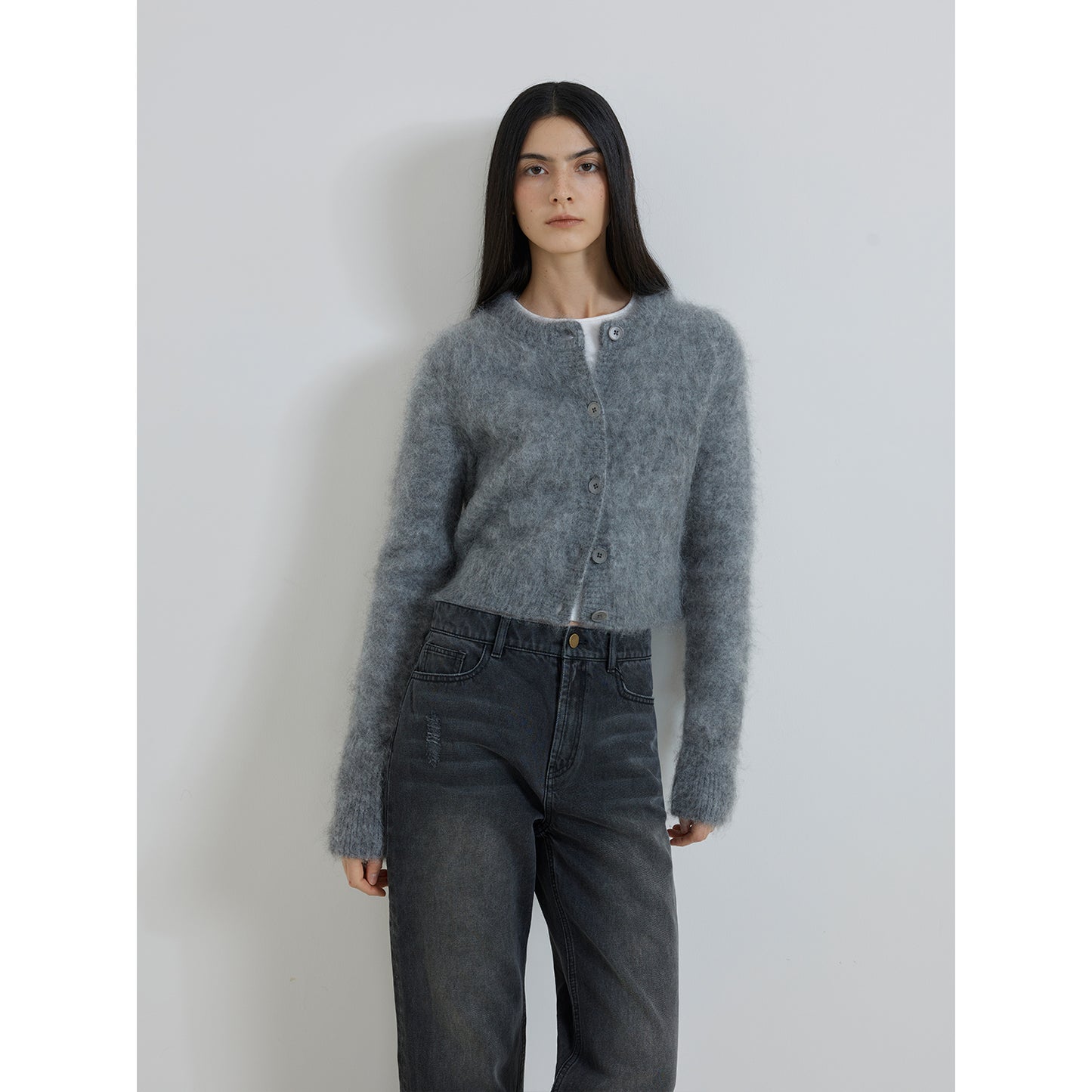 "Relaxation Notes" High-Proportion Mohair Knit Cardigan Women's Loose Short Round Neck Sweater Jacket