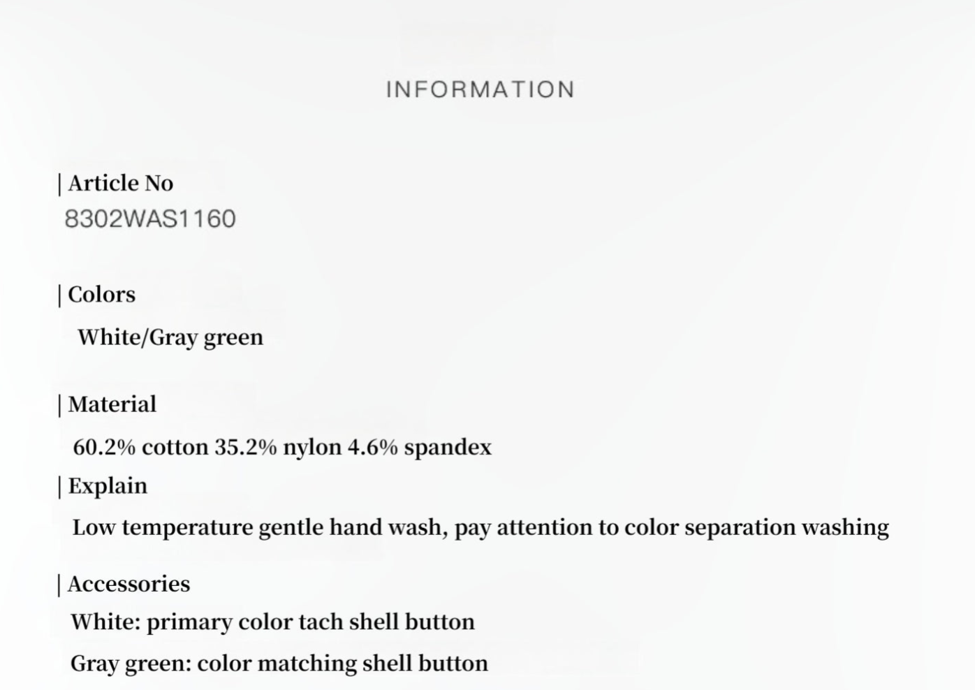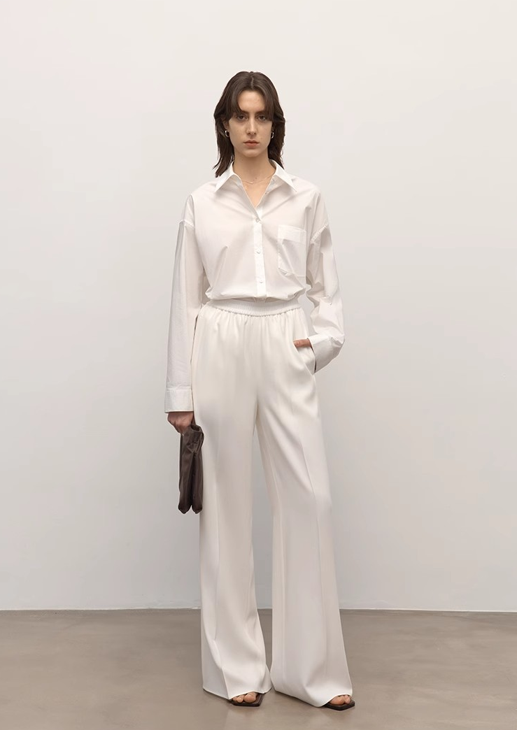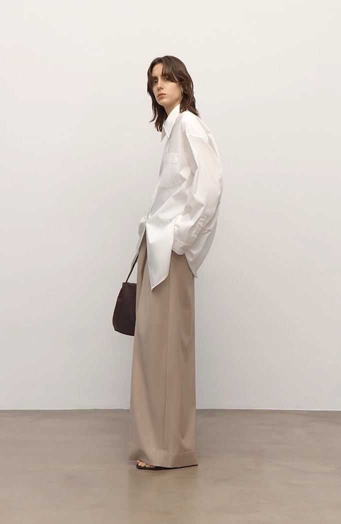 Three-dimensional loose tailoring with large drop shoulder design, the thin shoulders make the clothes look slimmer and the natural drape lines are smoother and more elegant. The upper body is free and unrestrained, giving a comfortable and light atmosphere.
