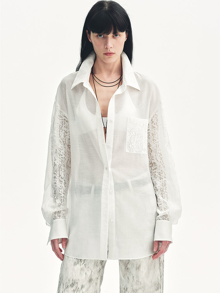 The exquisite jacquard double sleeves echo the slightly sheer main body. The cuffs can be freely folded and stacked, fitting in with the relaxed dressing atmosphere of spring and summer. With a dropped shoulder and straight body design, the garment has a natural drape that optimizes the silhouette and sets off a slender figure.