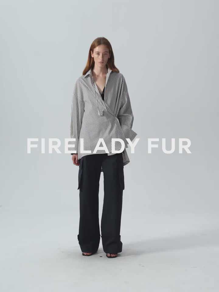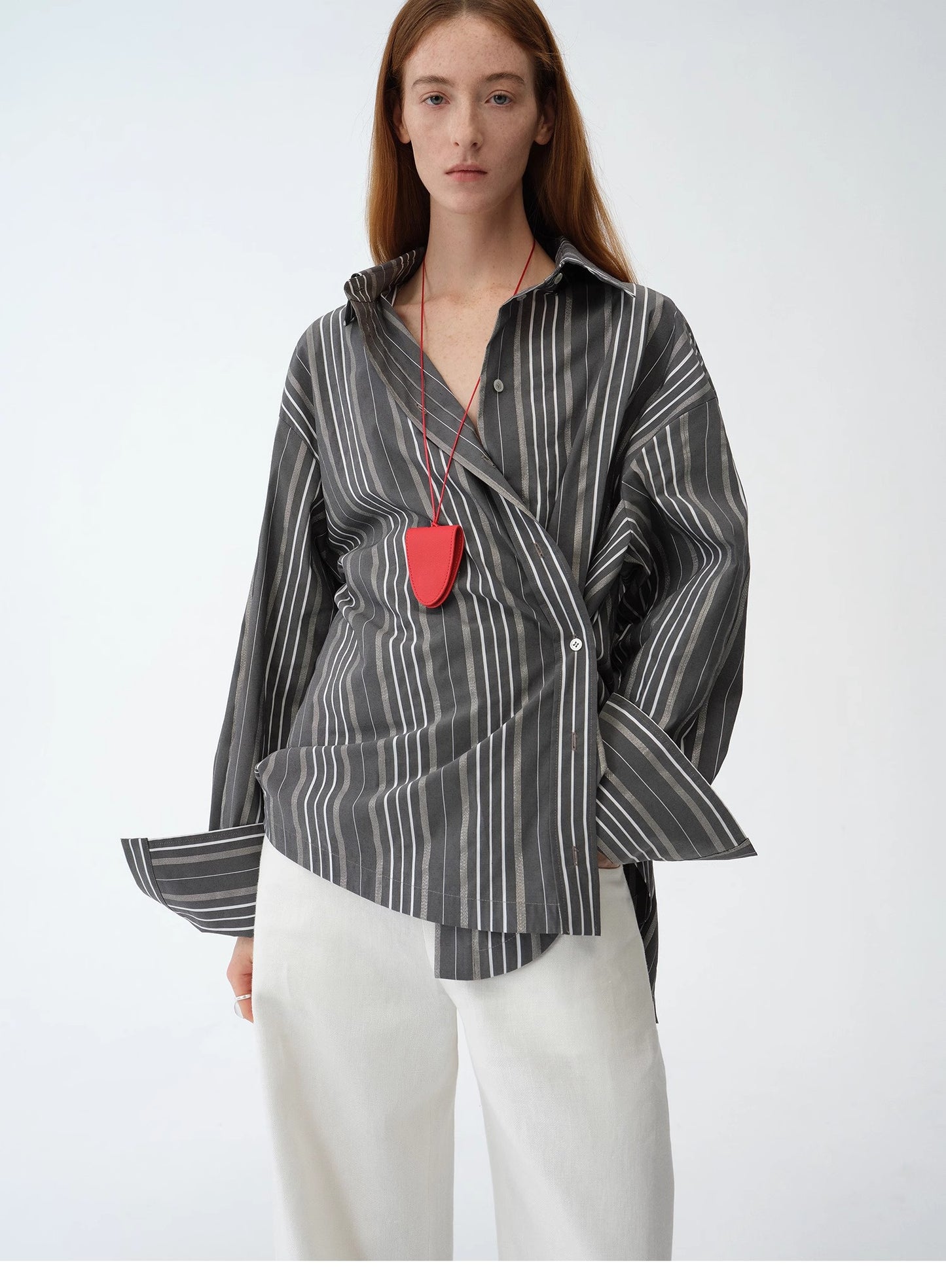 "Striped Fantasy" Casual Asymmetric Slanted Front Two-Wear Striped Long Sleeve Shirt