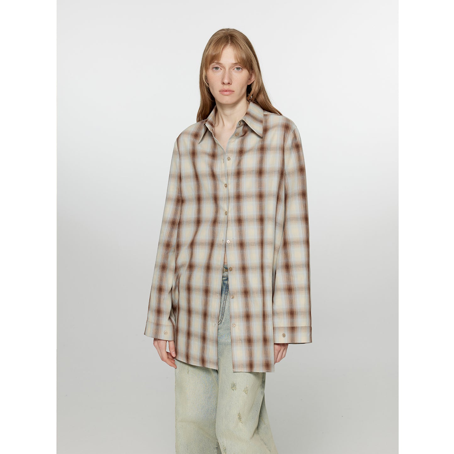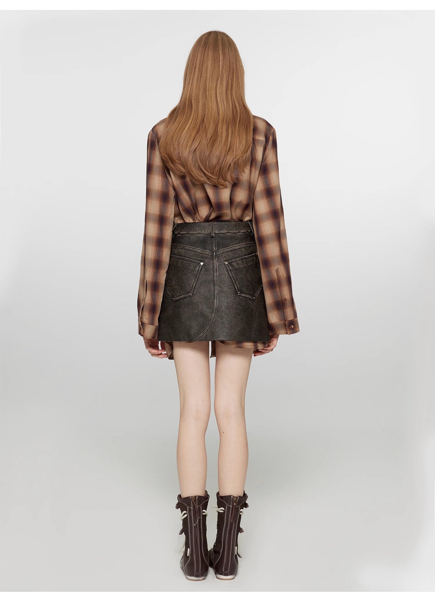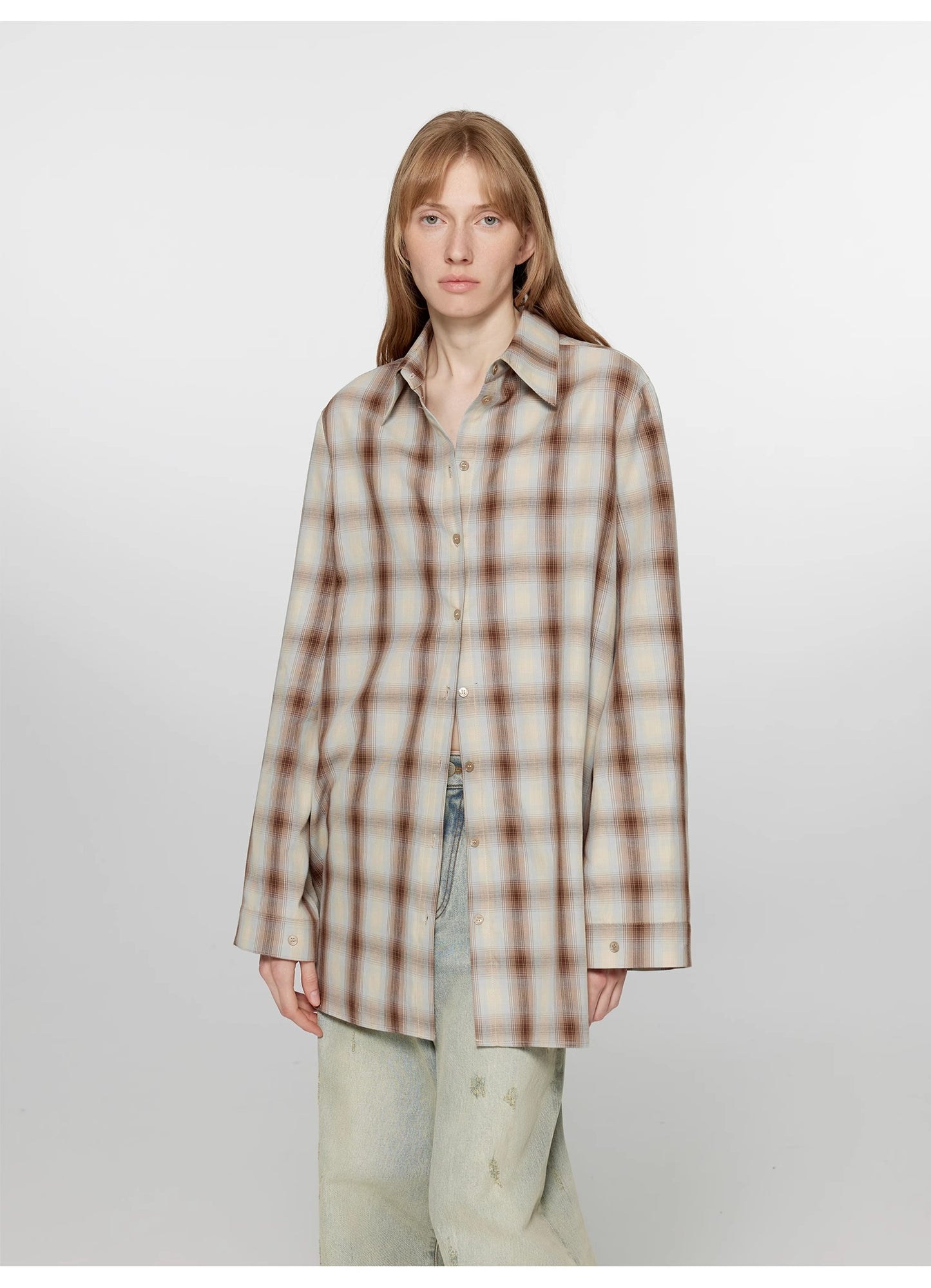 "Tea Grid" high-quality high-count cotton loose retro plaid shirt