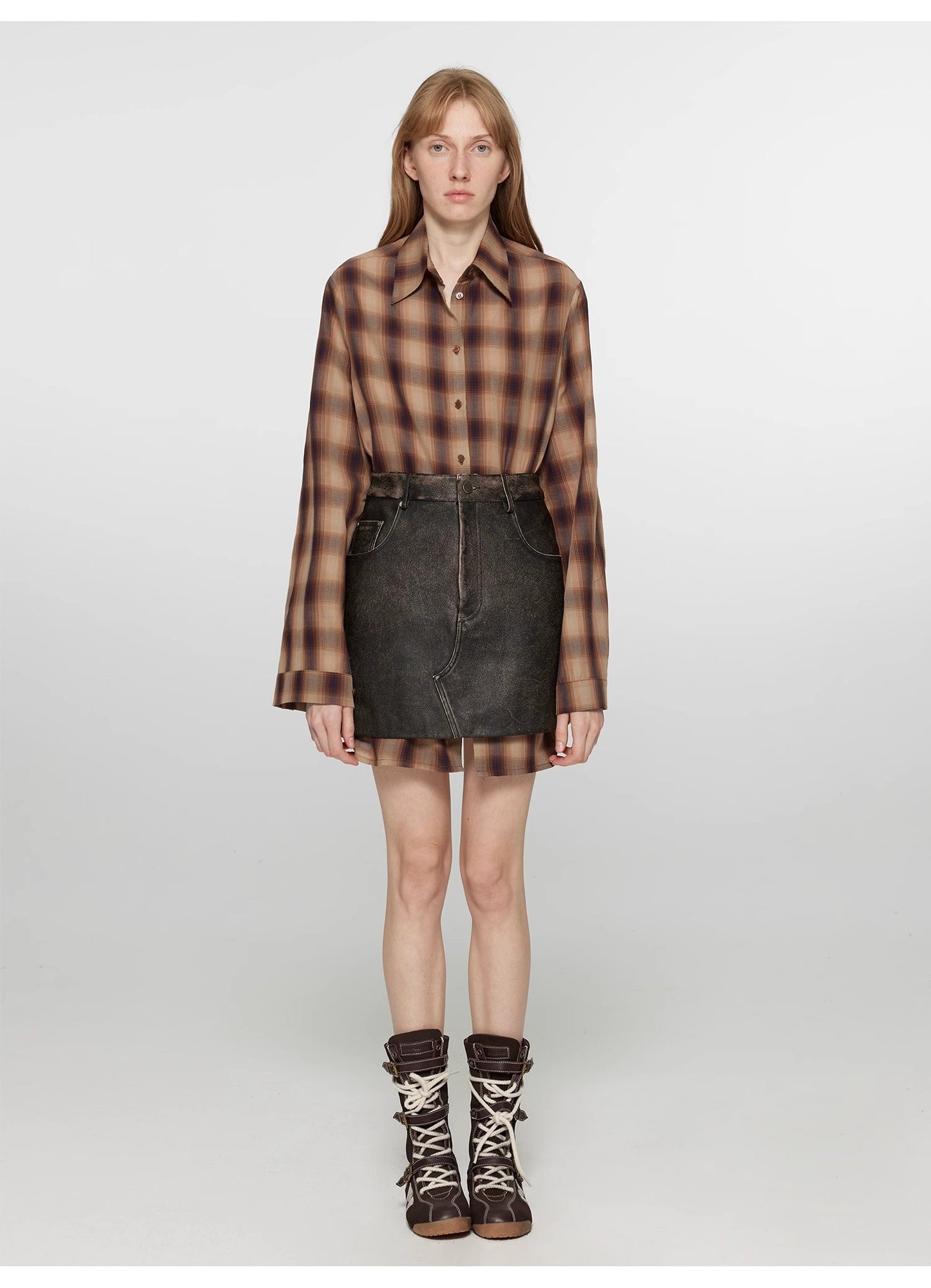 Continuing the luxury brand shirt collar design, the classic pointed collar features a clean, structured cut that flatters the face shape while accentuating the neckline. This enhances a refined and sharp feminine aura, adding an elegant and polished touch.