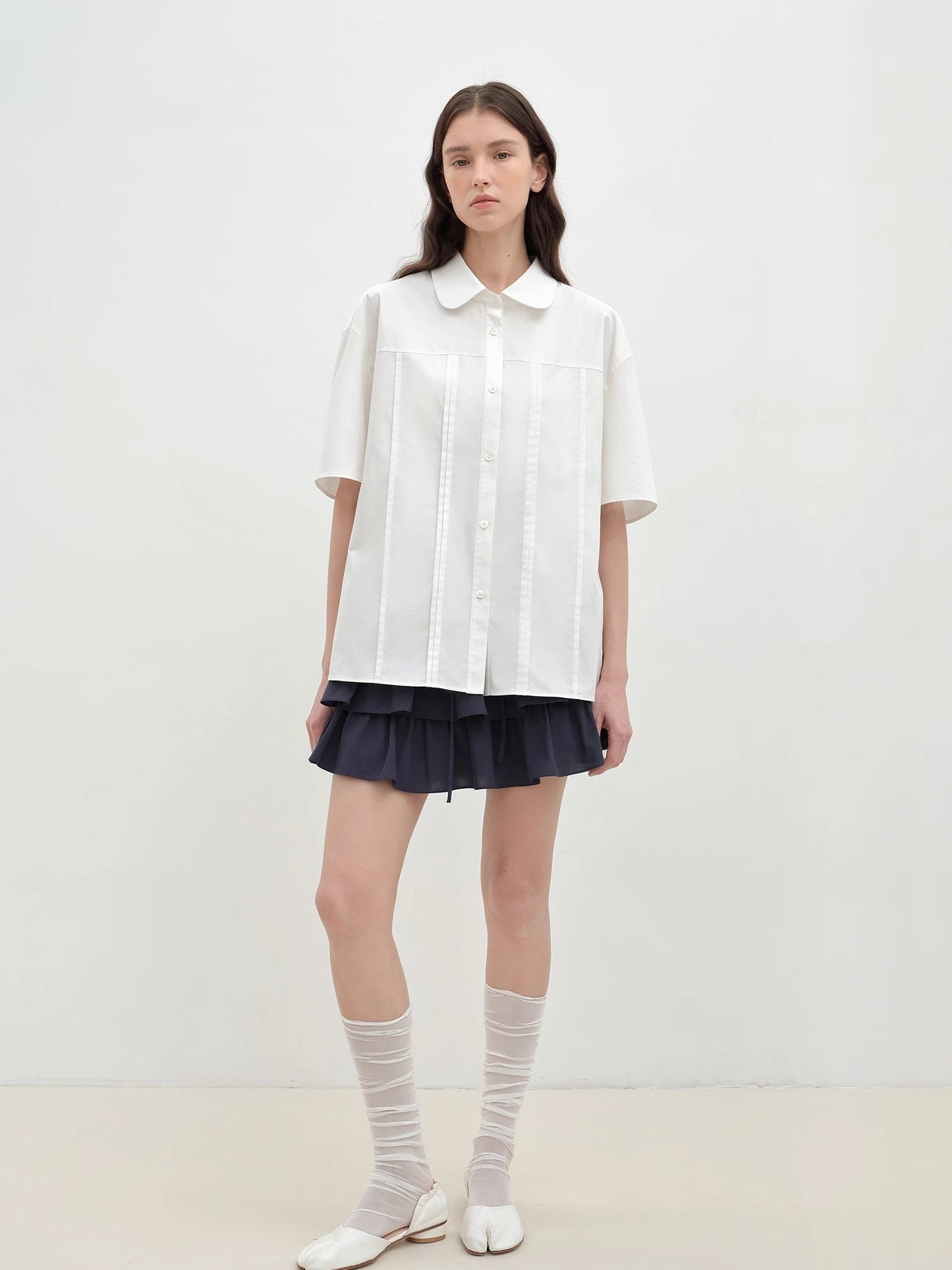High-quality cotton fiber raw material, moisture-absorbing and breathable, high-density woven fabric surface is flat and neat, skin-friendly and comfortable without losing the sense of bone, fine textile technology makes the fabric smooth and stylish. The post-finishing process creates a unique linen style, the fabric texture is richer and more layered, and the garment has a unique retro and fashionable style.