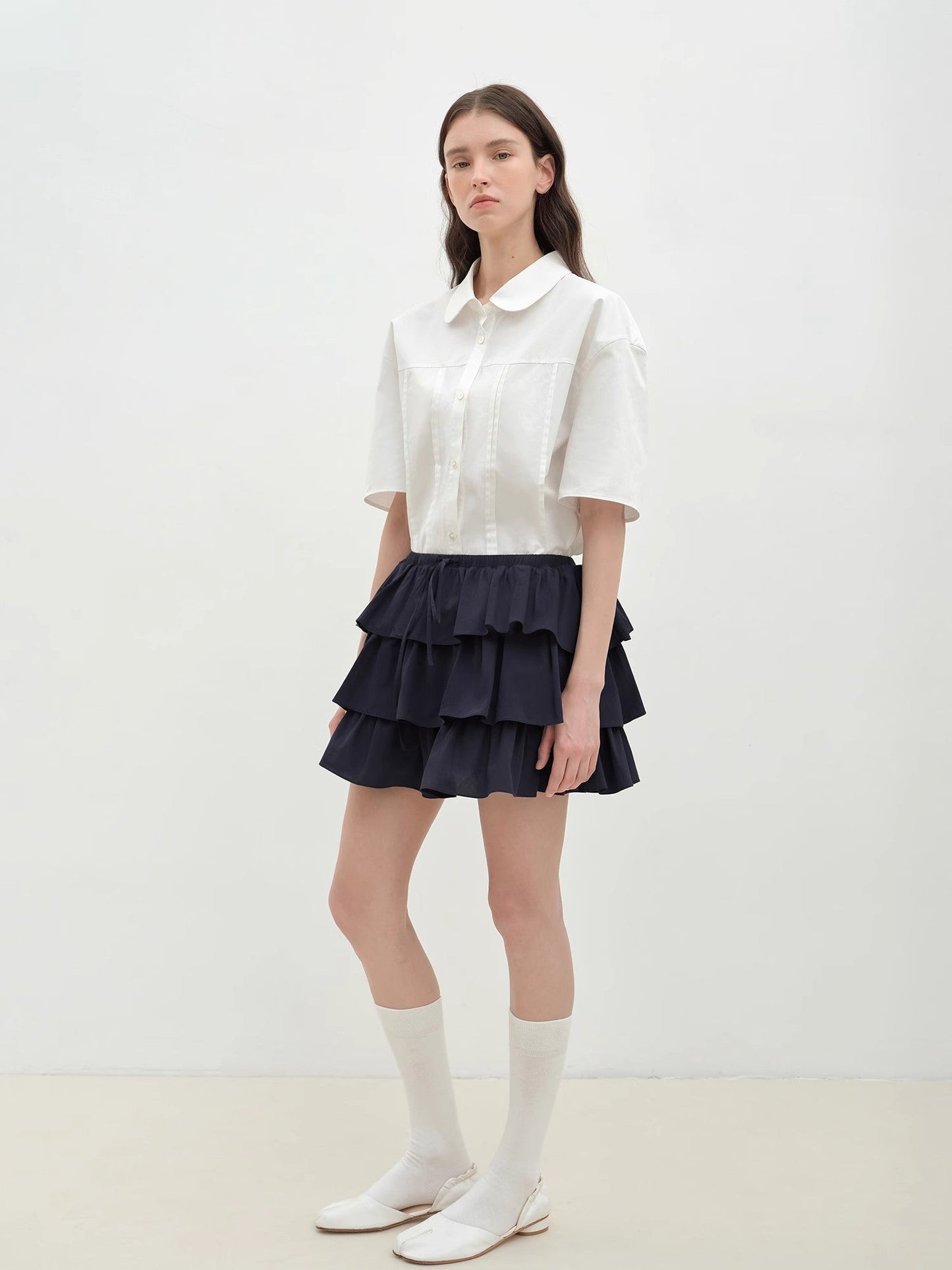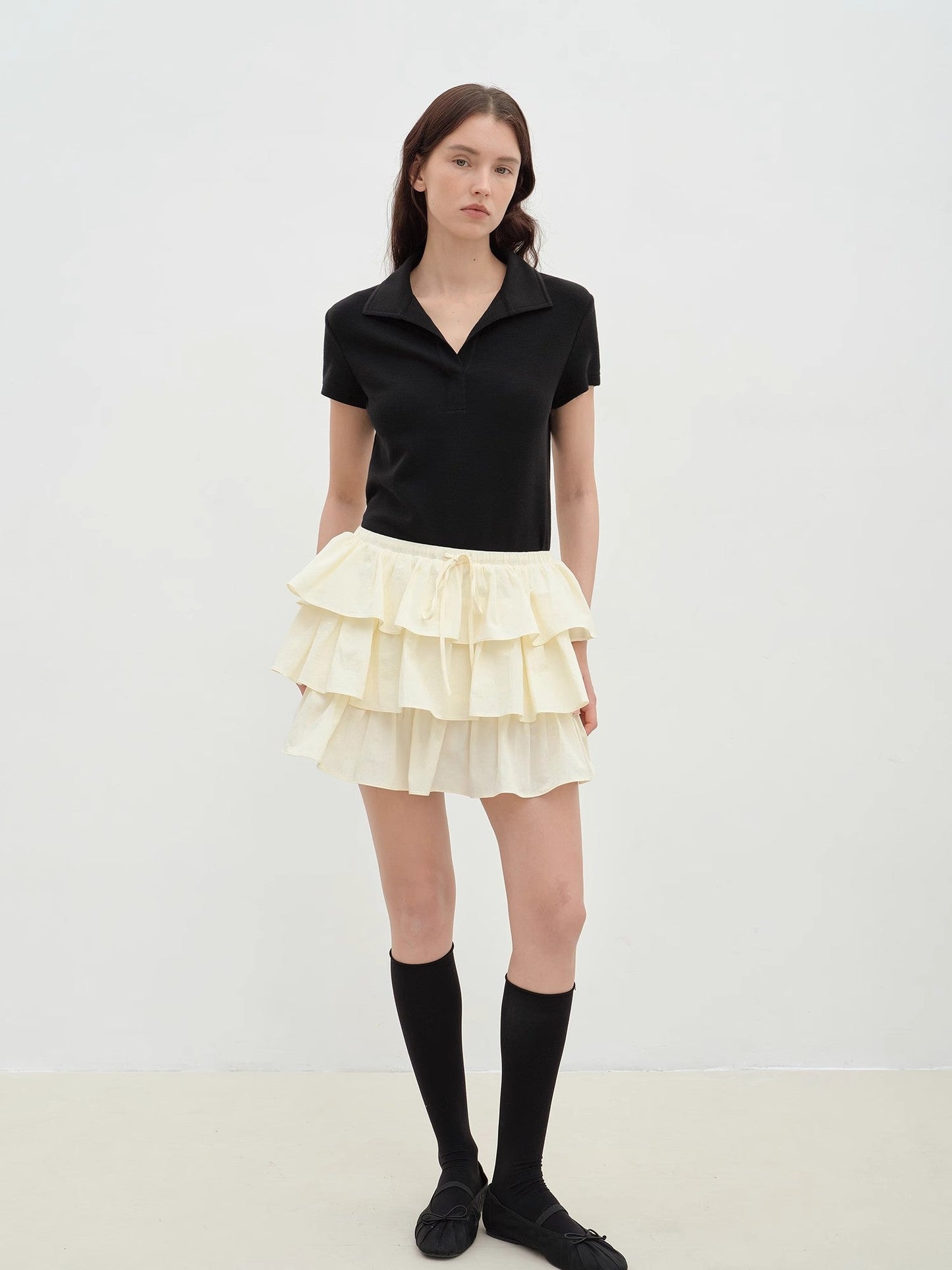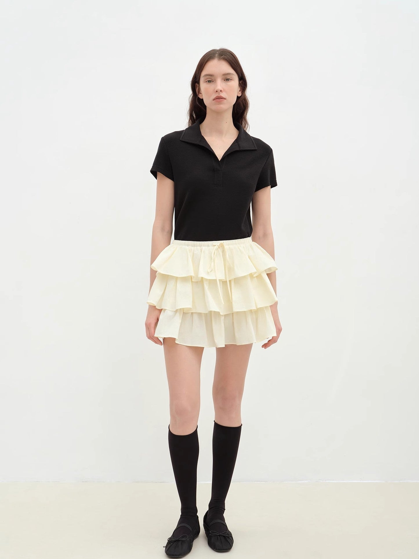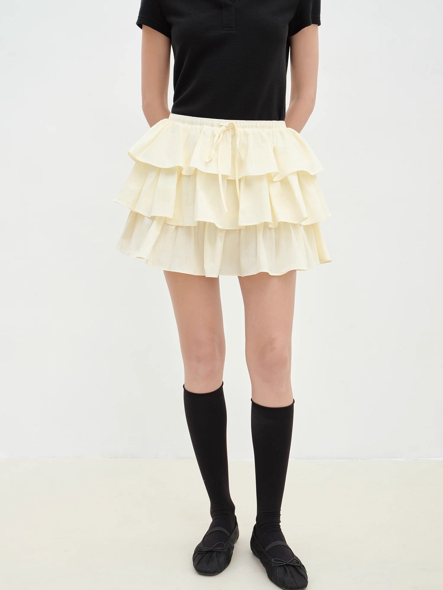 Cotton and linen visual style fabric, high-density weaving, smooth and stylish, skin-friendly, breathable and comfortable, uniform pleats create a playful lace feeling, three layers of lace stacked to create a cake-like skirt shape, smart and age-reducing narrow elastic waist casual and comfortable, color-matching drawstrings add agility, age-reducing and elegant without losing the sense of design.