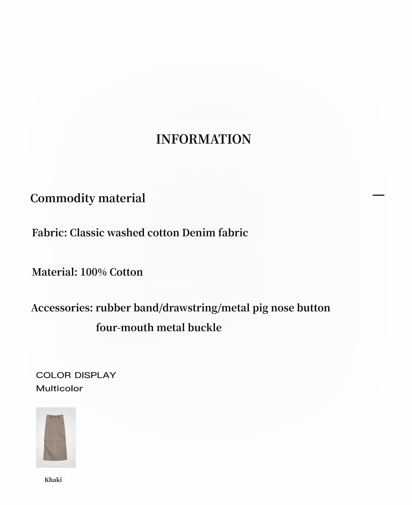 "Dune Fantasy" Wasteland Style Washed Drawstring Elastic Low Rise Straight Workwear Denim Skirt