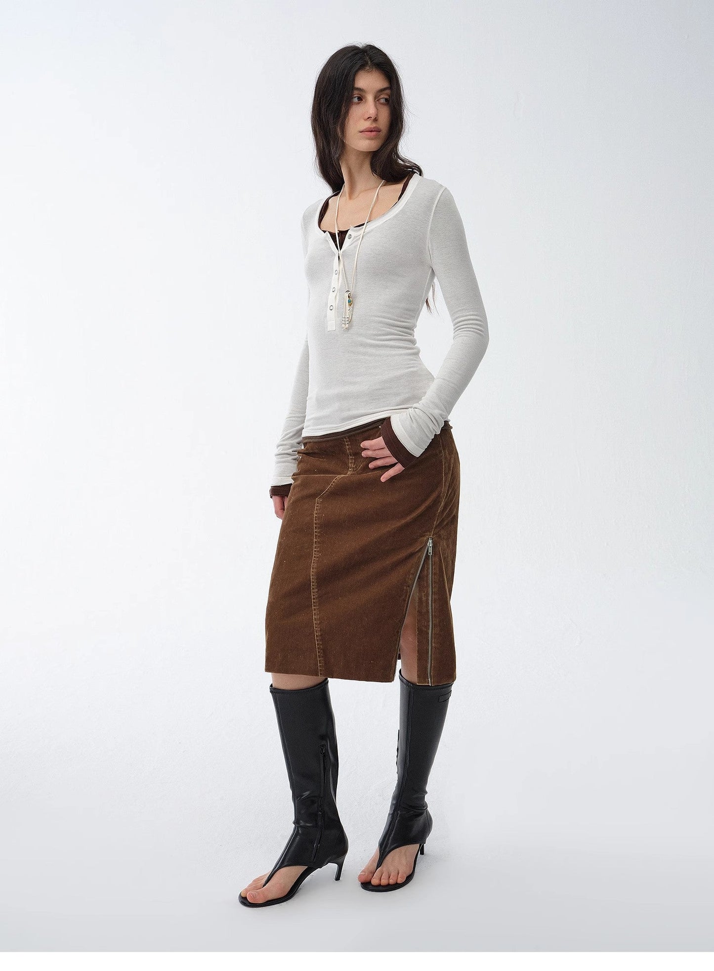 Three-dimensional tailoring better fits the curves of the human body, accommodates hidden muscles, eliminates hips and makes the body look slimmer. The slit zipper design on one side of the hem can be opened to transform into an A-line skirt, which can make your body taller and facilitate leg lifting.