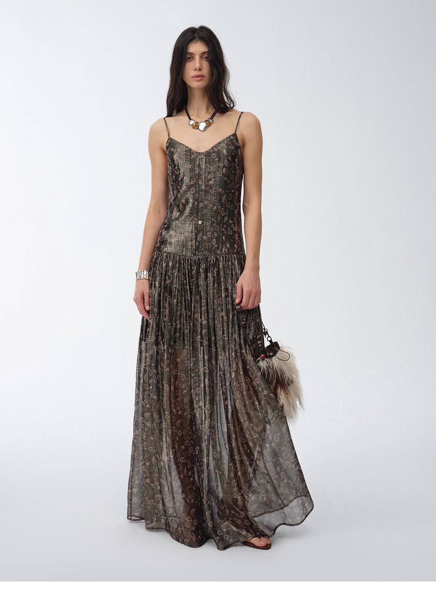 "Floating Lights" Retro Paisley Print Silk Holiday Sling Dress