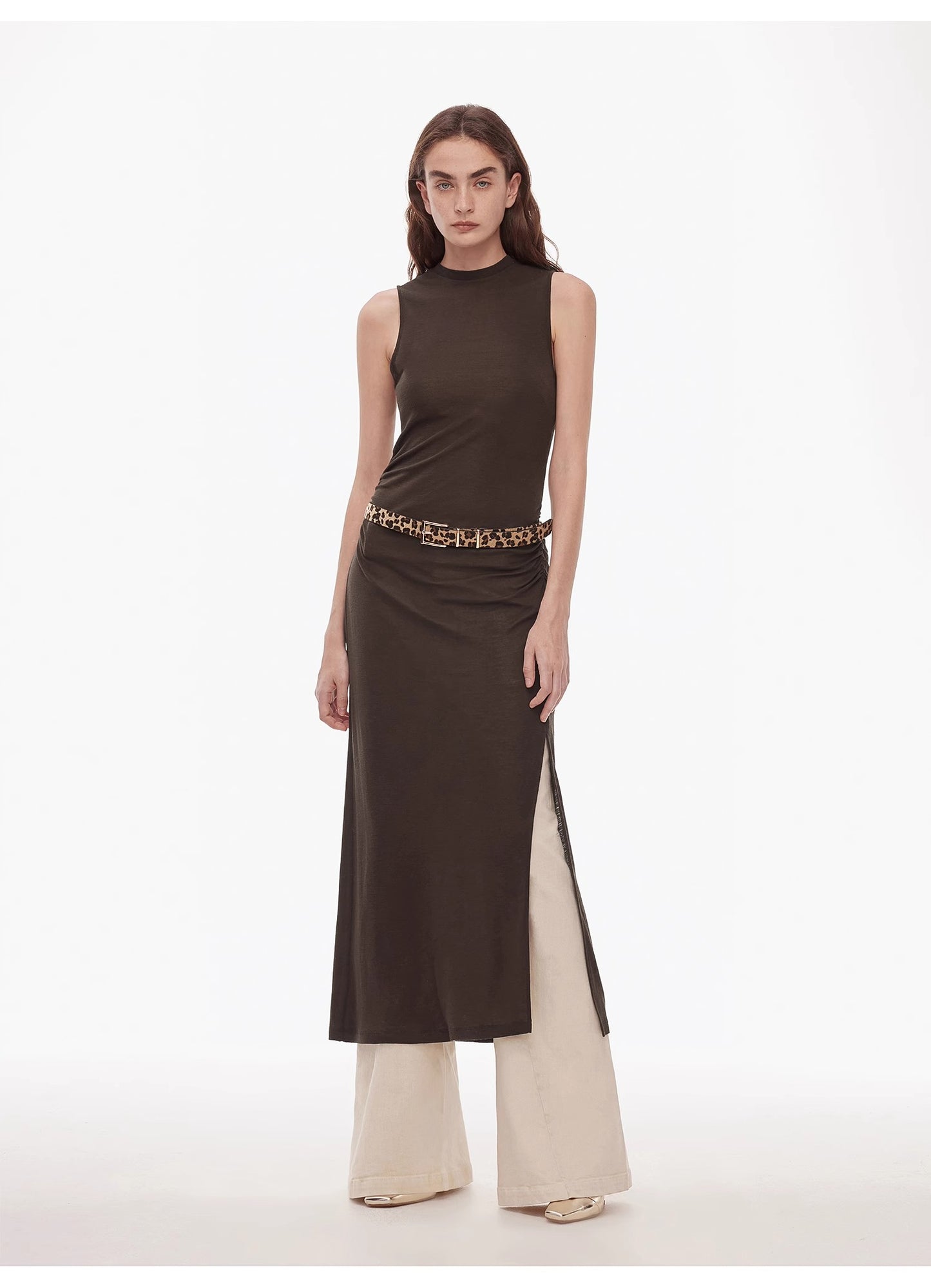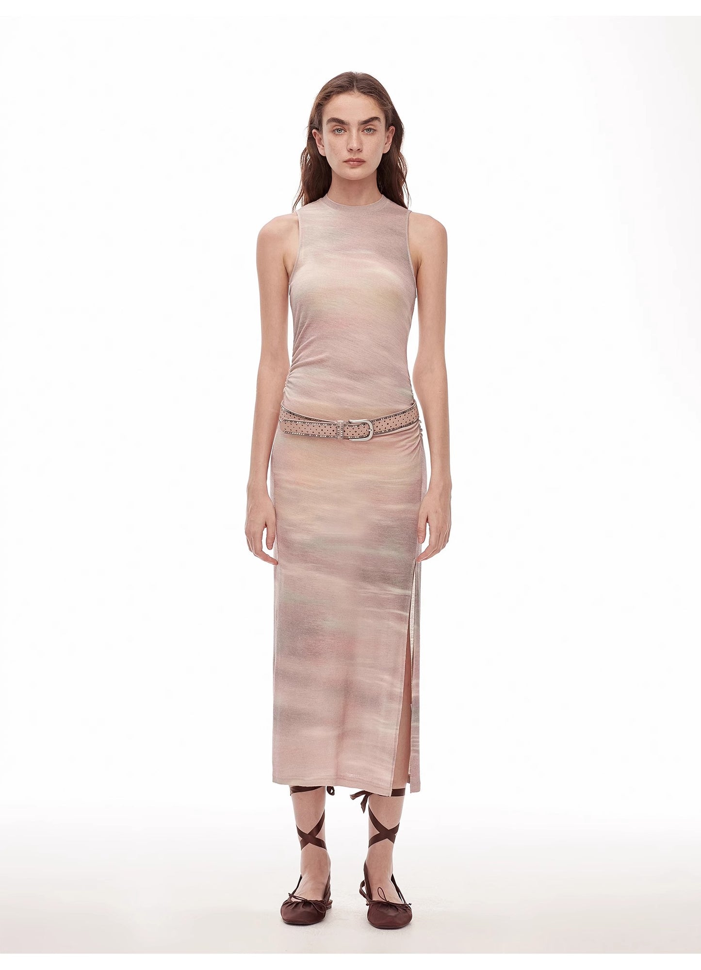 "Half Summer Ball" Fine Wool Blend Sleeveless Slit Long Knit Dress