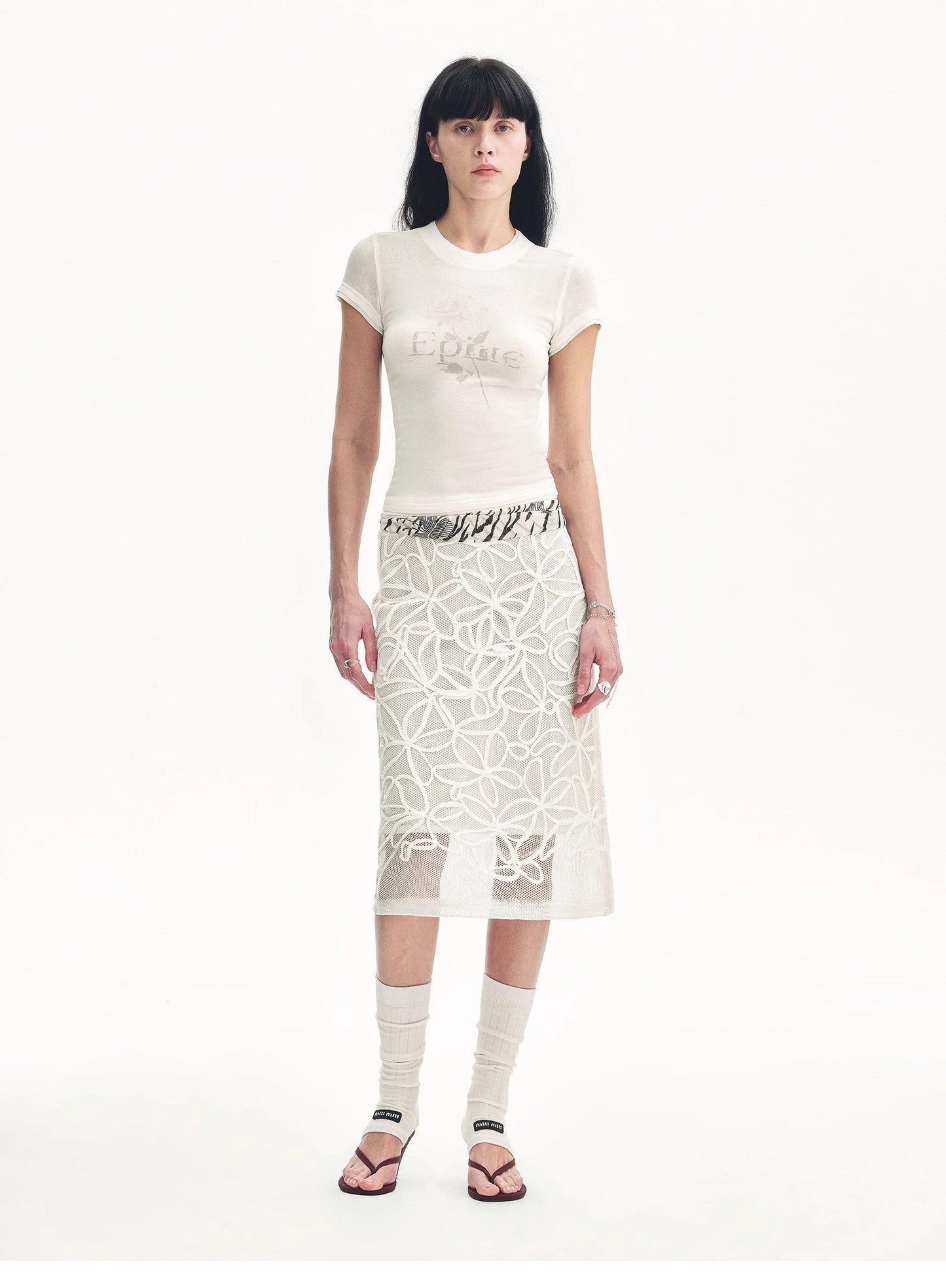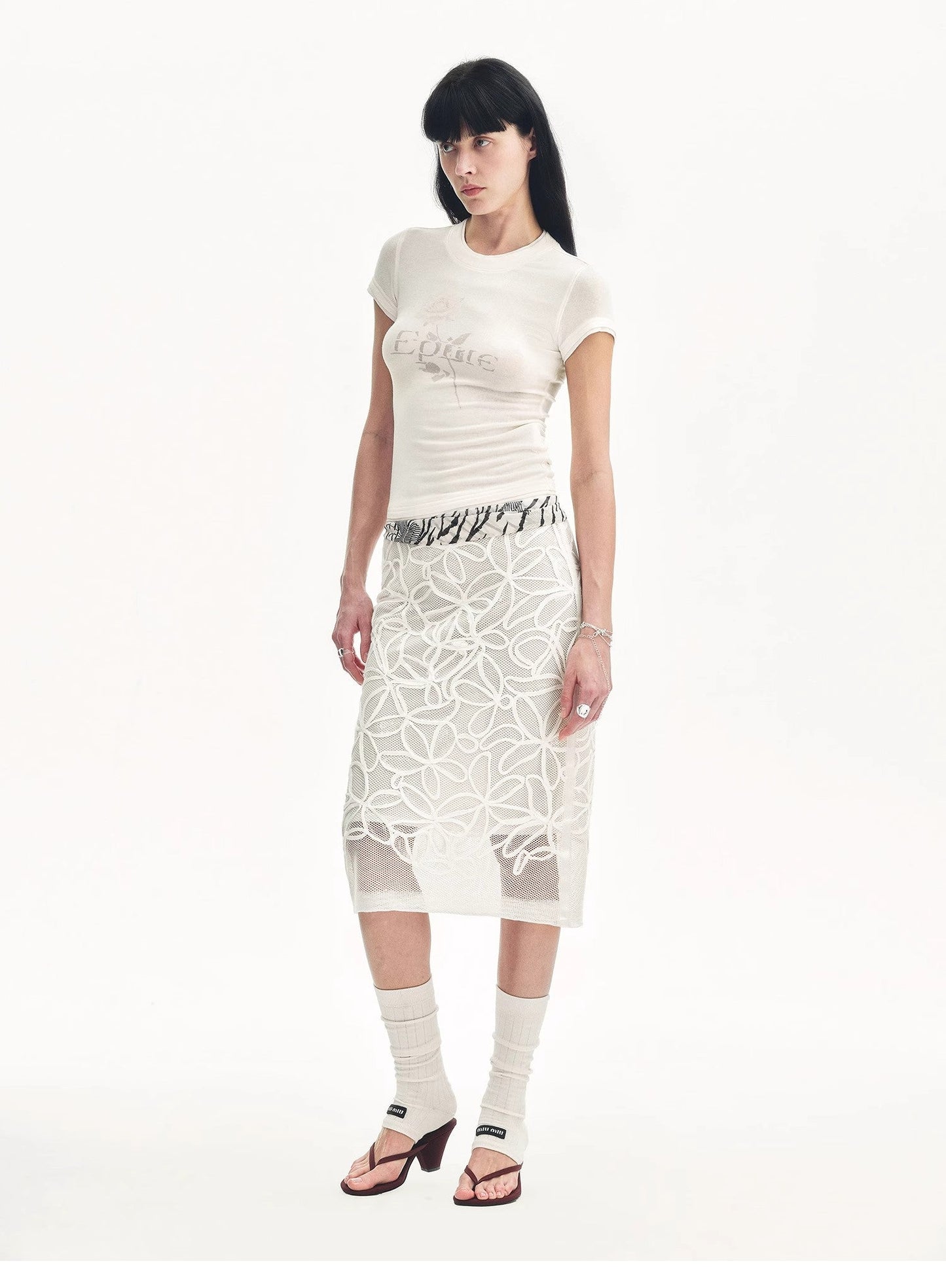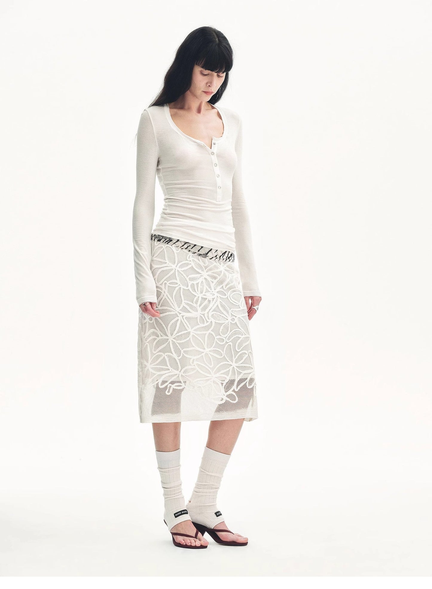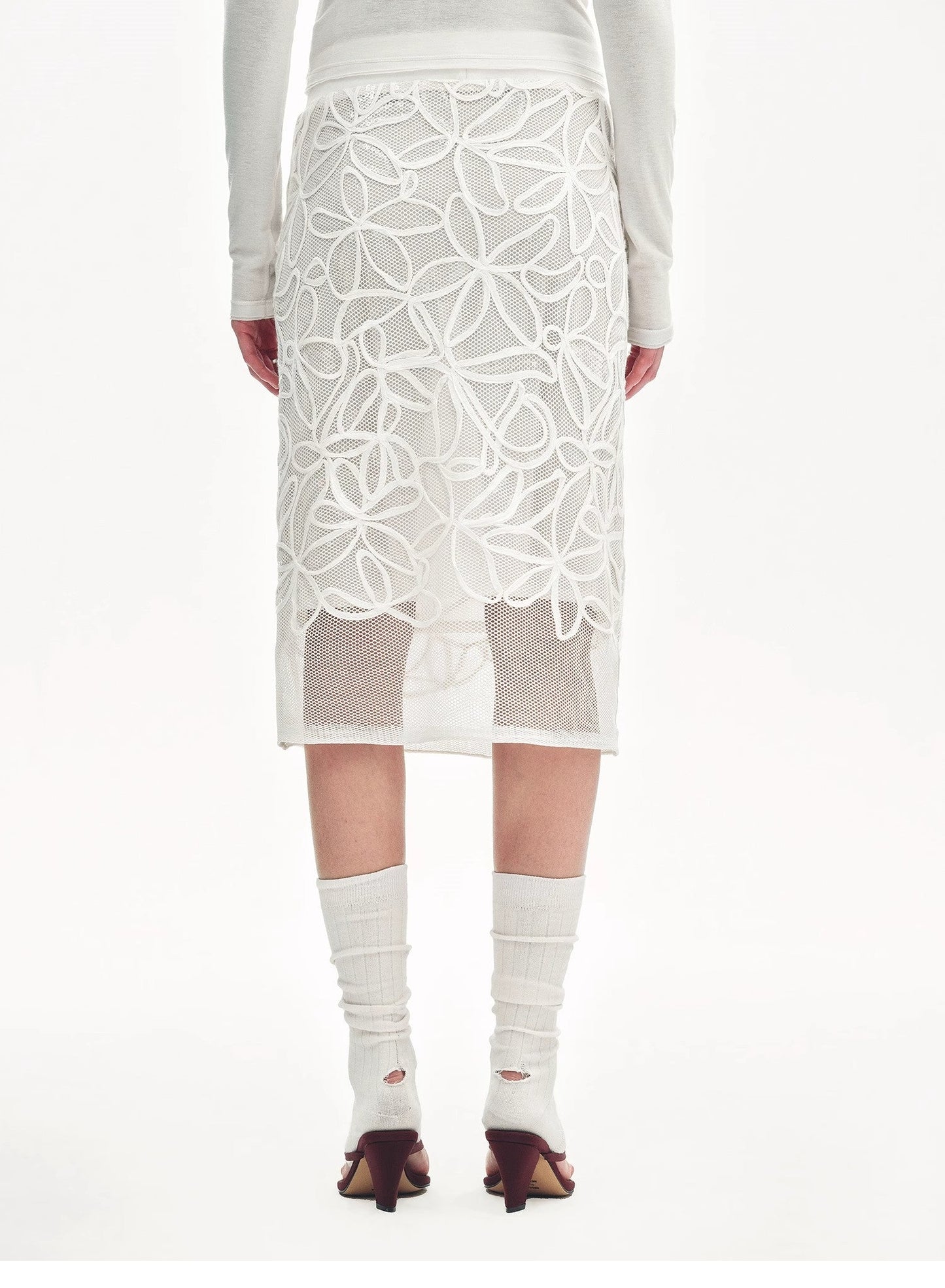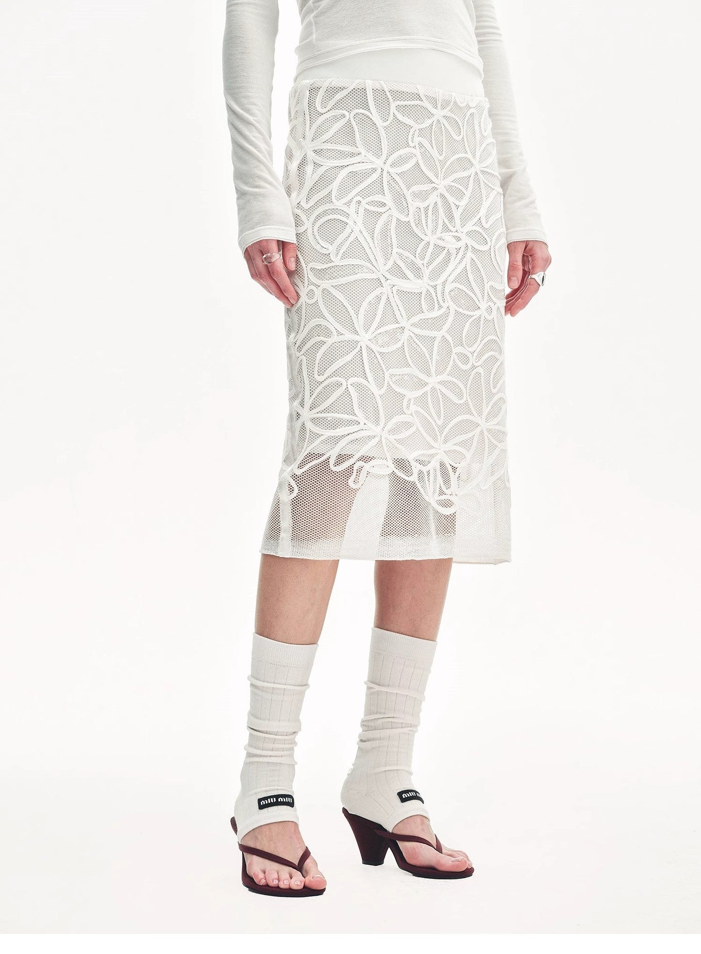 The customized cords have a soft and delicate touch. Hand-embroidered on the fabric, they create three-dimensional patterns, which are exquisite and beautiful. Paired with meticulous sequin stitching, the skirt shimmers with a bright and delicate luster. The fabric is soft, fine, breathable, and has a certain thickness. It's skin-friendly and not prickly, offering excellent practicality and aesthetic appeal.