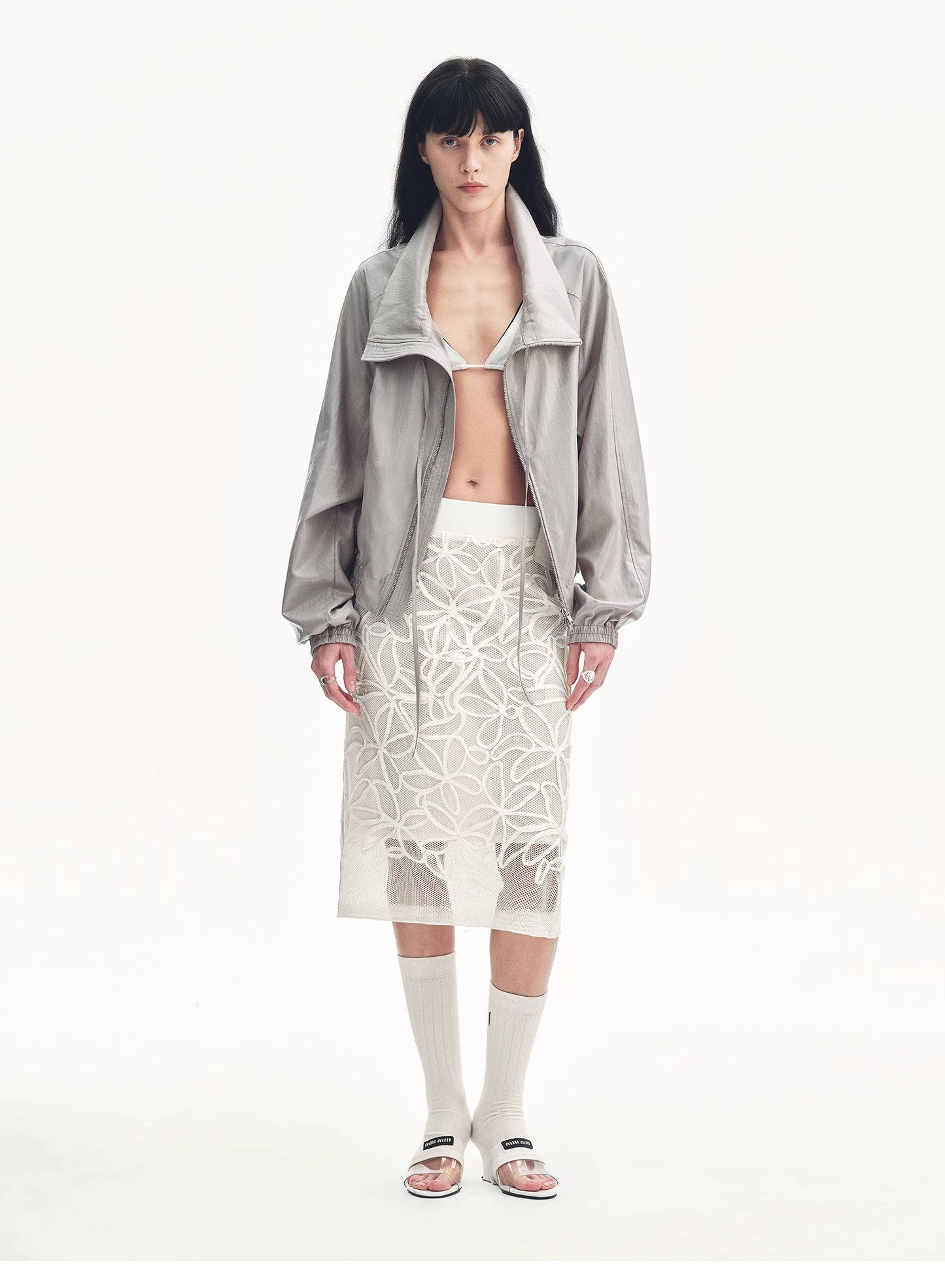 With a classic straight silhouette, the skirt length reaches the calves, just revealing the slender ankles, which is understated yet stylish. The customized ribbed design at the waist is spliced with the acetate strips on the sides, balancing the style of the skirt while ensuring comfort and practicality. It stands out whether for daily commuting or vacation trips.