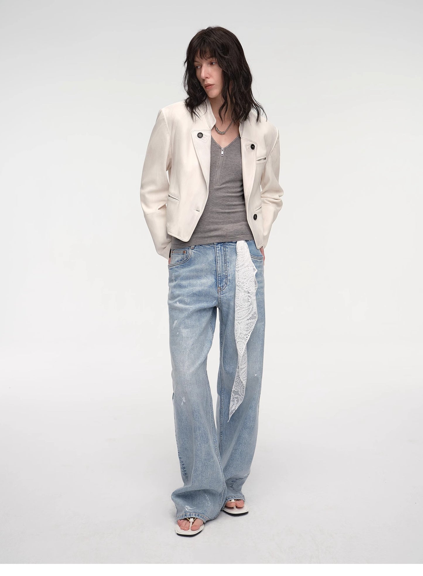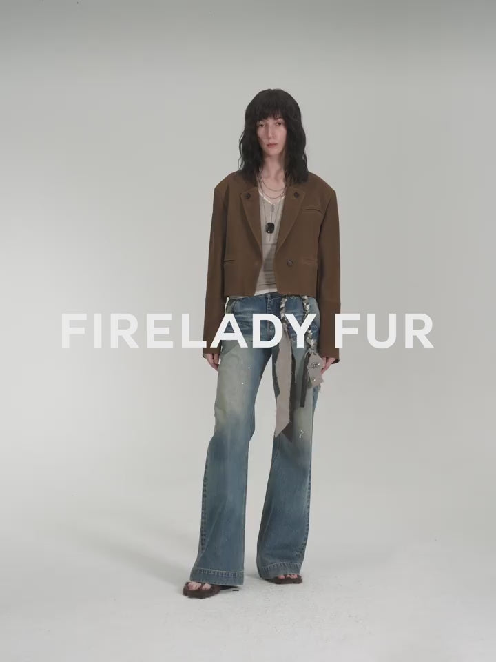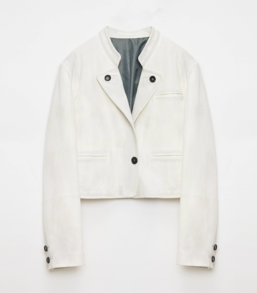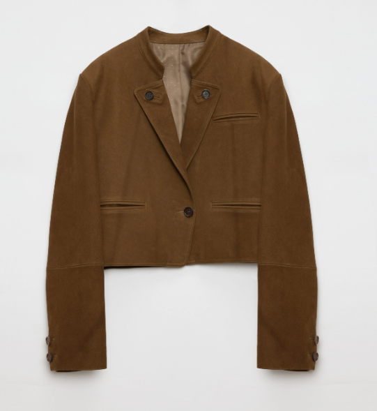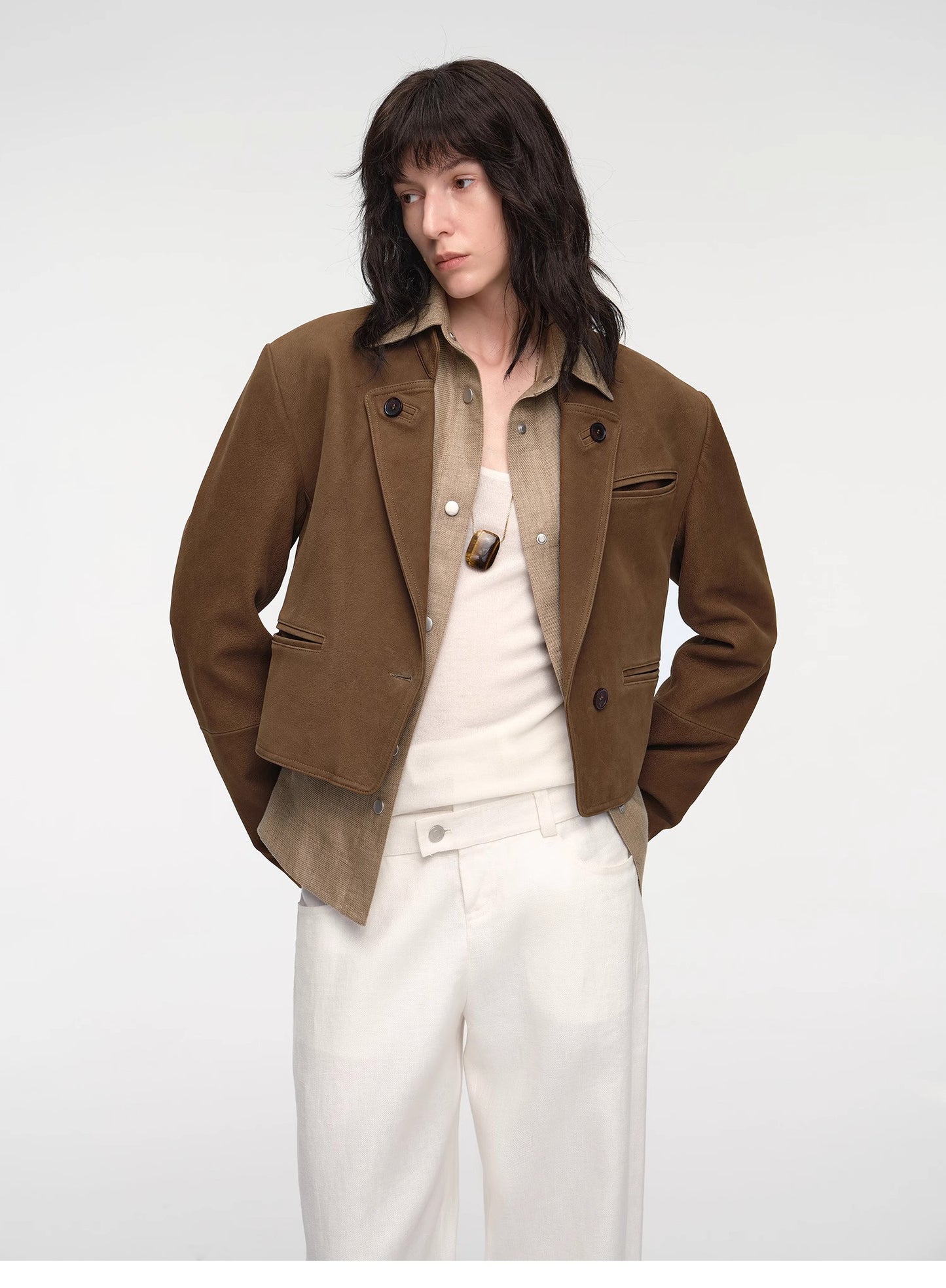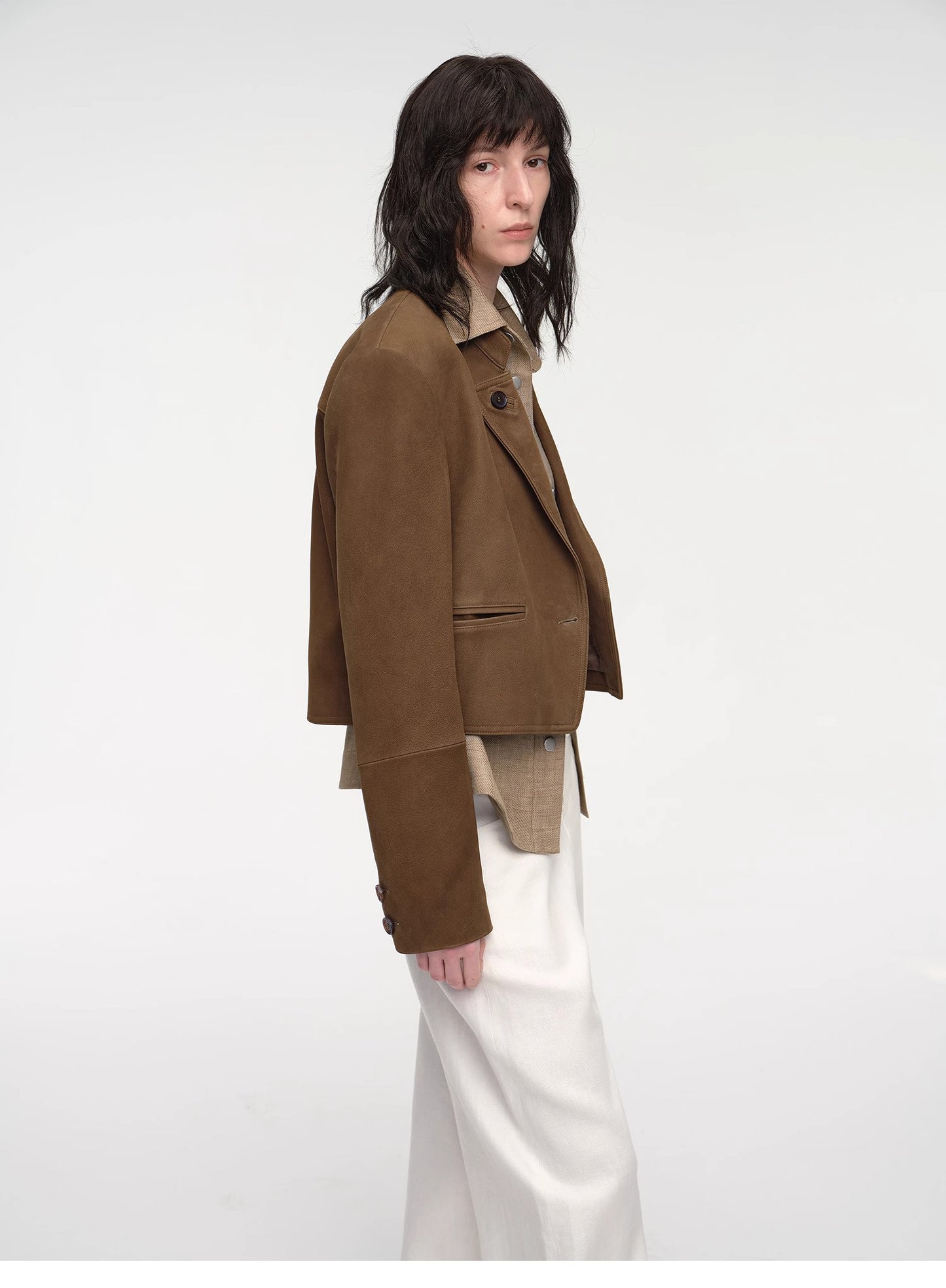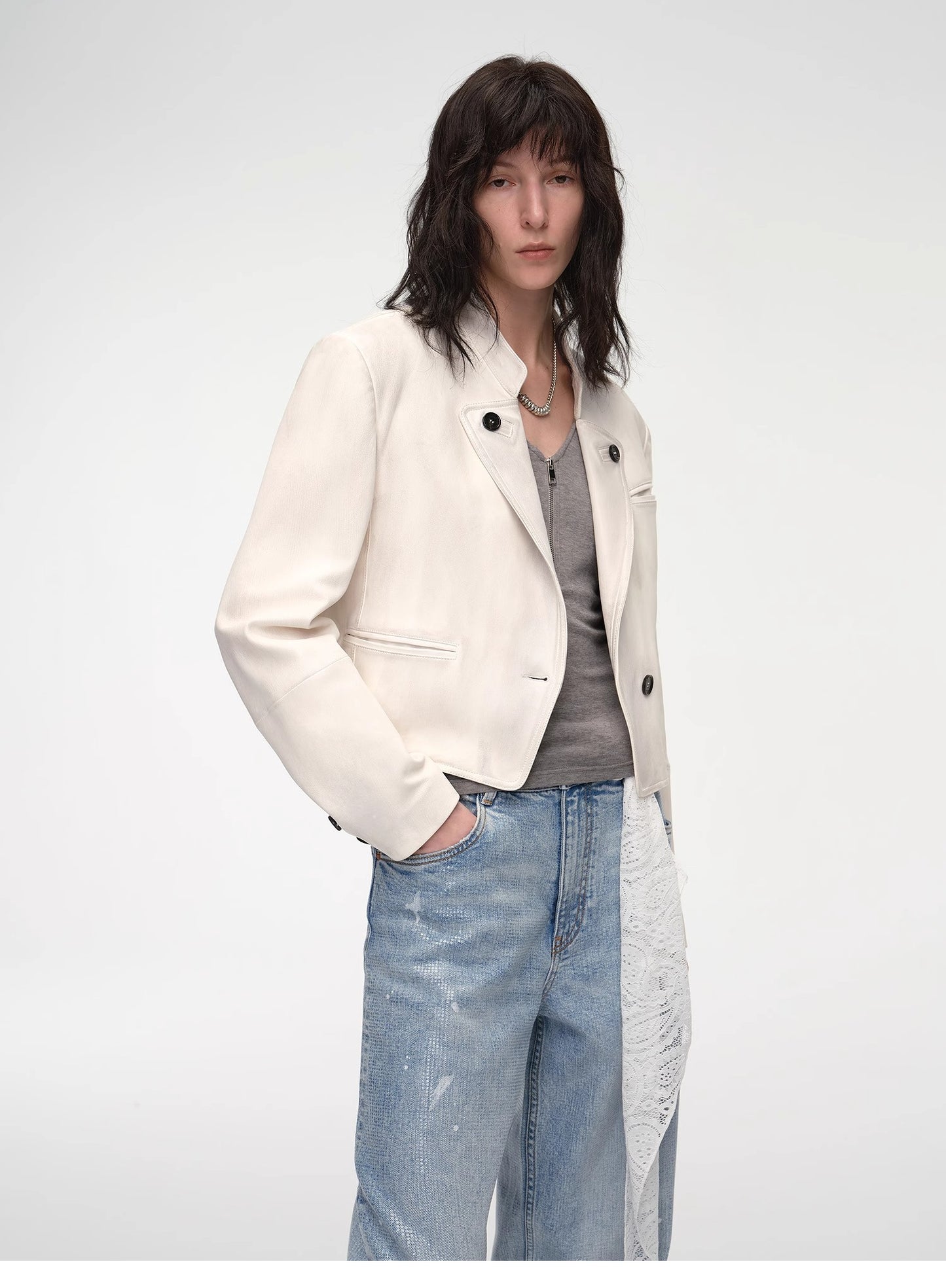 "Roman Story" Stand Collar Suit Sheepskin Leather Short Jacket