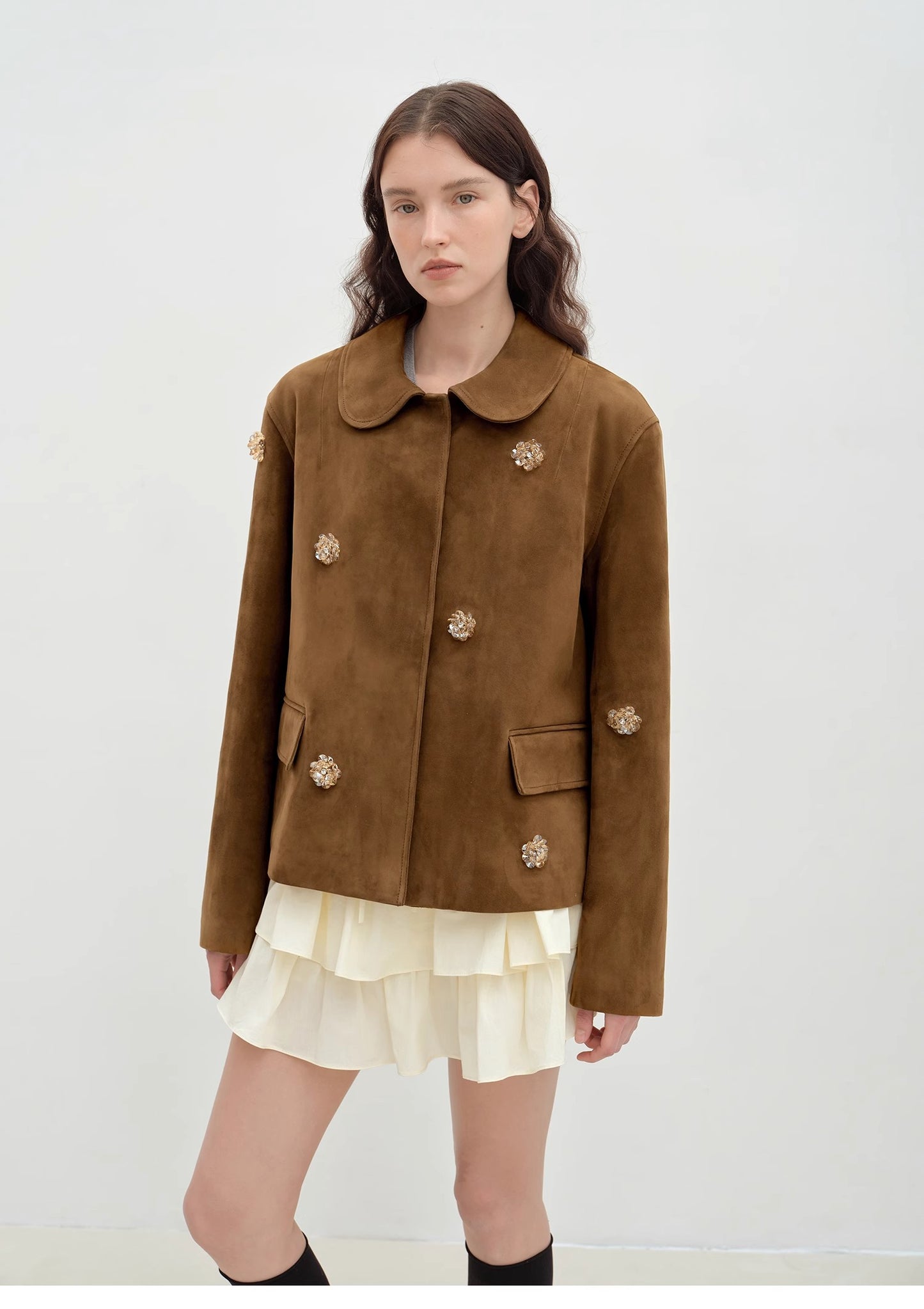 "Velour" high-grade beaded suede leather short leather jacket for women