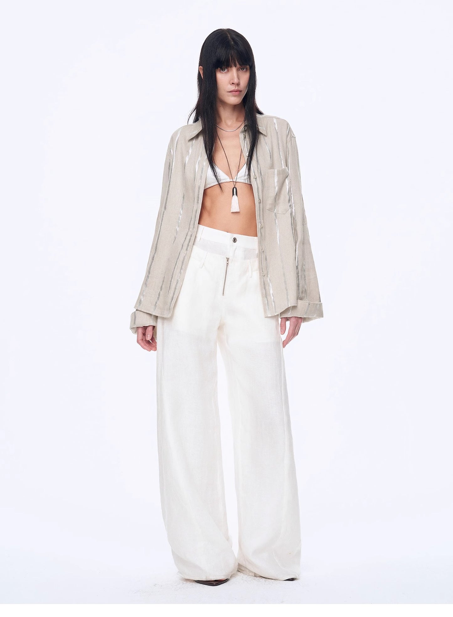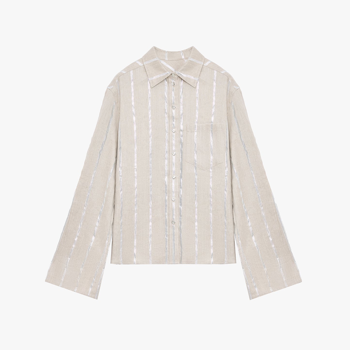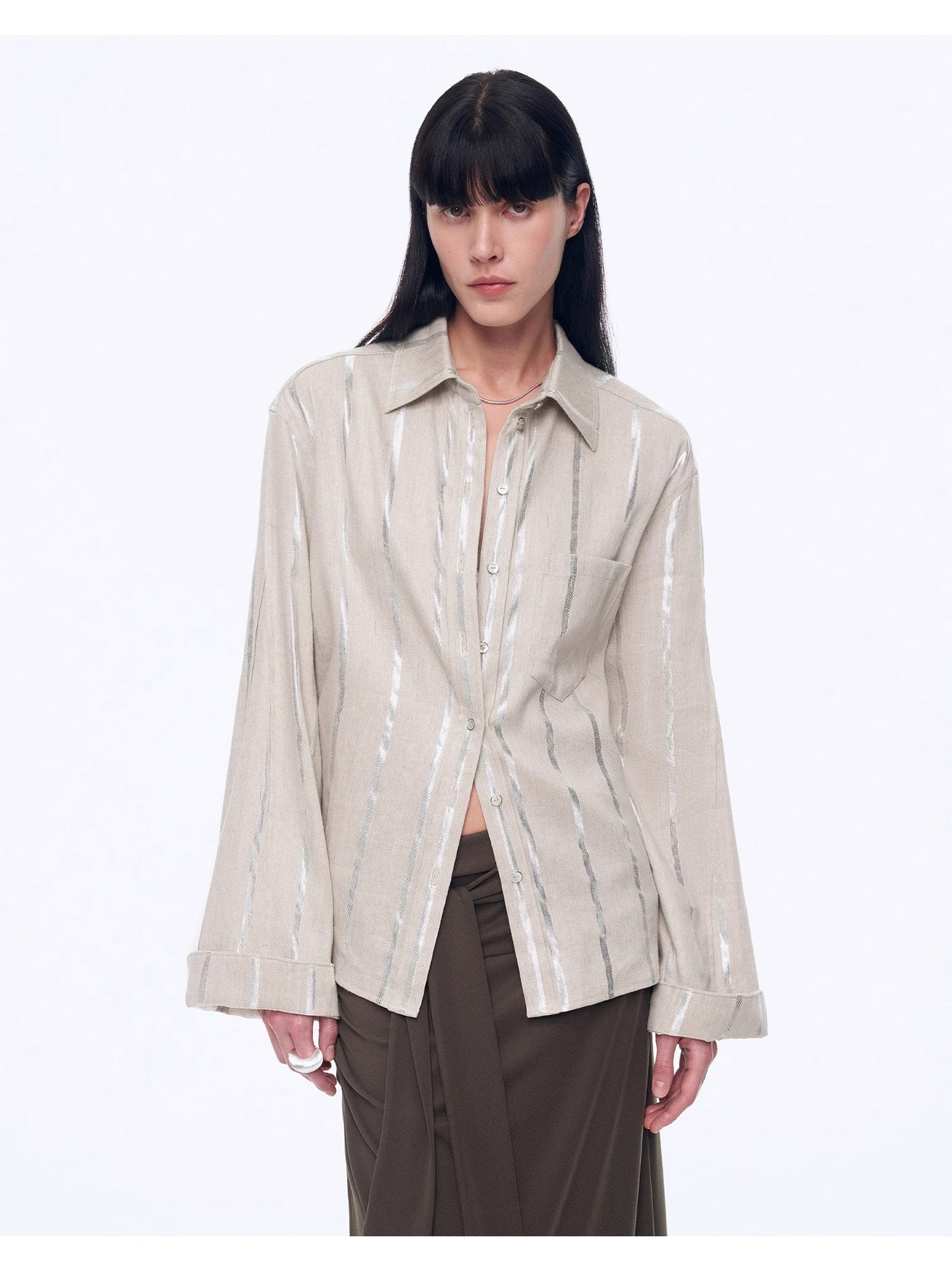 "Anonymous Letter" Silver Stripe Trumpet Sleeve Linen Cropped Shirt