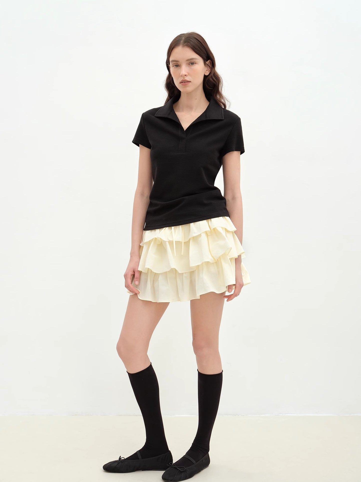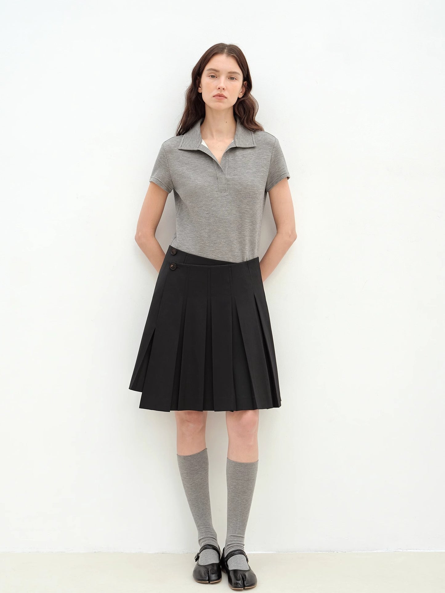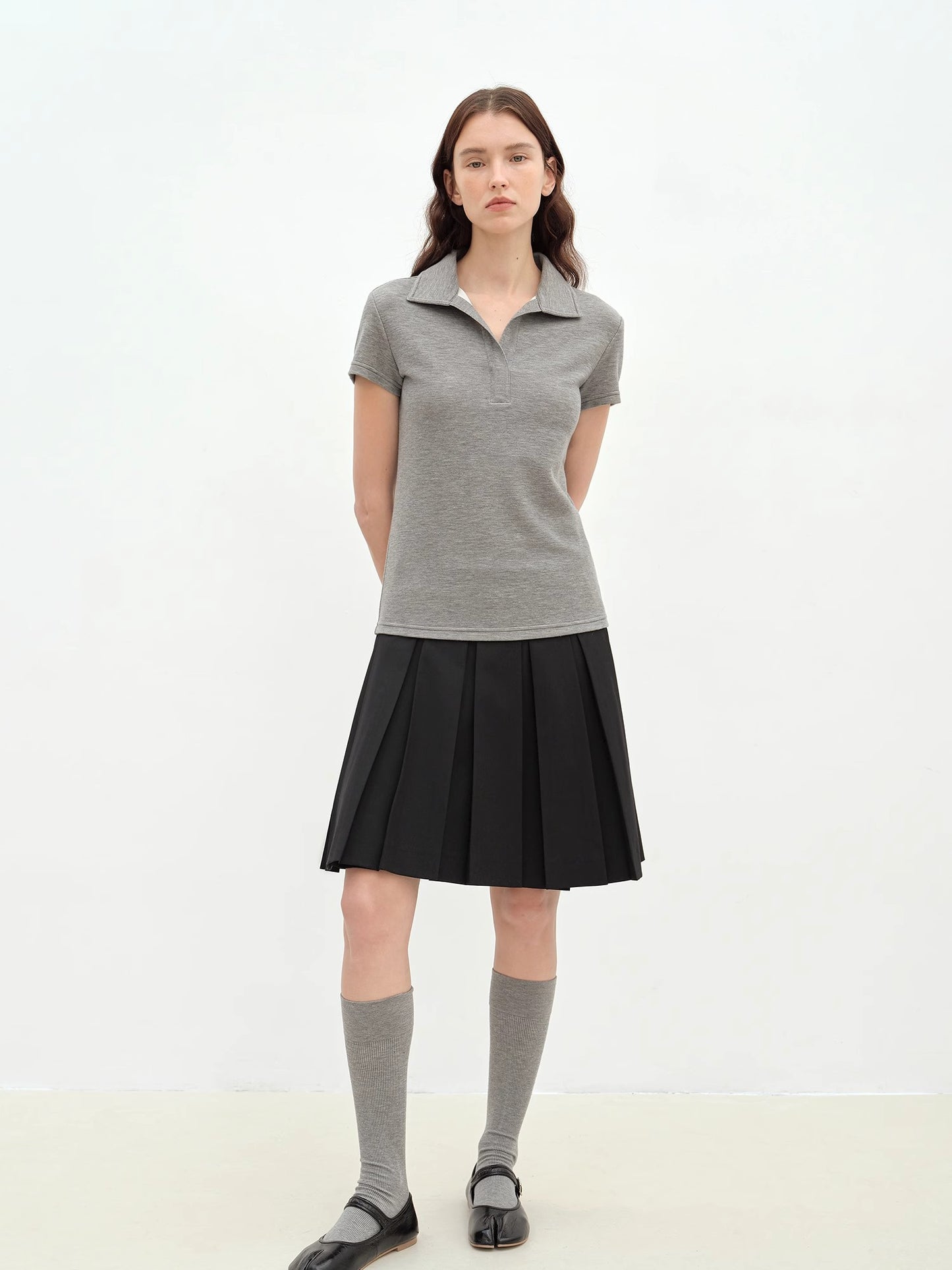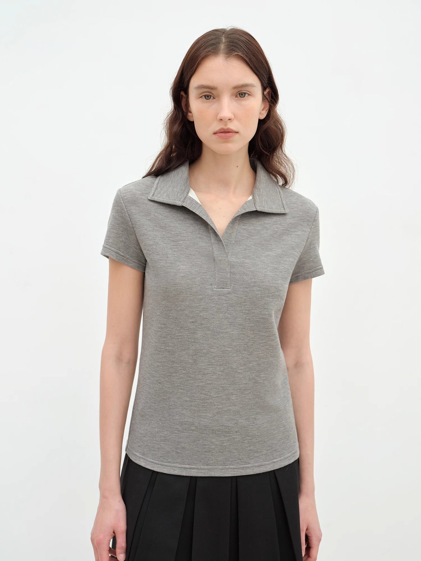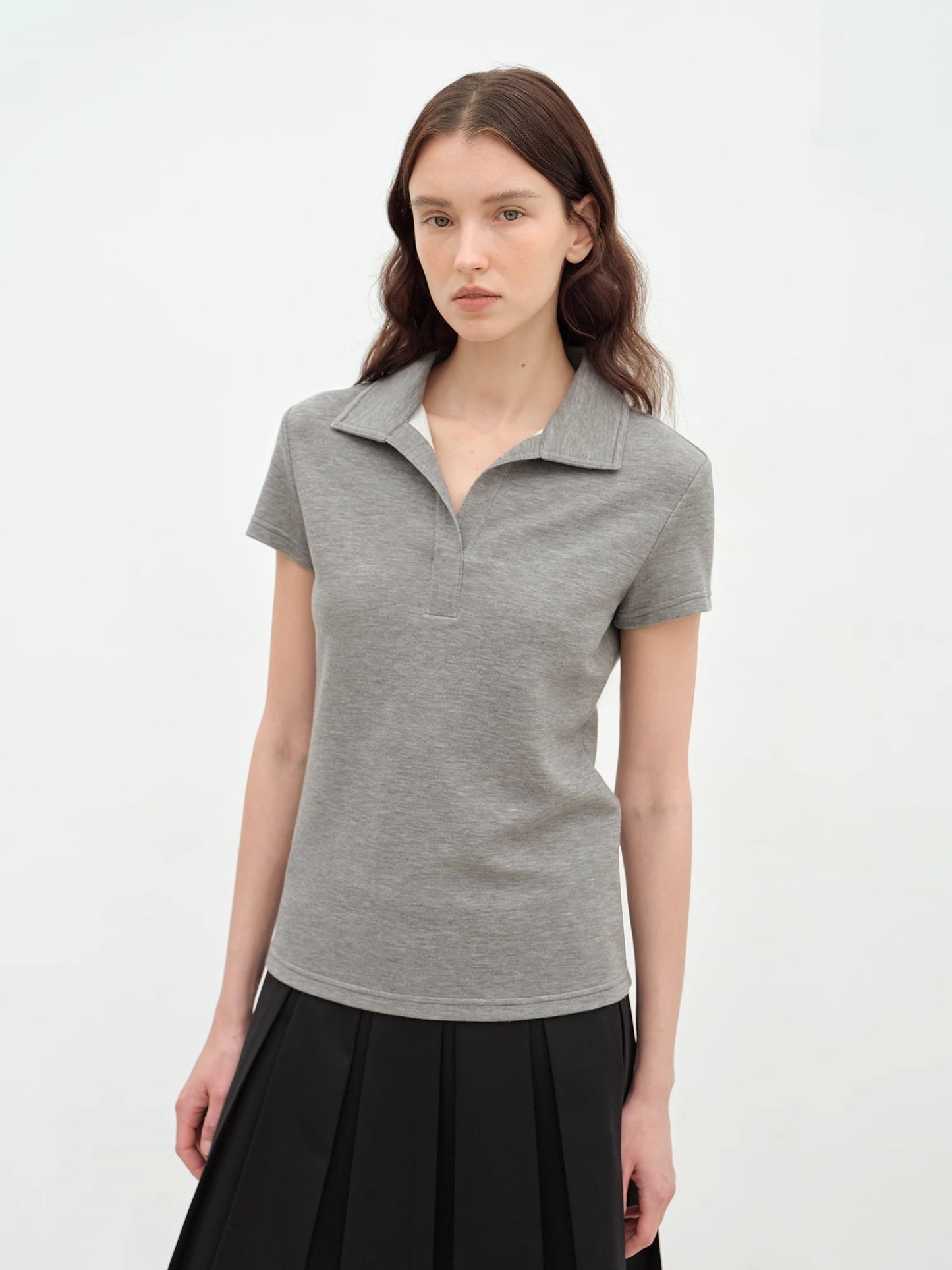 "Dublin" Lapel Straight Shoulder Slim Fit Short Sleeve T-shirt Tops Women