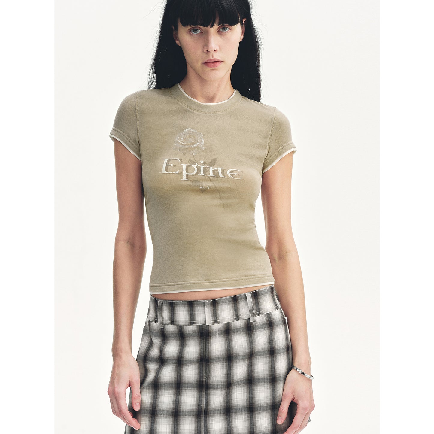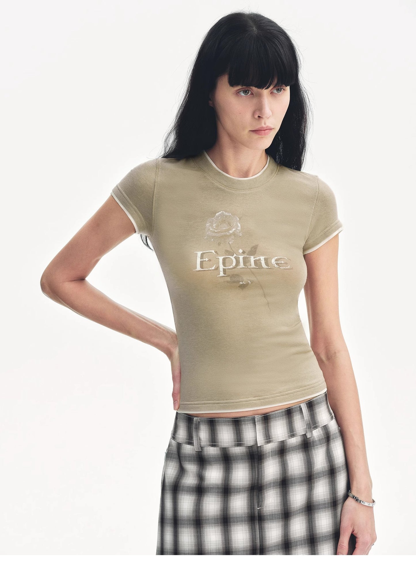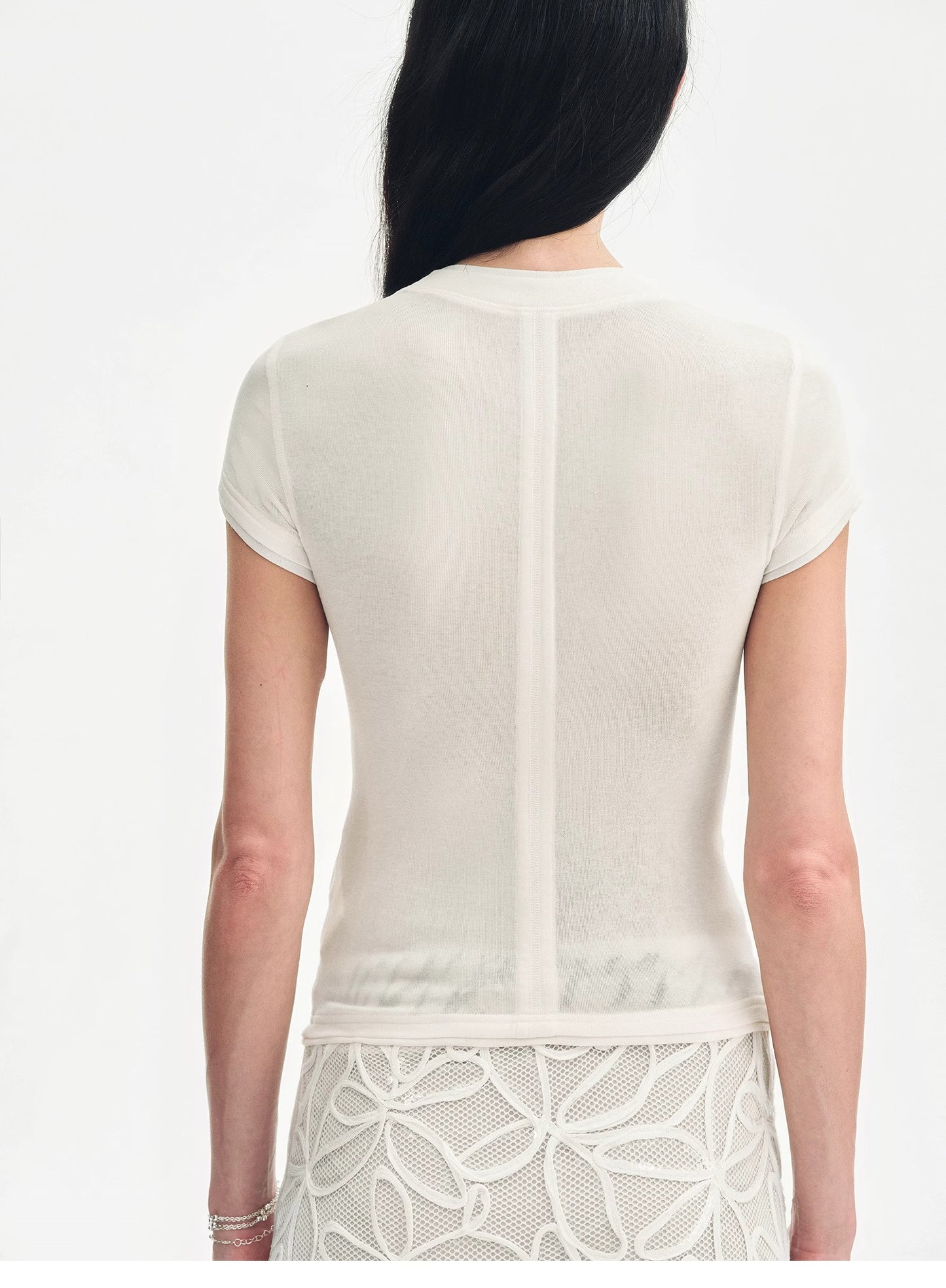 "Memory Navigation" Tencel acetate fake two-piece slim fit straight shoulder T-shirt