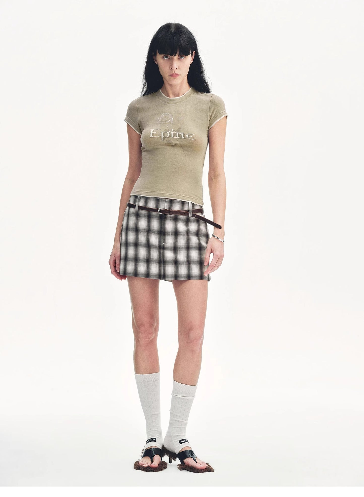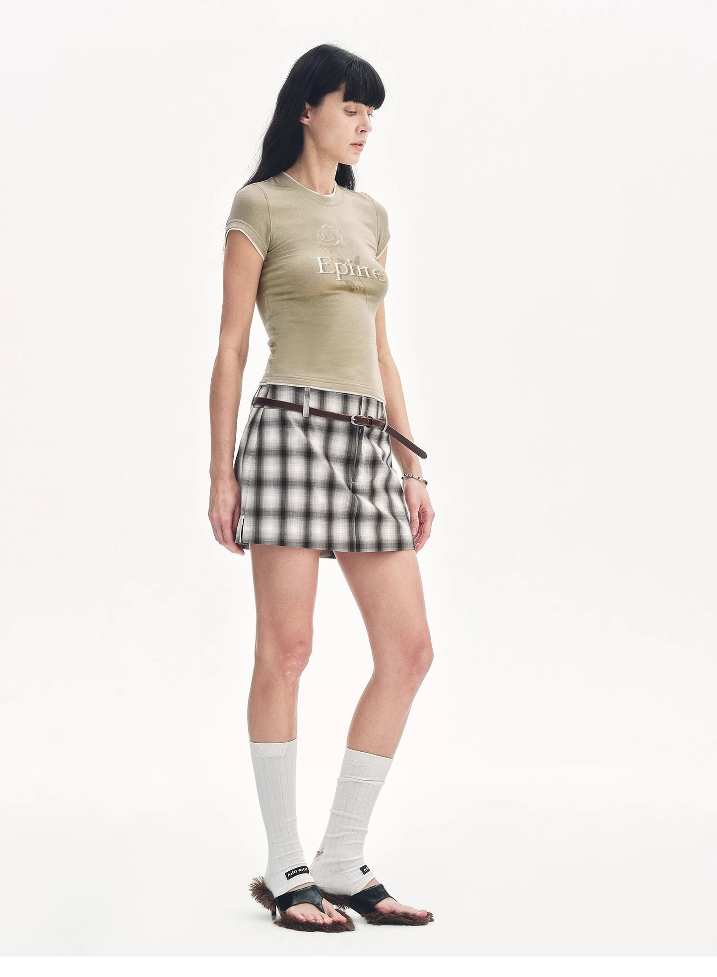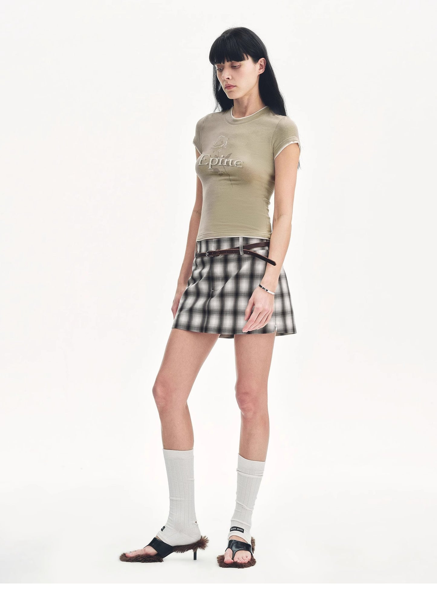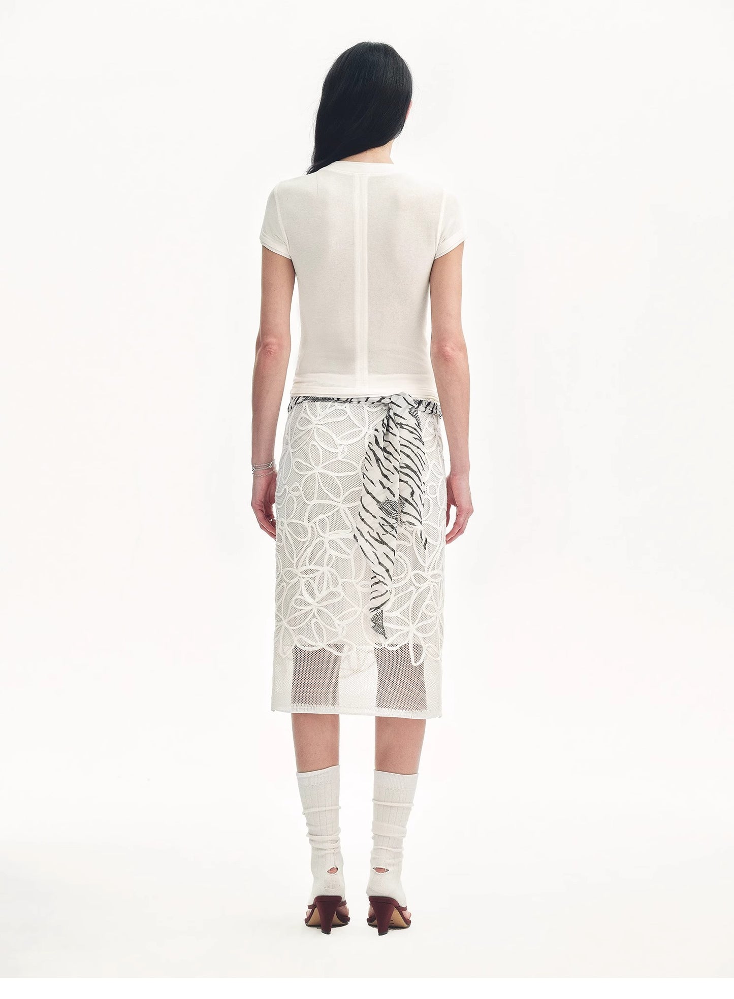"Memory Navigation" Tencel acetate fake two-piece slim fit straight shoulder T-shirt