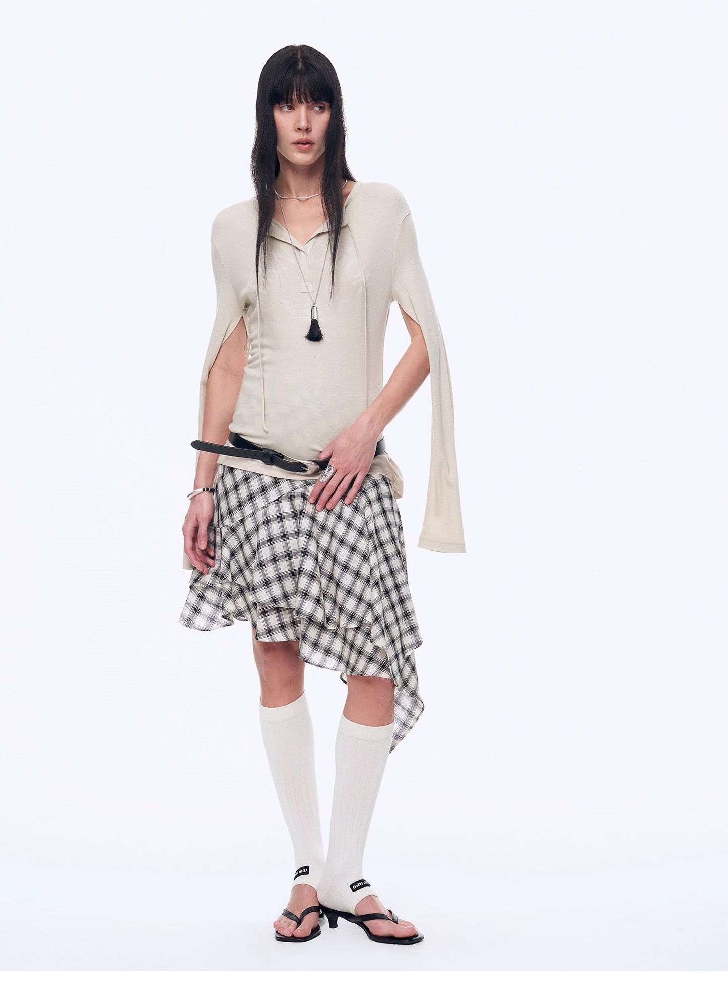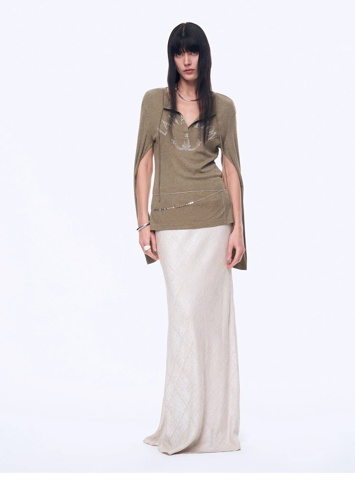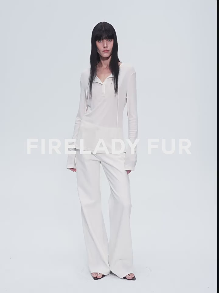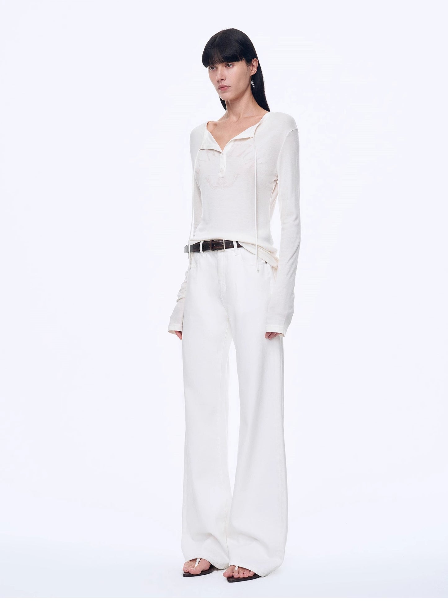 "Minimal Message" ethnic print modal knit henley collar tie long sleeve T-shirt top