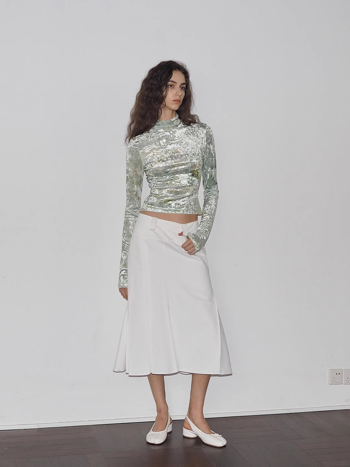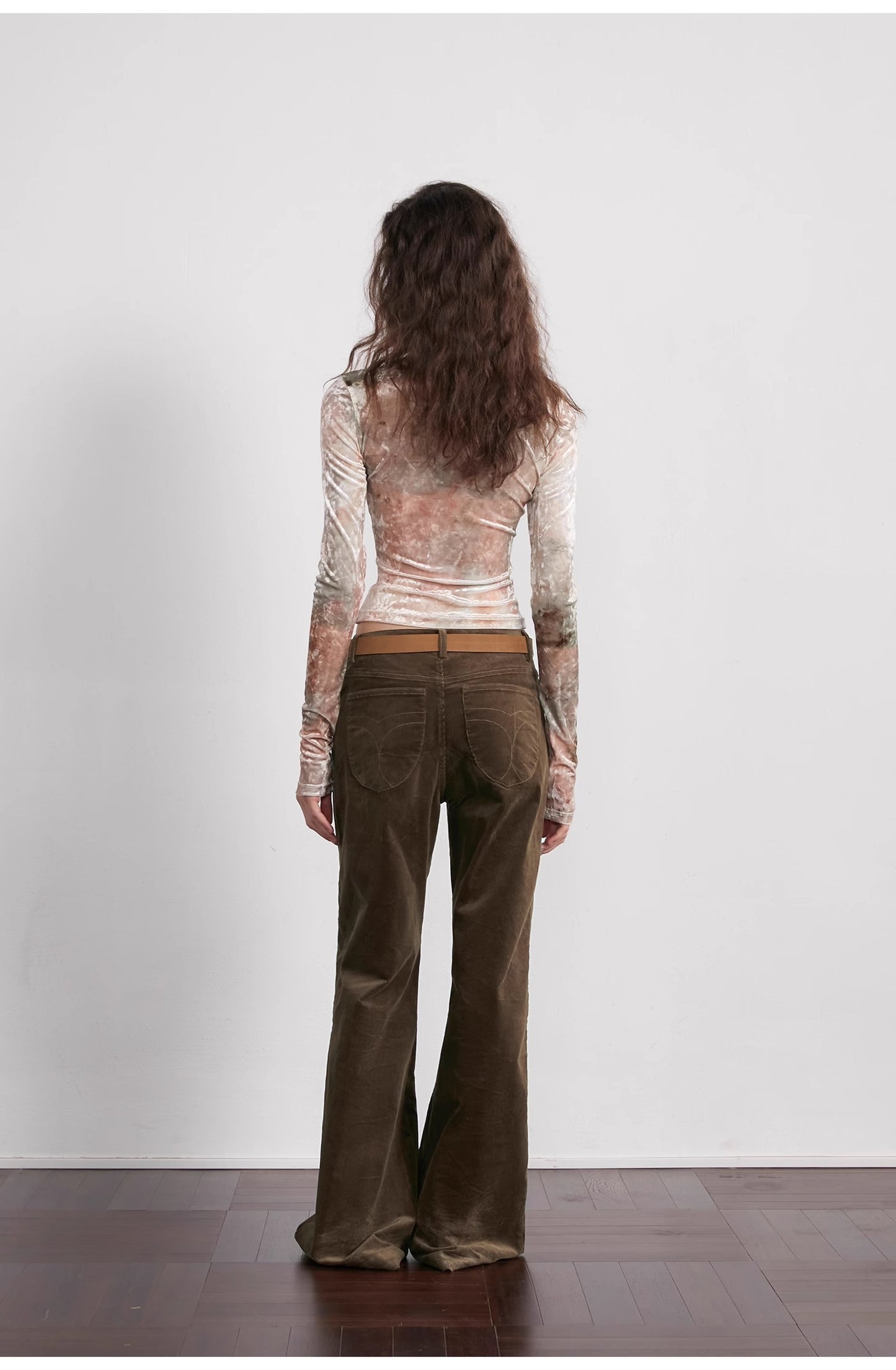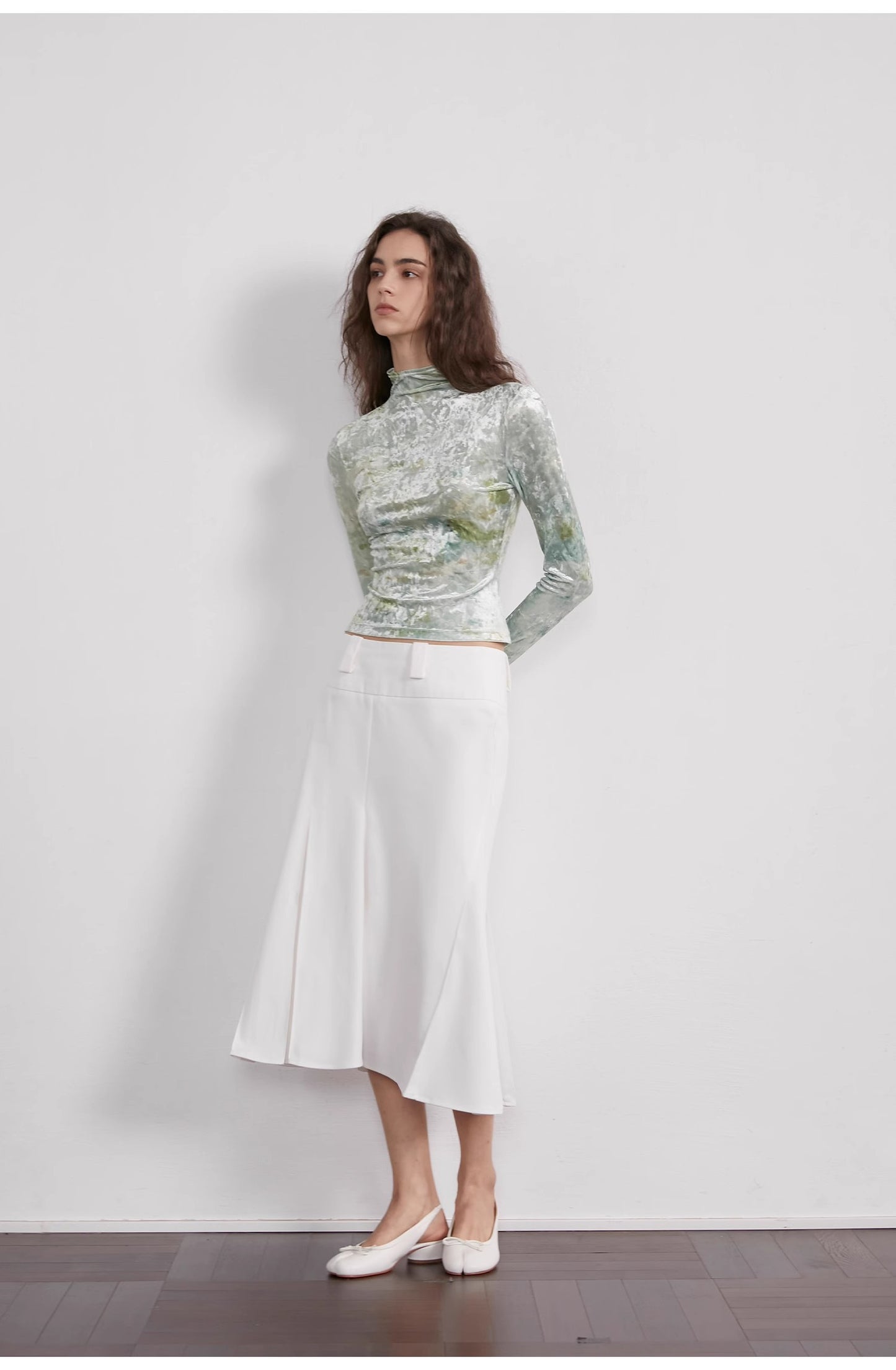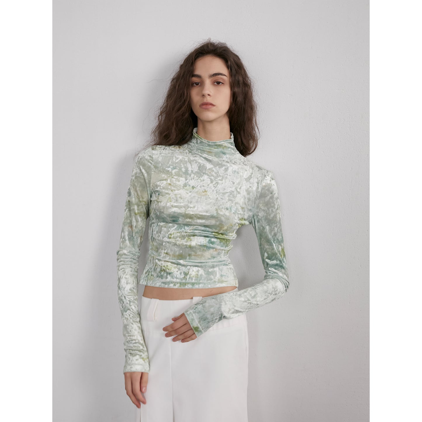 "Warm Sugar Latte" Smudge Print Velvet Long Sleeve Bottoming Shirt Women's Half Turtleneck T-shirt