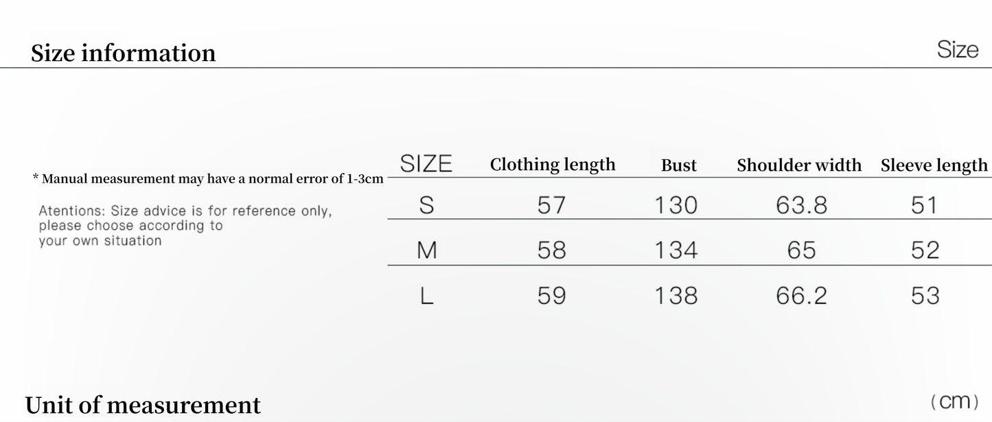 Wide placket design forms the front partial placket overlap, double-layer design is not only more windproof and warm, at the same time, increase the sense of layering of the body. The bias placket reduces the sense of constraint and dullness, and has a more design sense of straight shape, simple and sharp cutting, easy to create a Guanmei body proportion, light and dynamic.