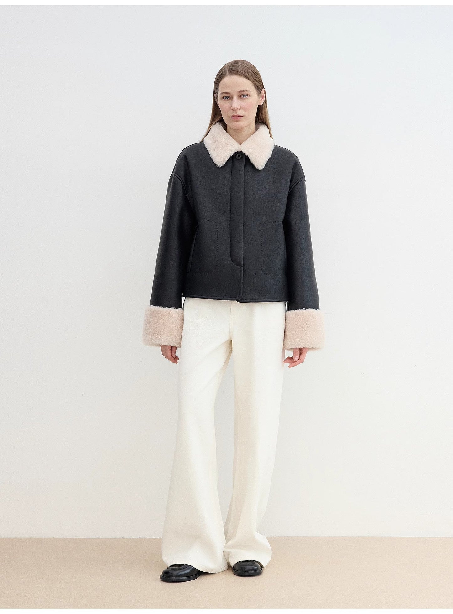 Precio regular $309.12 USDThe interior of fine and thick sheepskin velvet is dense and warm, and the surface of fine velvet artificial compound suede is retro and fashionable. The loose straight version is slim and slim. The neat and short style can easily optimize the proportions. It is comfortable and versatile, looks tall and stylish, and the color-matching fur surface small lapels has a temperament. The wide raw edge of the cuffs echoes the details, making it warm comfortable, and rich in layers.