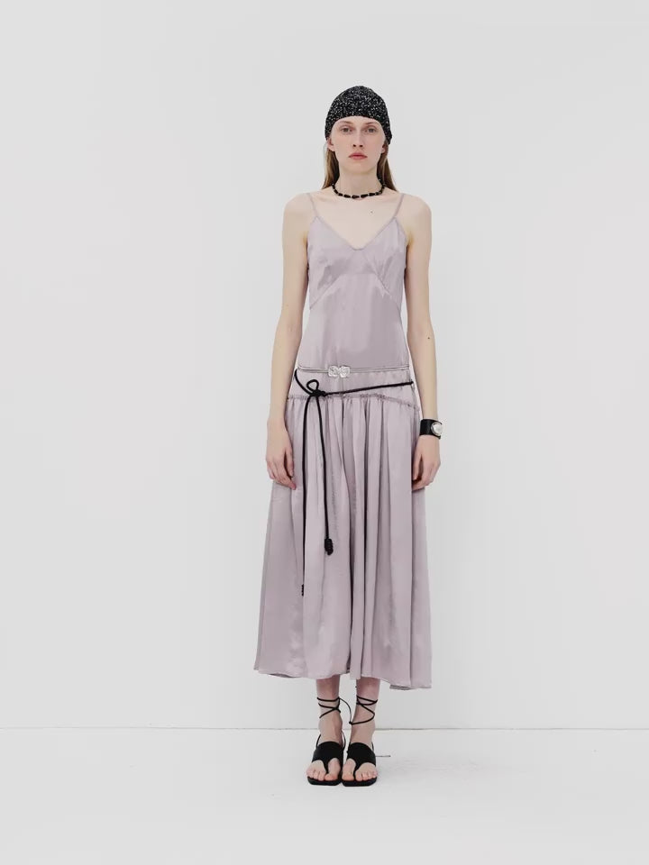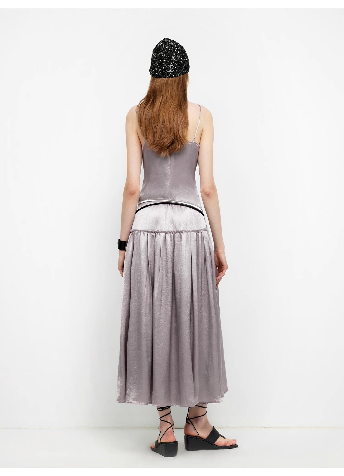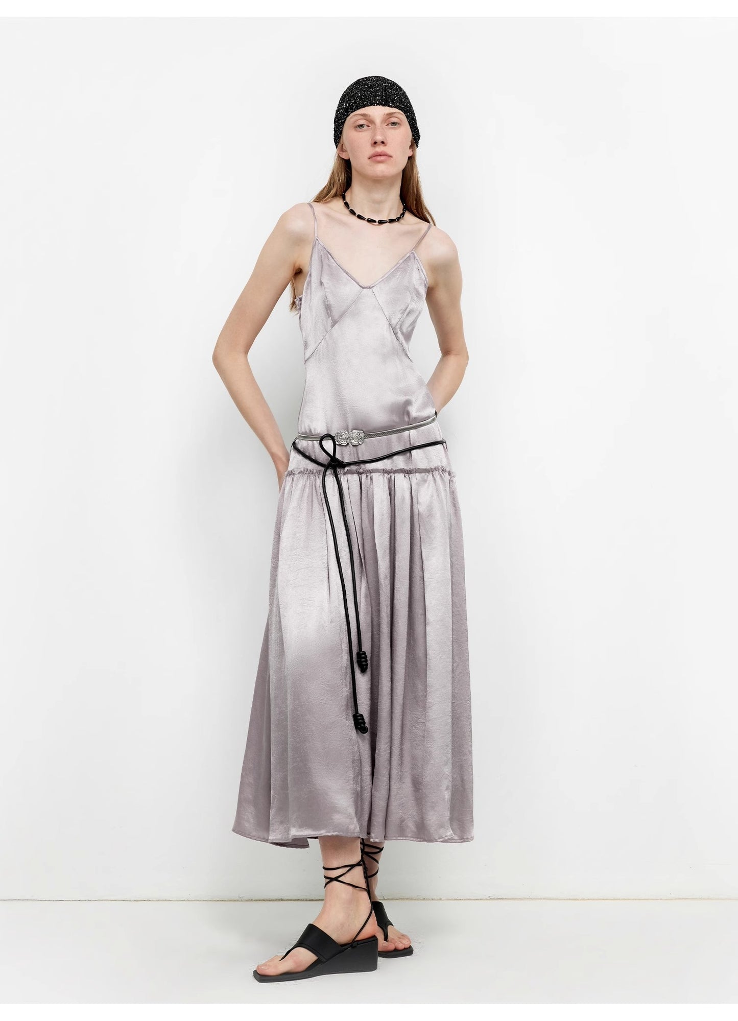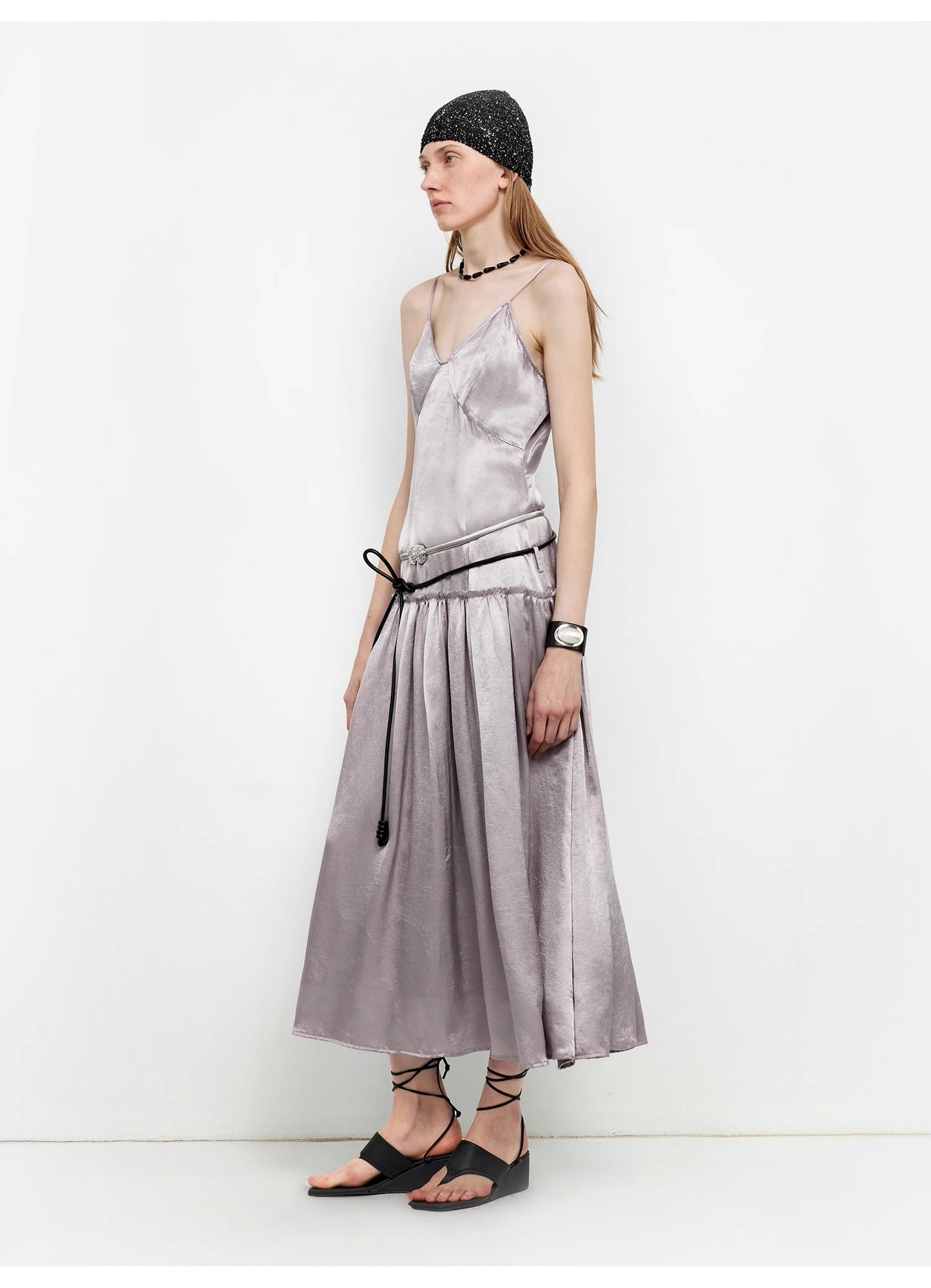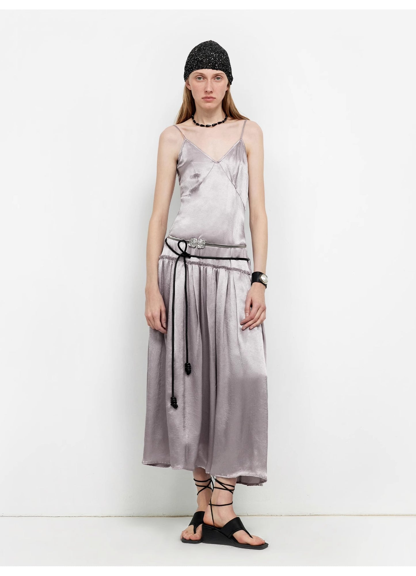 "Girls' Letterhead" Luxurious and light, glossy and silky 100% acetate low-waisted long suspender dress