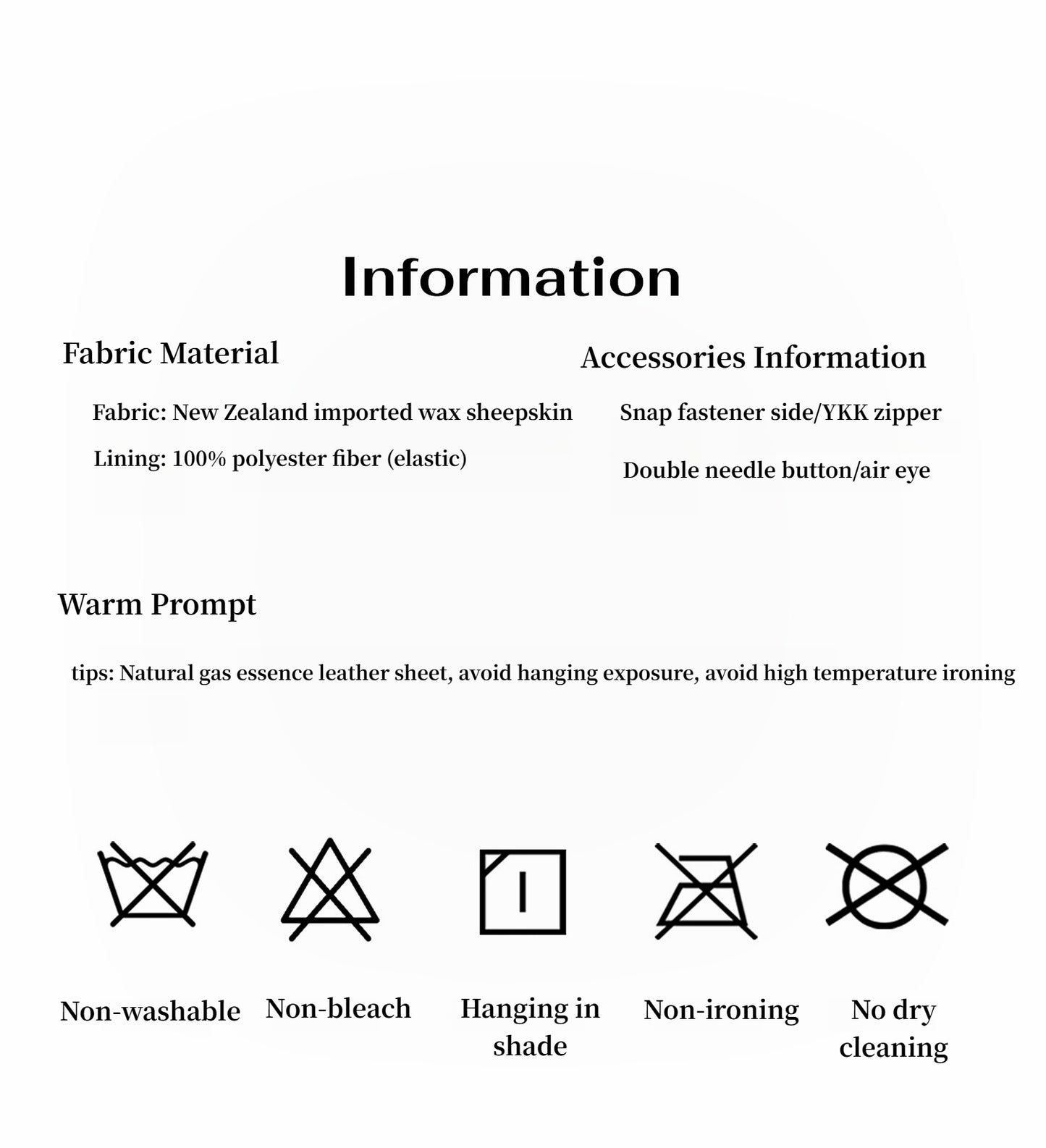 The production of waxy sheepskin has extremely high requirements for leather. Grade A soft sheepskin has undergone a "waxy" finishing process, and the surface presents an oily patent leather with natural depth changes. It has a natural irregular rib texture with a drape, is light and not bulky, and is extremely comfortable to wear.