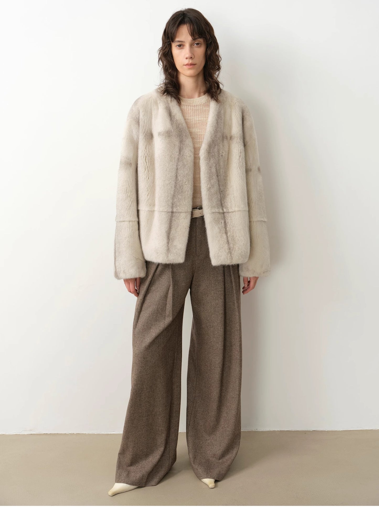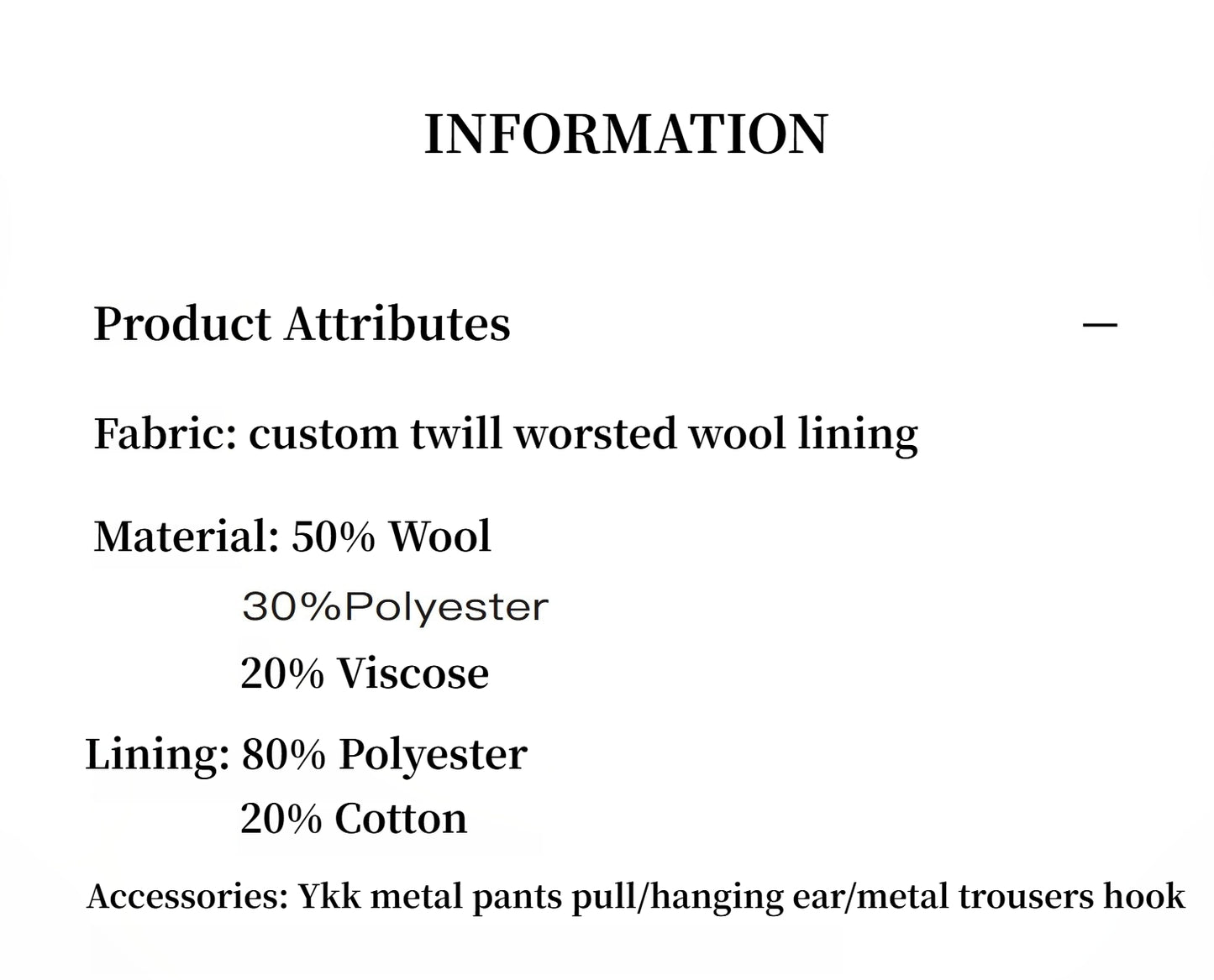Selected fine-spun wool, processed with special techniques, offering strong wrinkle resistance and preventing lint. Smooth and drapey, while maintaining structure. The fabric, dyed with a special process, presents a soft color tone, restoring the luxurious feel of high-end fashion. It combines warmth and style, perfect for autumn and winter.