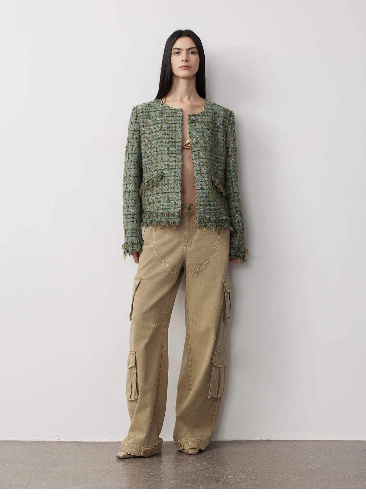 The front piece is split diagonally to adjust the hips and hips for comfort without getting stuck in the crotch. The multi-pocket design is fashionable and full of street style.The curved line at the back extends to the front to highlight the hip shape. The one-line patch pocket is personalized and convenient for styling.