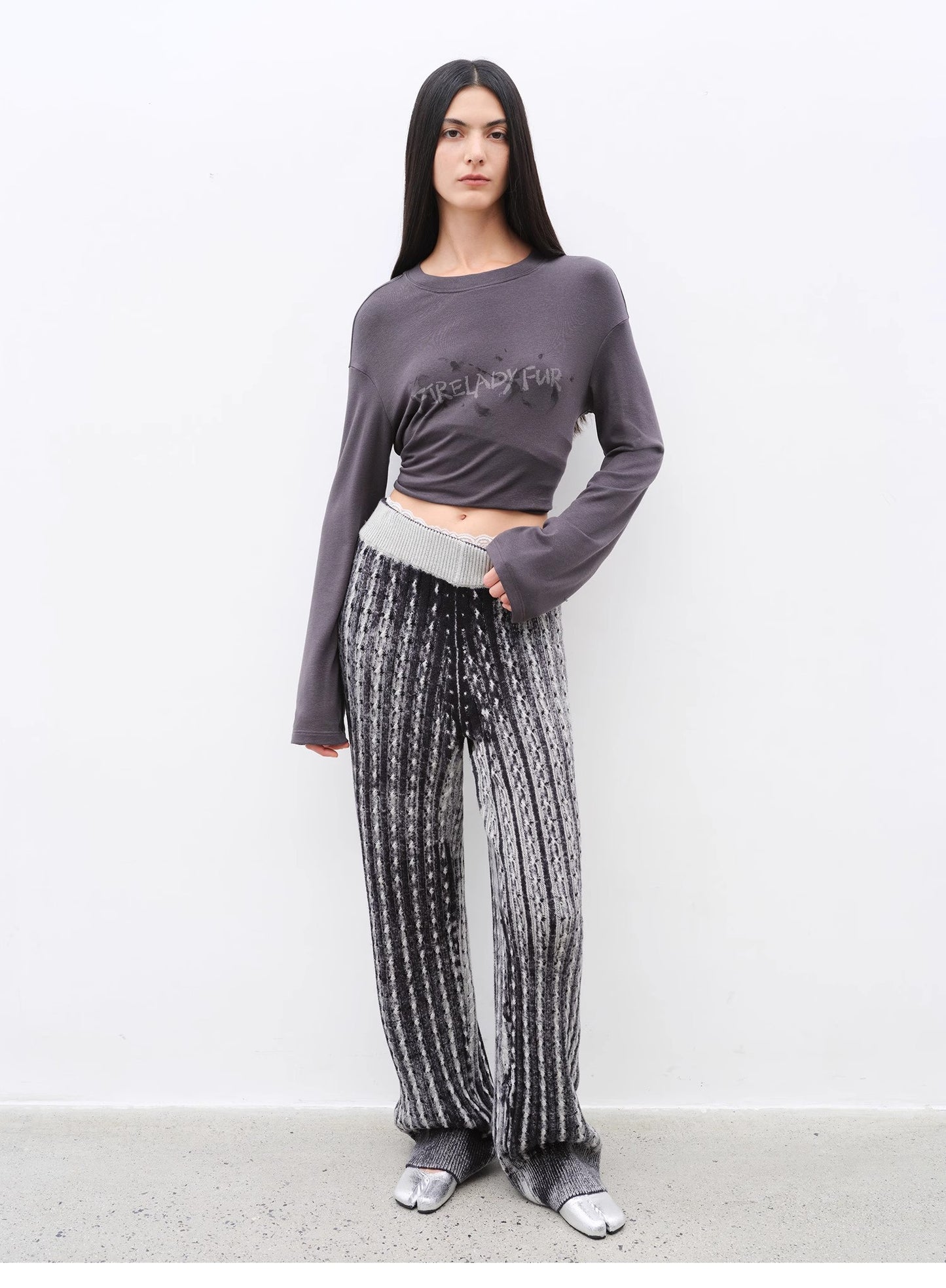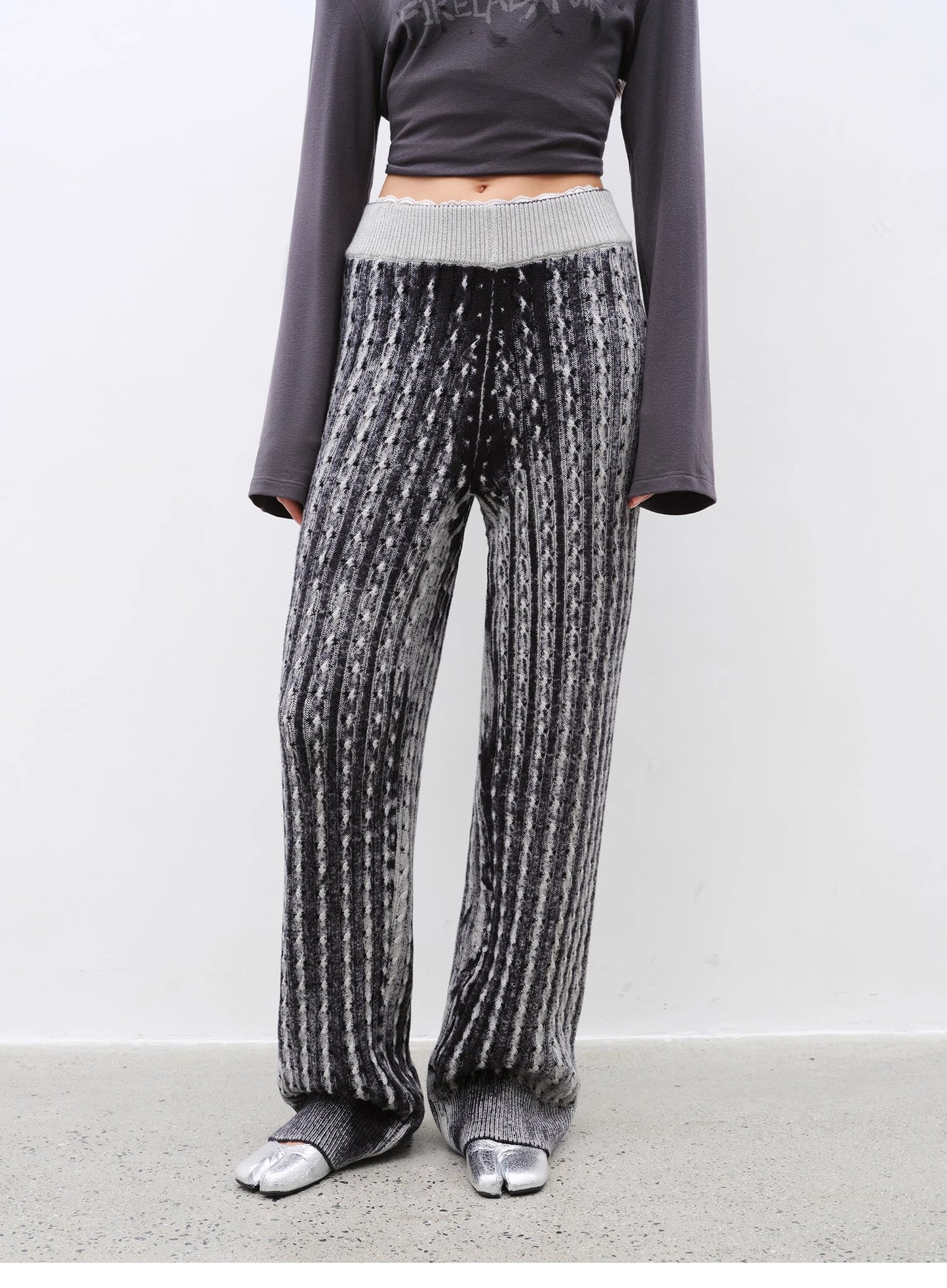 "Winter Date" fashionable slim silhouette permeation printing and dyeing process loose knitted straight pants