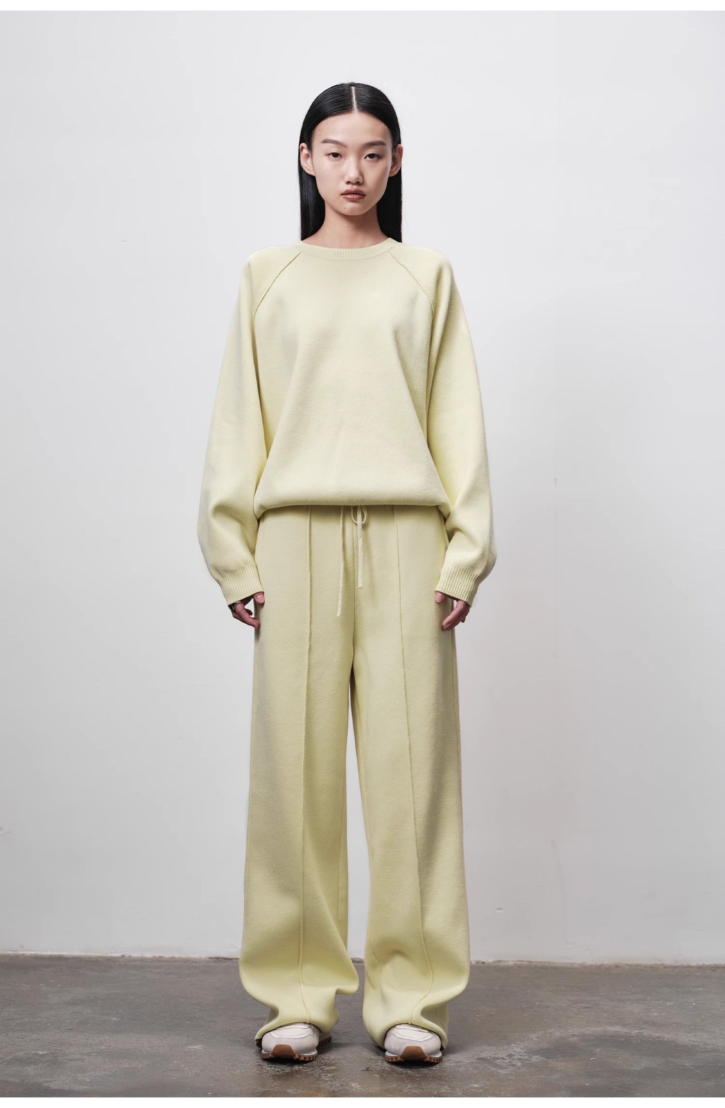 "Winter Morning Sunshine" French Lazy Style Wool Blend Design Loose Slimming Knit Casual Pants for Women