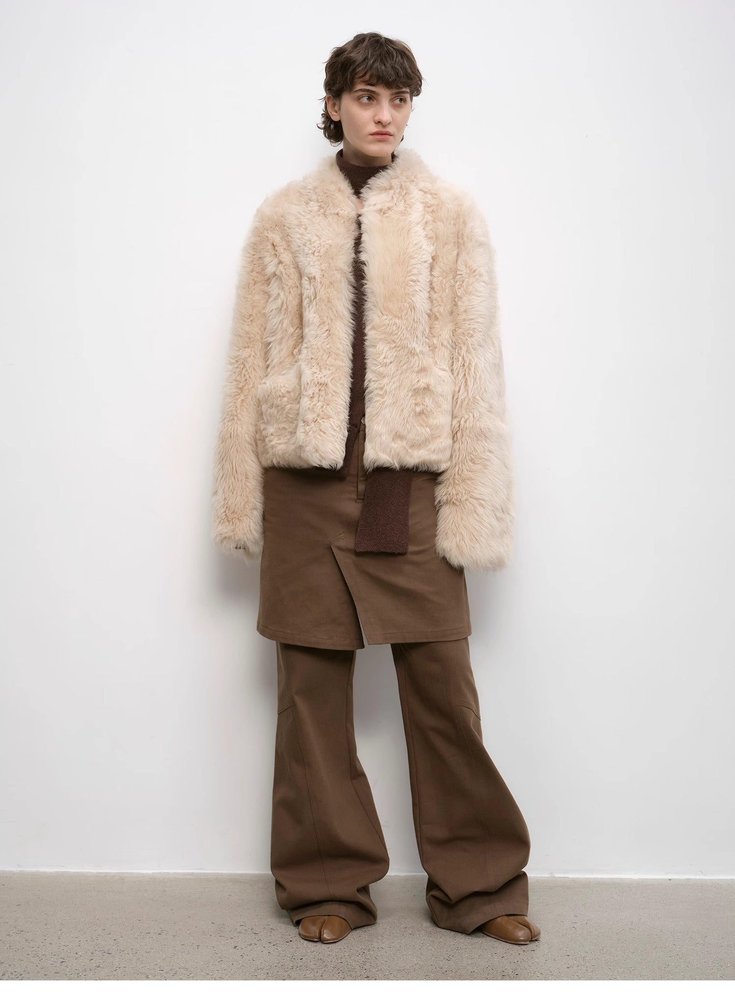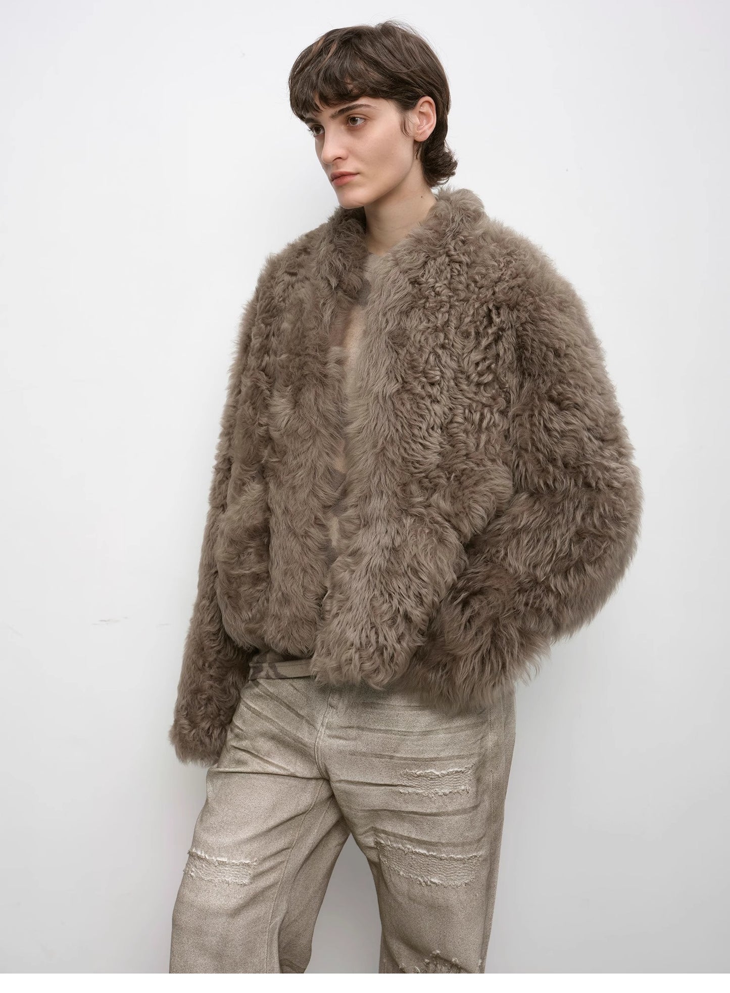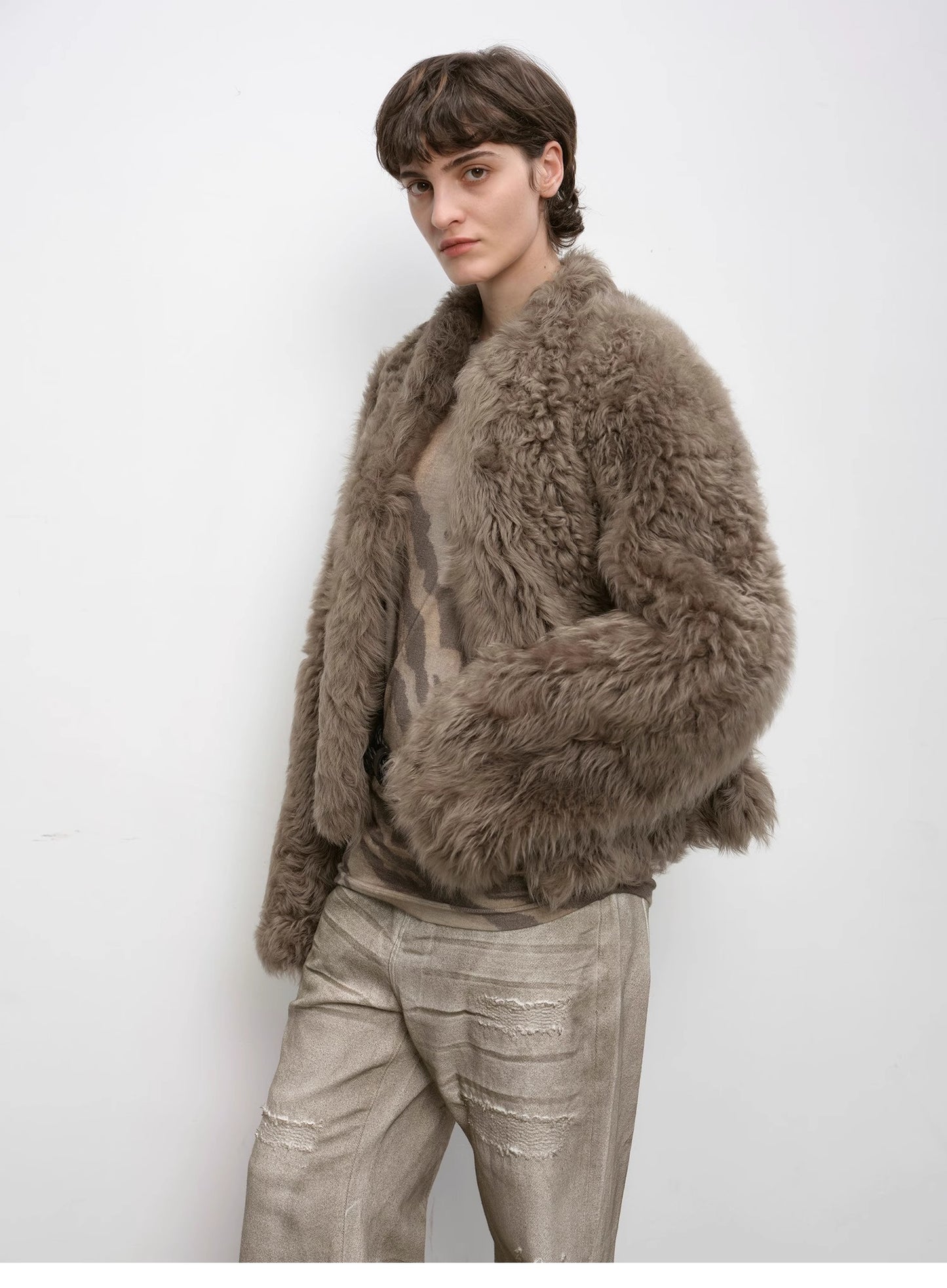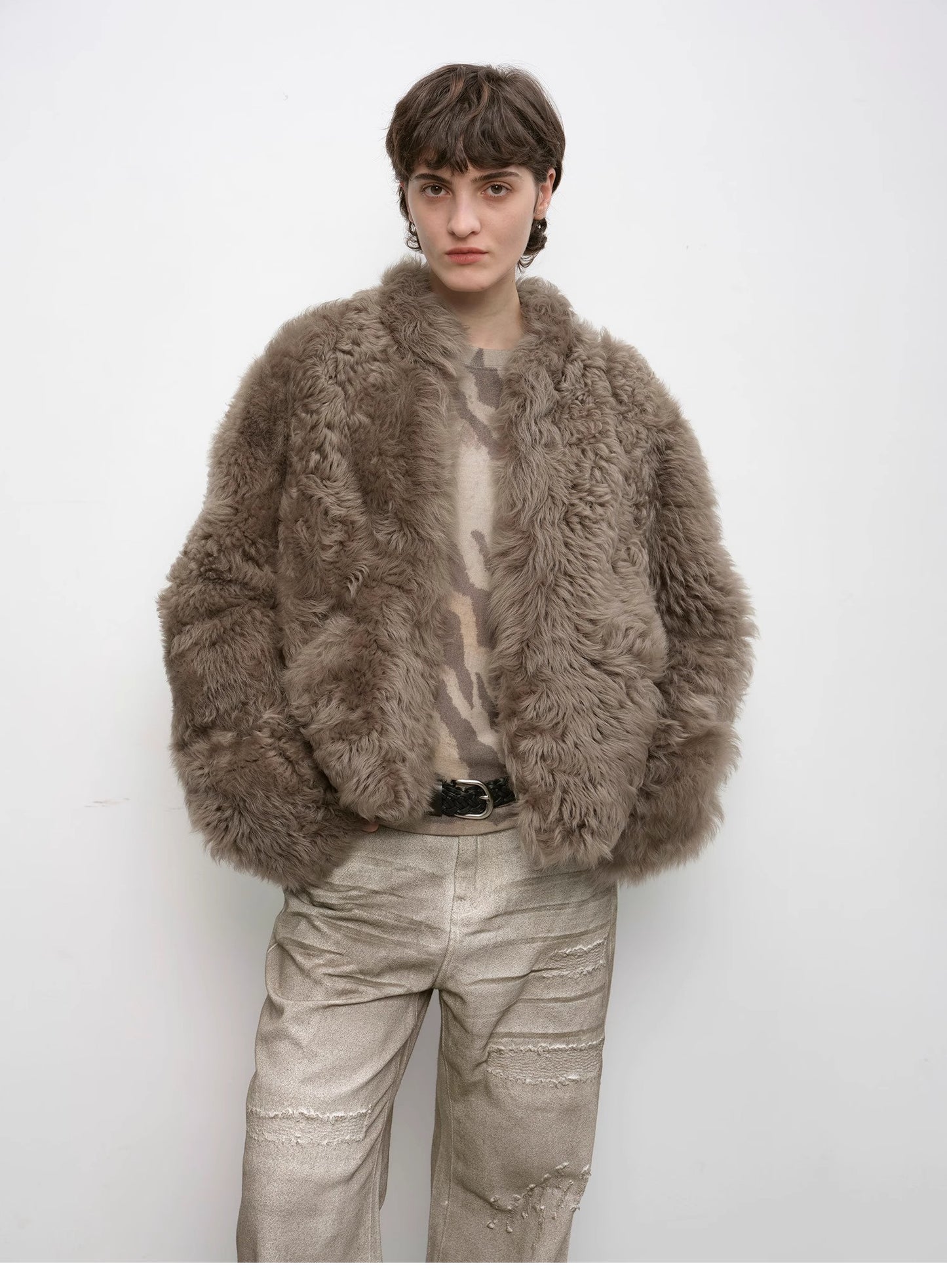 "Autumn Basel" imported Tuscan sheepskin half-roll short casual fur coat
