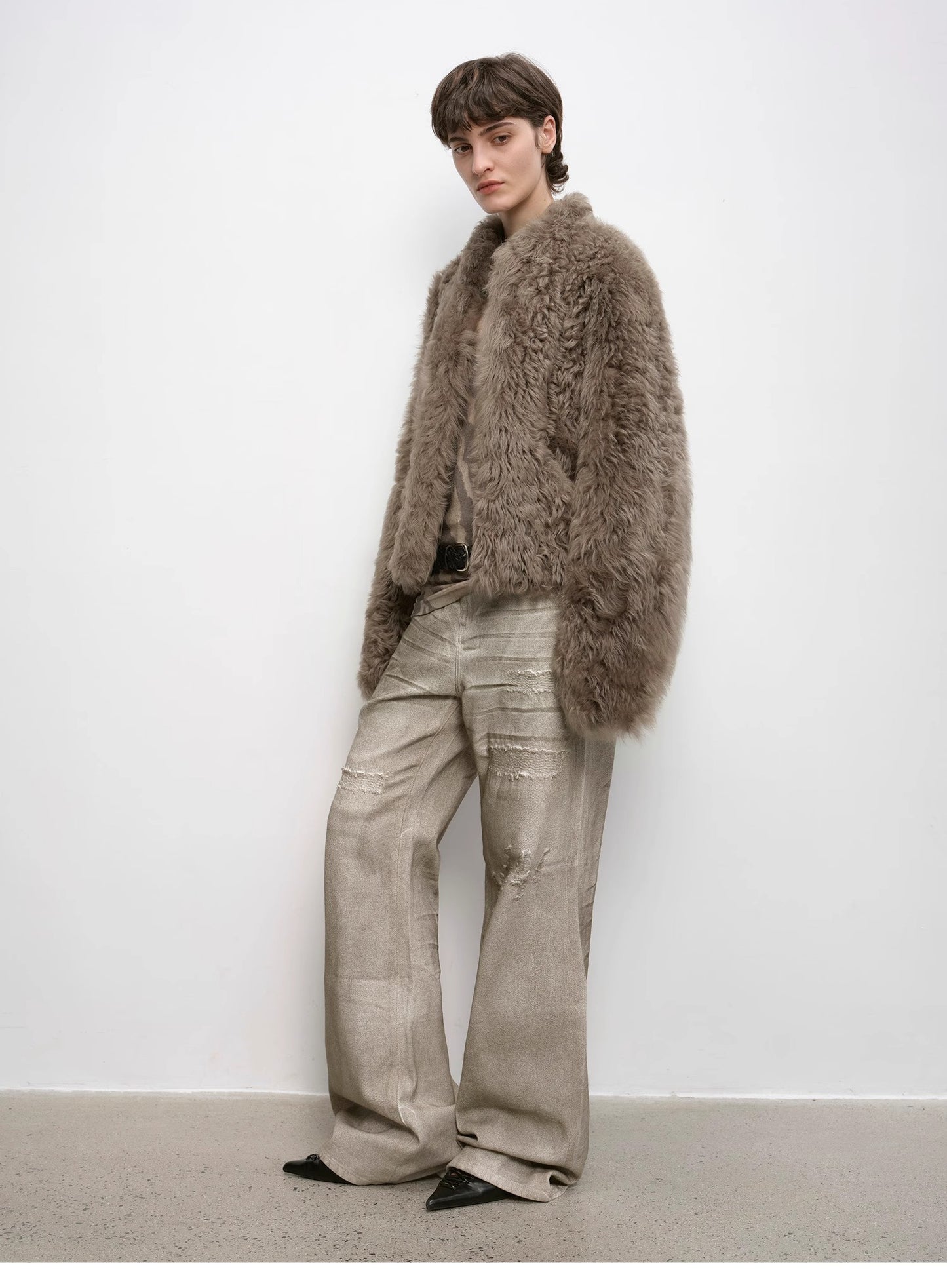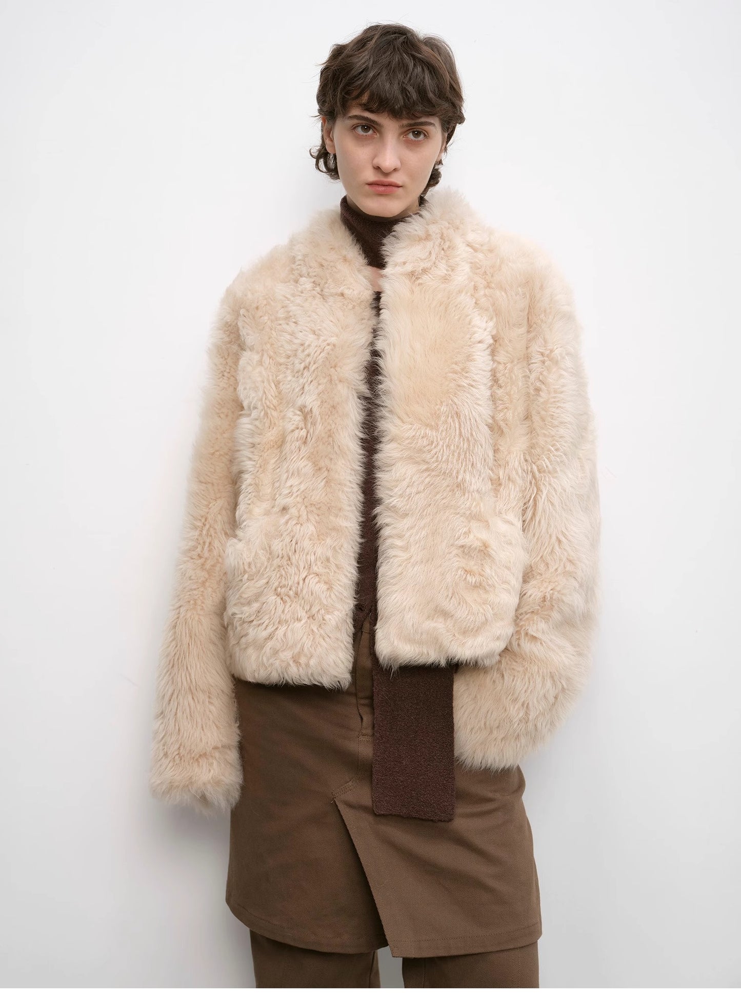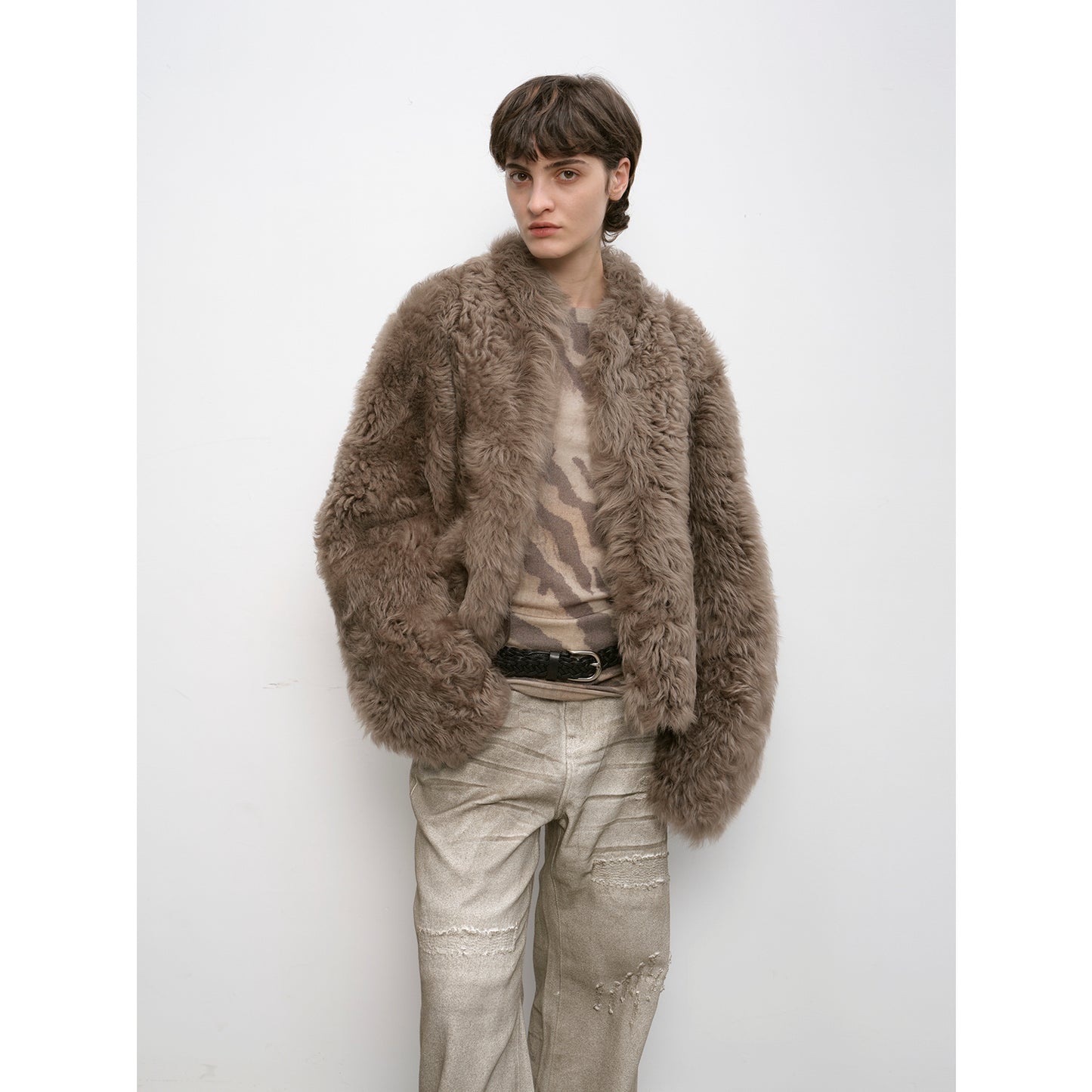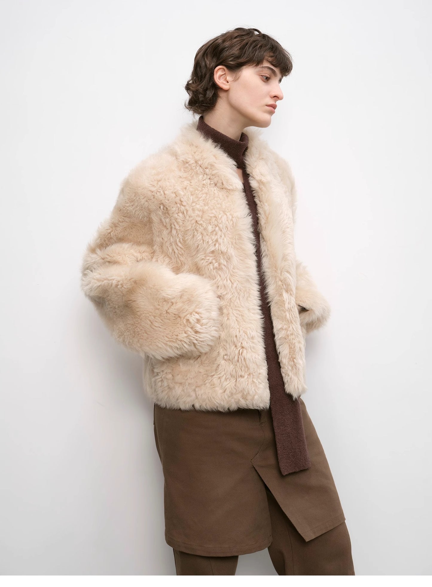"Autumn Basel" imported Tuscan sheepskin half-roll short casual fur coat