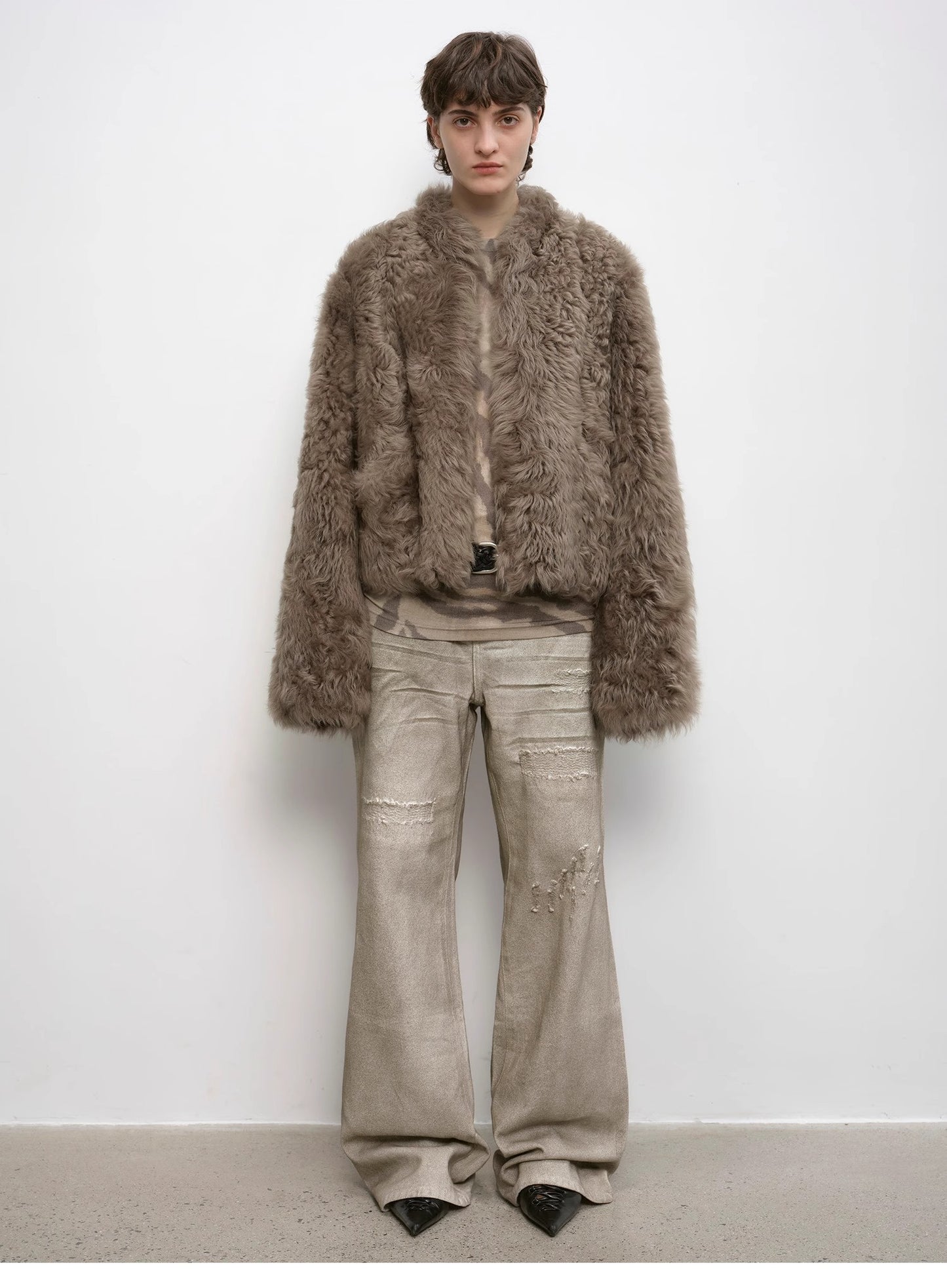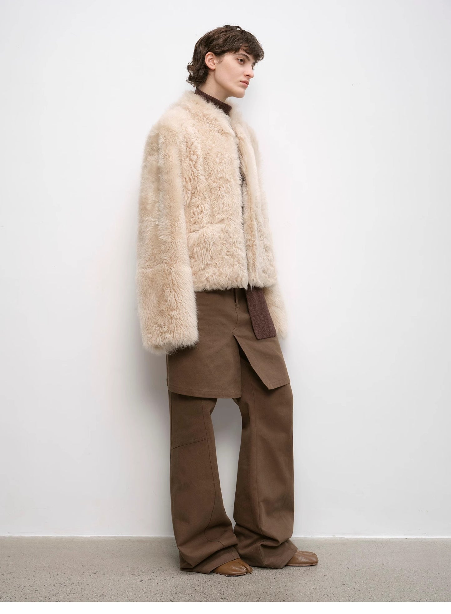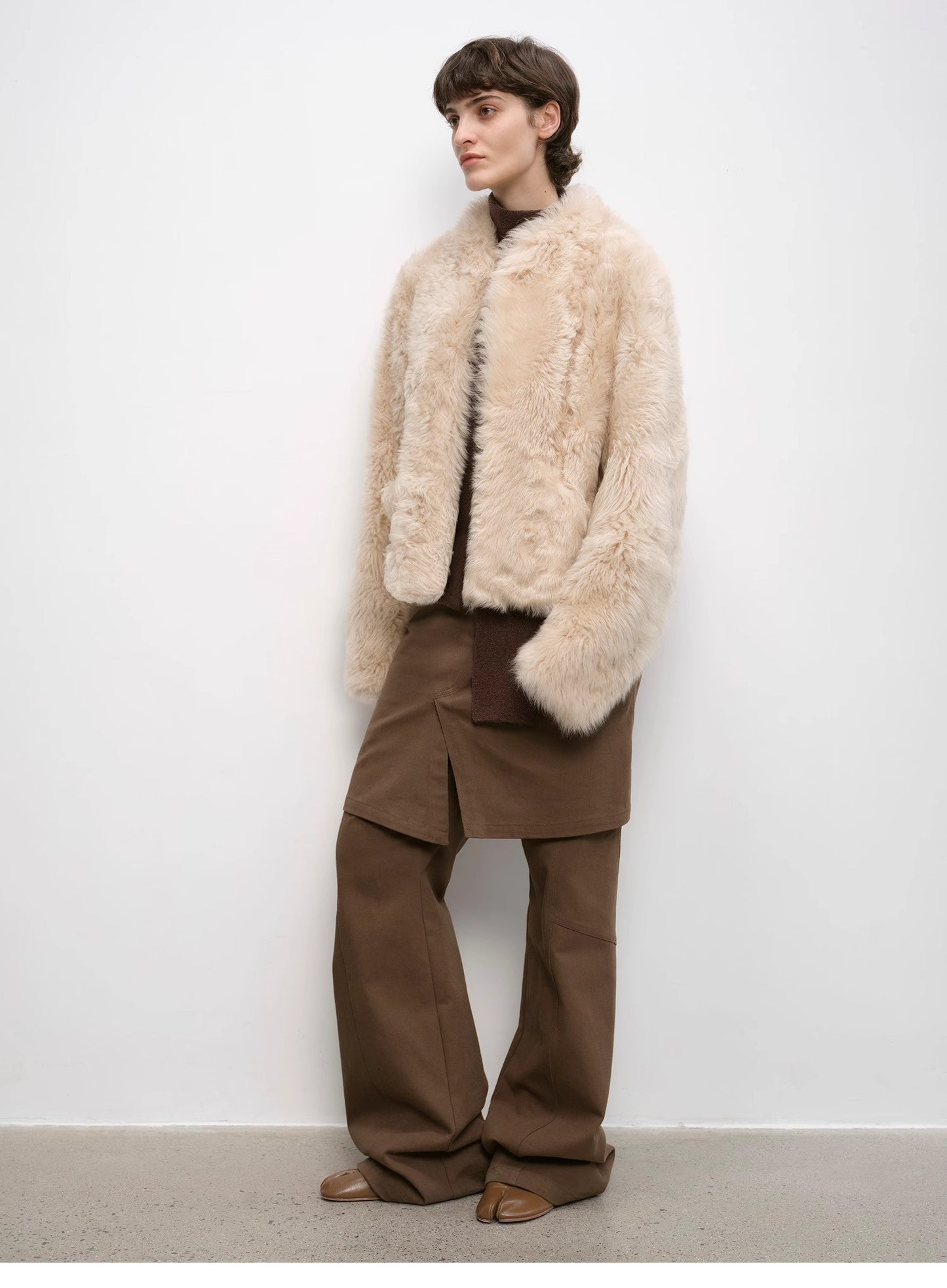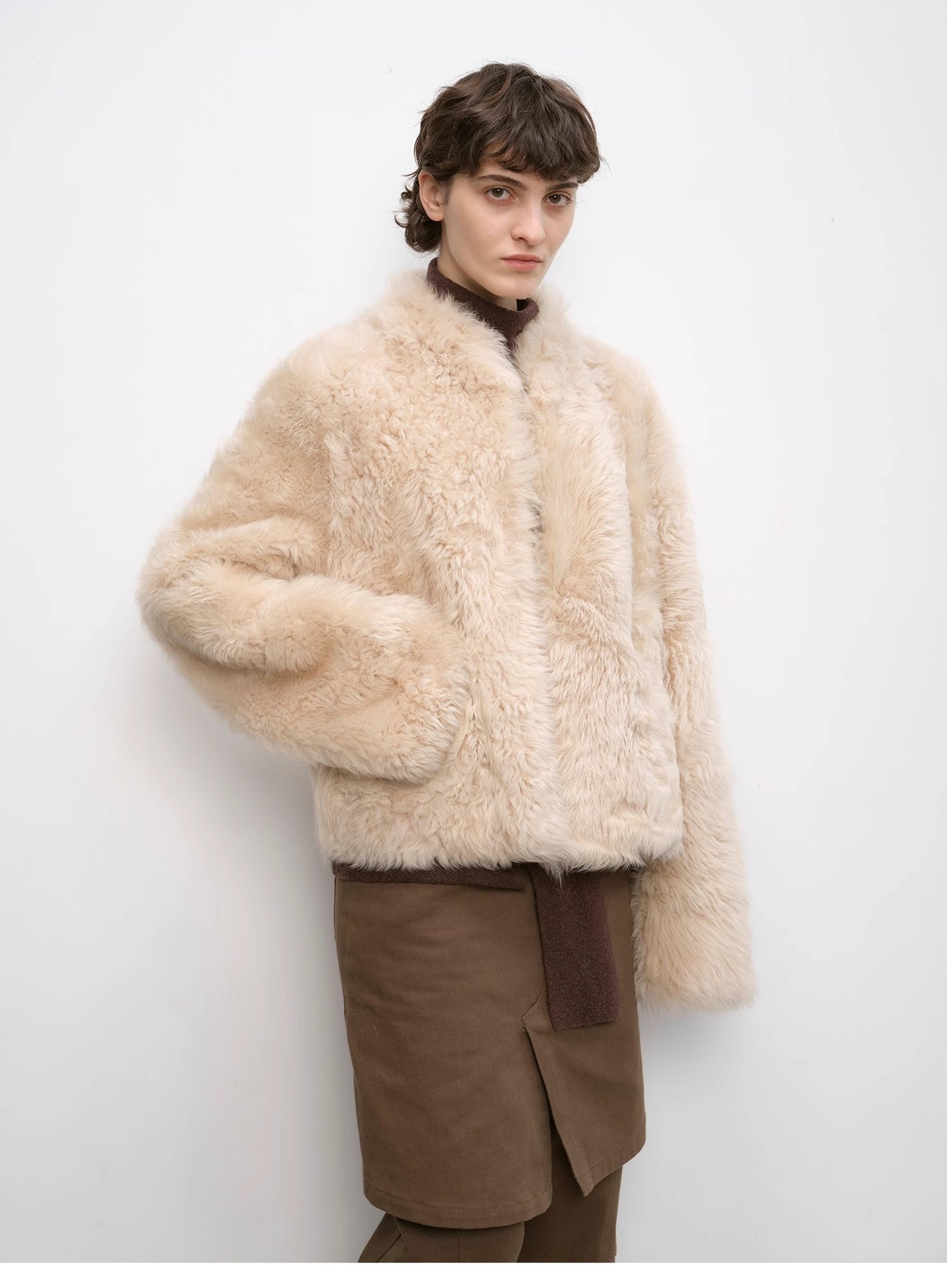 "Autumn Basel" imported Tuscan sheepskin half-roll short casual fur coat