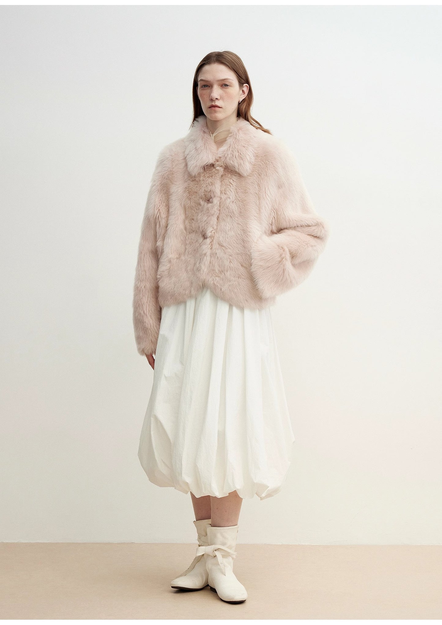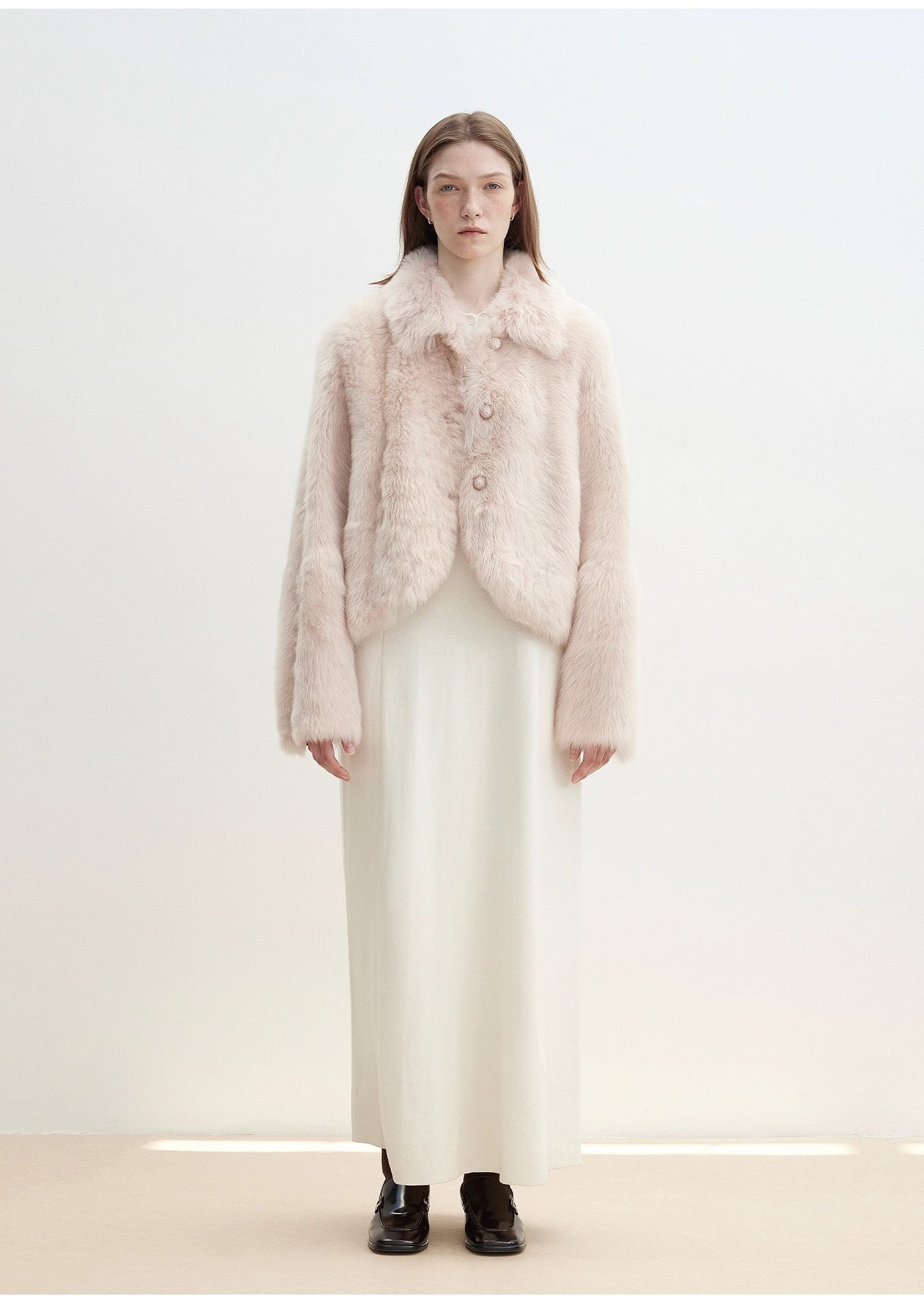 "Autumn Secret" Pink Lapel Tuscan Straight Fur Sheepskin Short Jacket