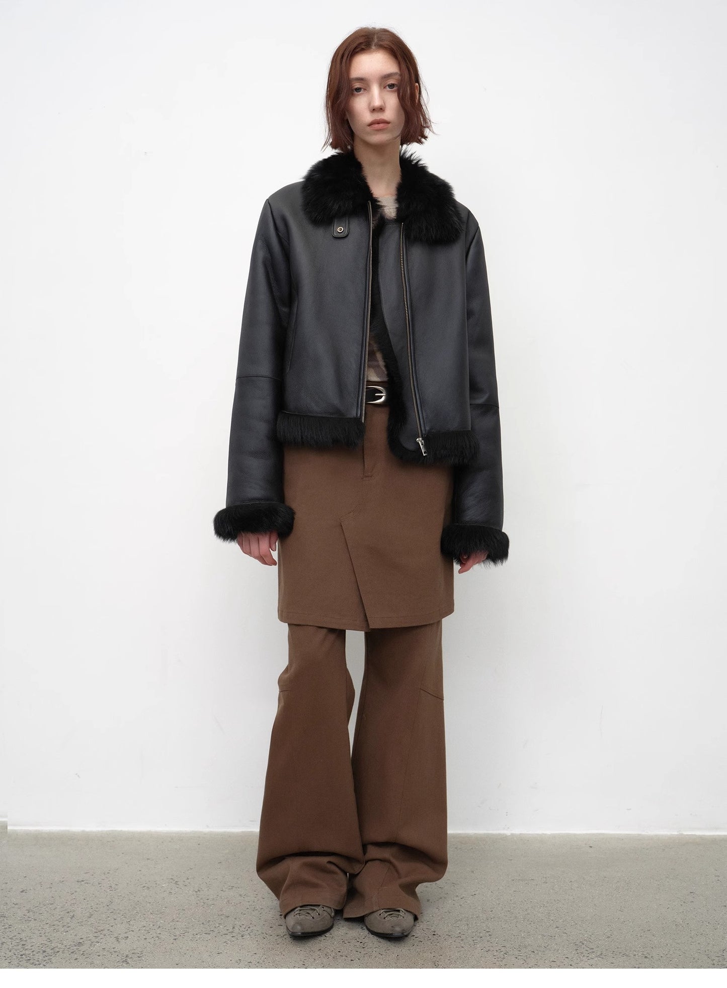 "Luxury and Elegance" motorcycle style Tuscan sheepskin short fur coat for women