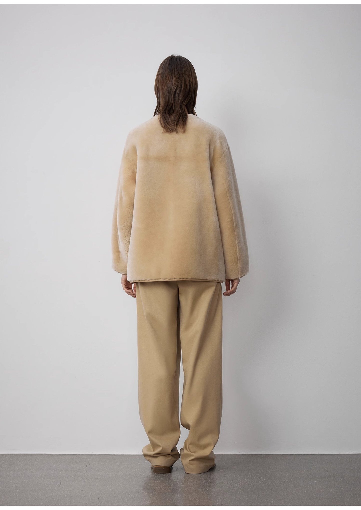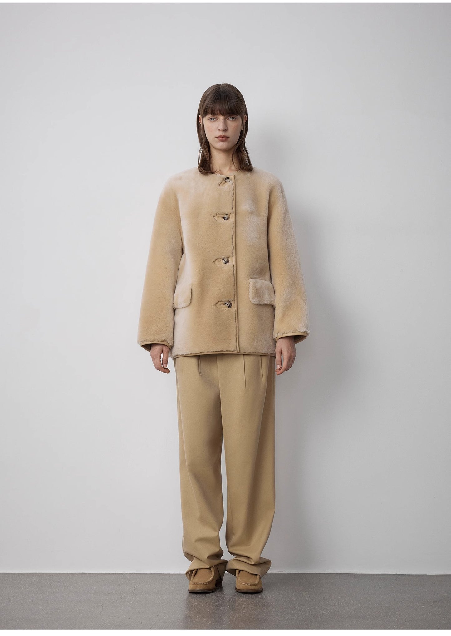 "Retro Time" Merino women's winter short round neck sheepskin jacket