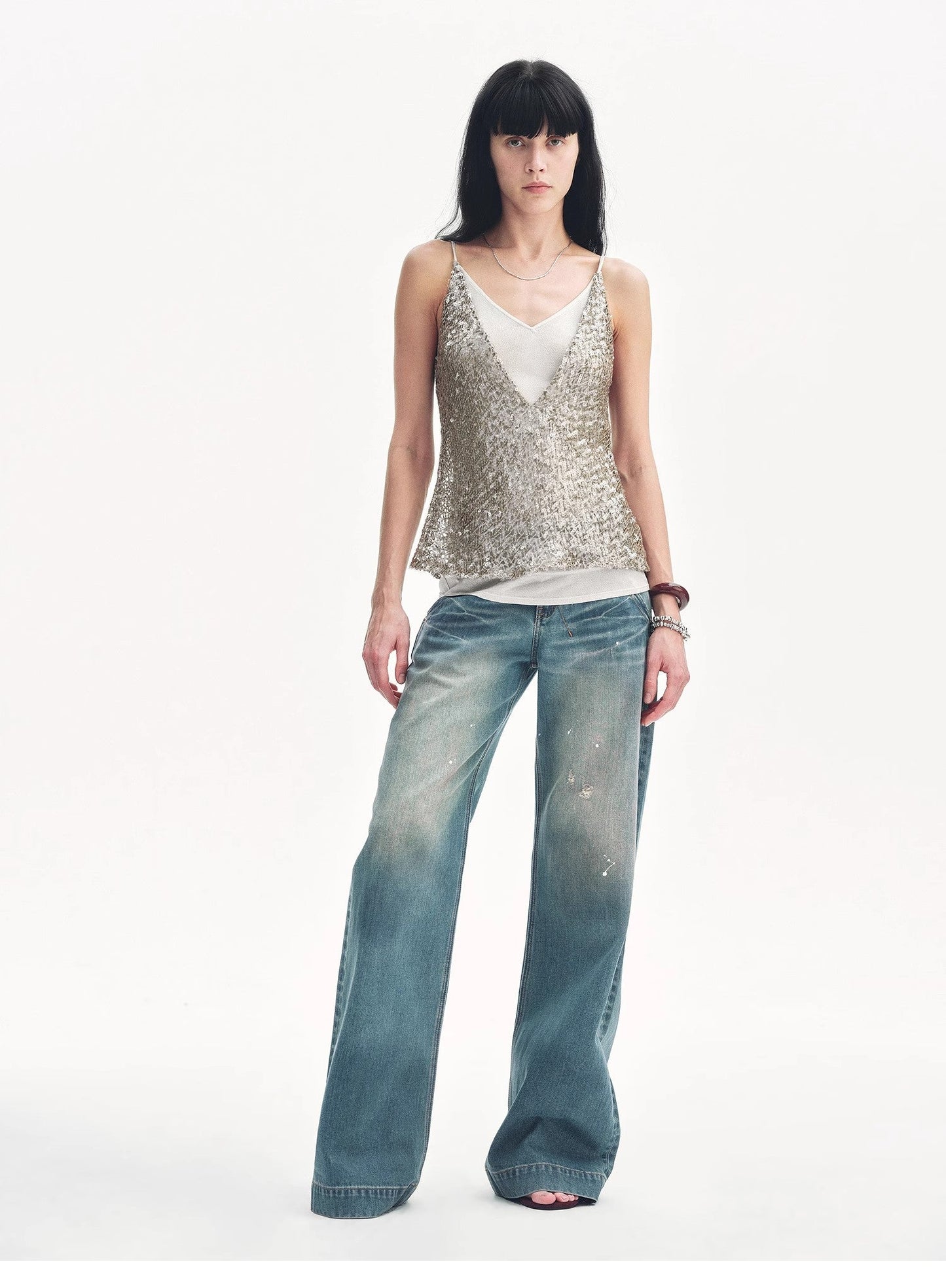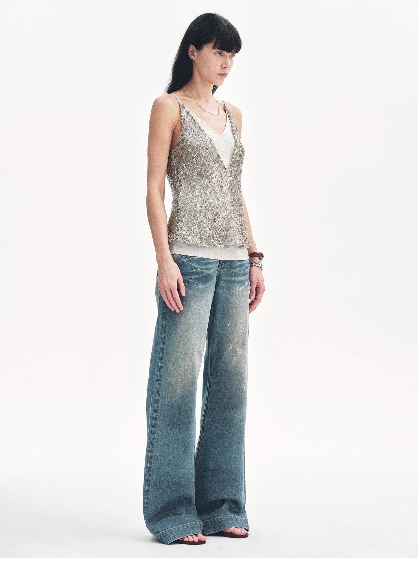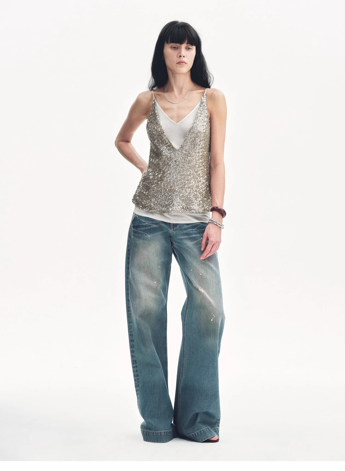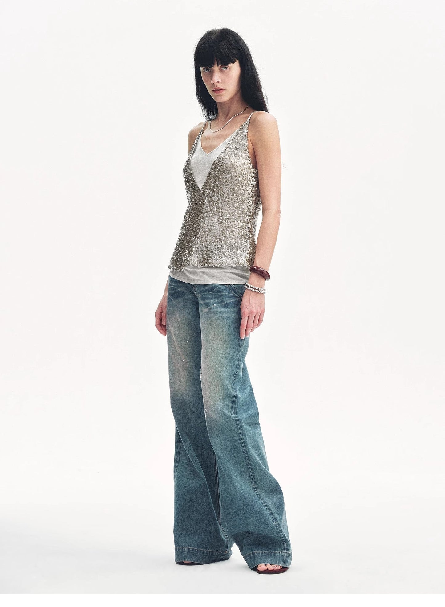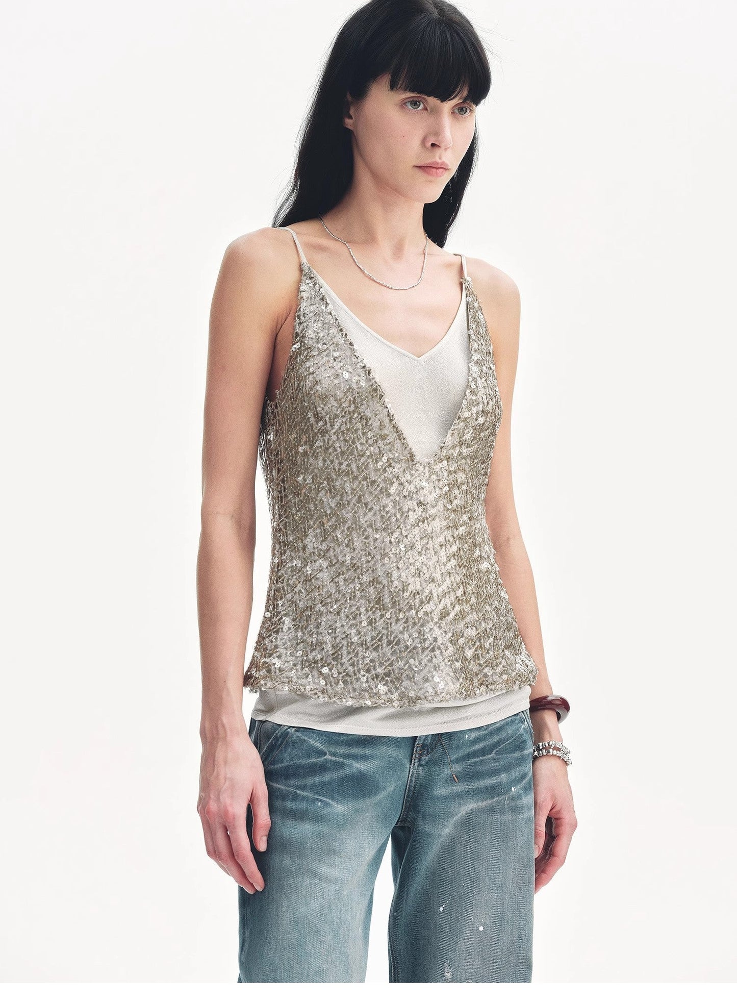"Dream Catcher" Sequined Net Pattern Fake Two-Piece Deep V Waist Suspender Summer