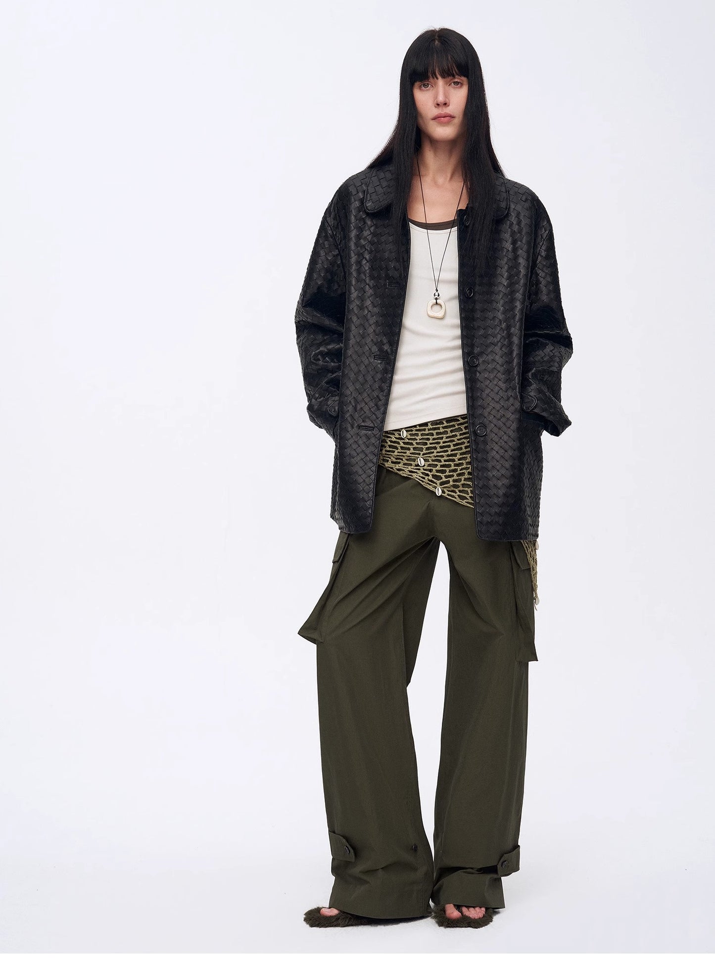 The sand-washing process gives the surface of the fabric a fine velvety texture, presenting a soft and hazy matte effect. The slightly faded and old texture adds a unique charm. It feels soft, smooth and skin-friendly, and the air layer structure is breathable and heat-insulating, making it suitable for cross-season wear.
